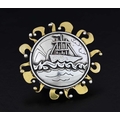 A Scandinavian silver and gilt metal target brooch, mid 20th Century, depicting a triple mast sailing ship on choppy seas, unmarked, 5cm diameter