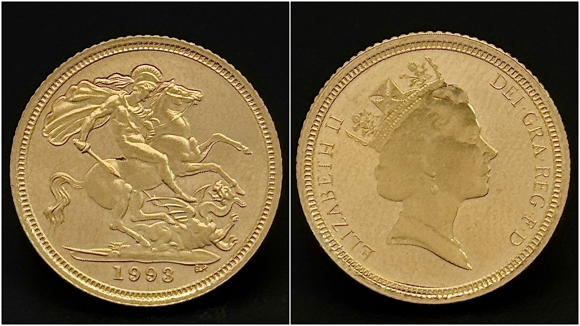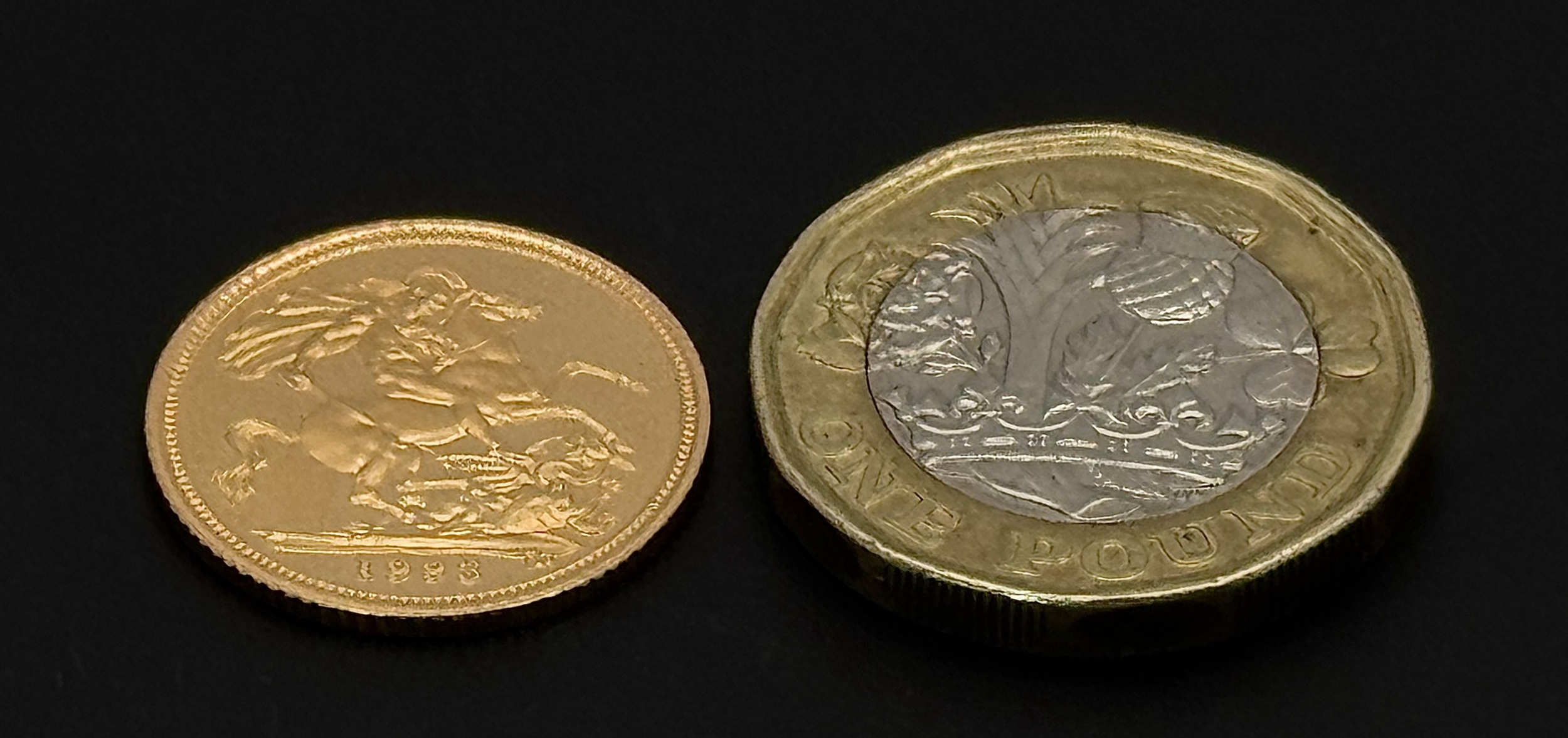 A 1993 QUEEN ELIZABETH II THIRD HEAD, PROOF CONDITION, HALF SOVEREIGN COIN. 22K GOLD. 9724-6.