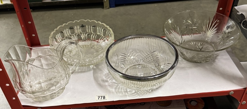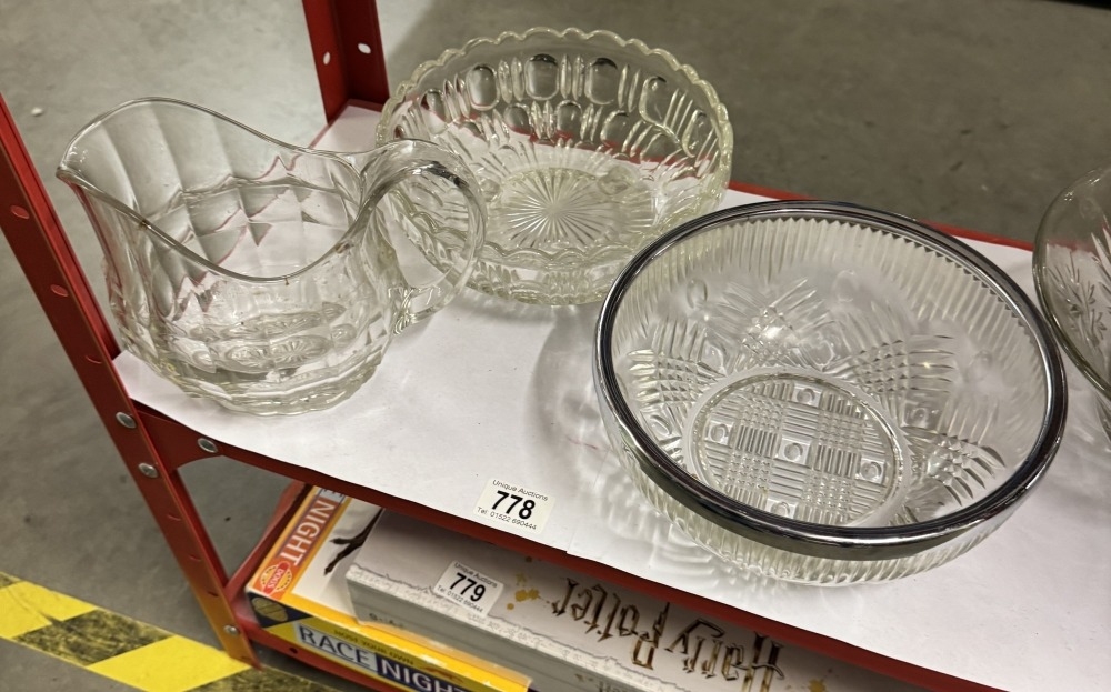 A quantity of glass bowls and jug