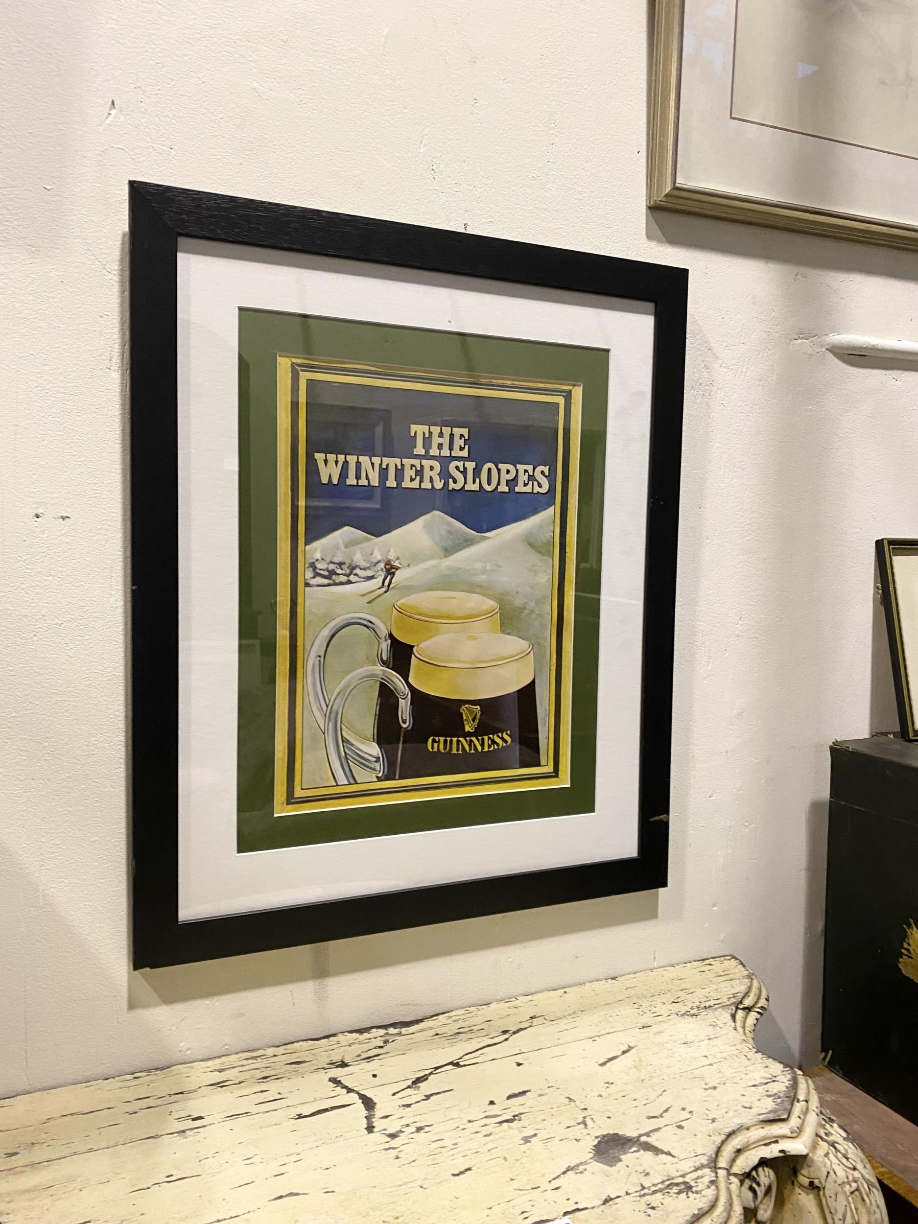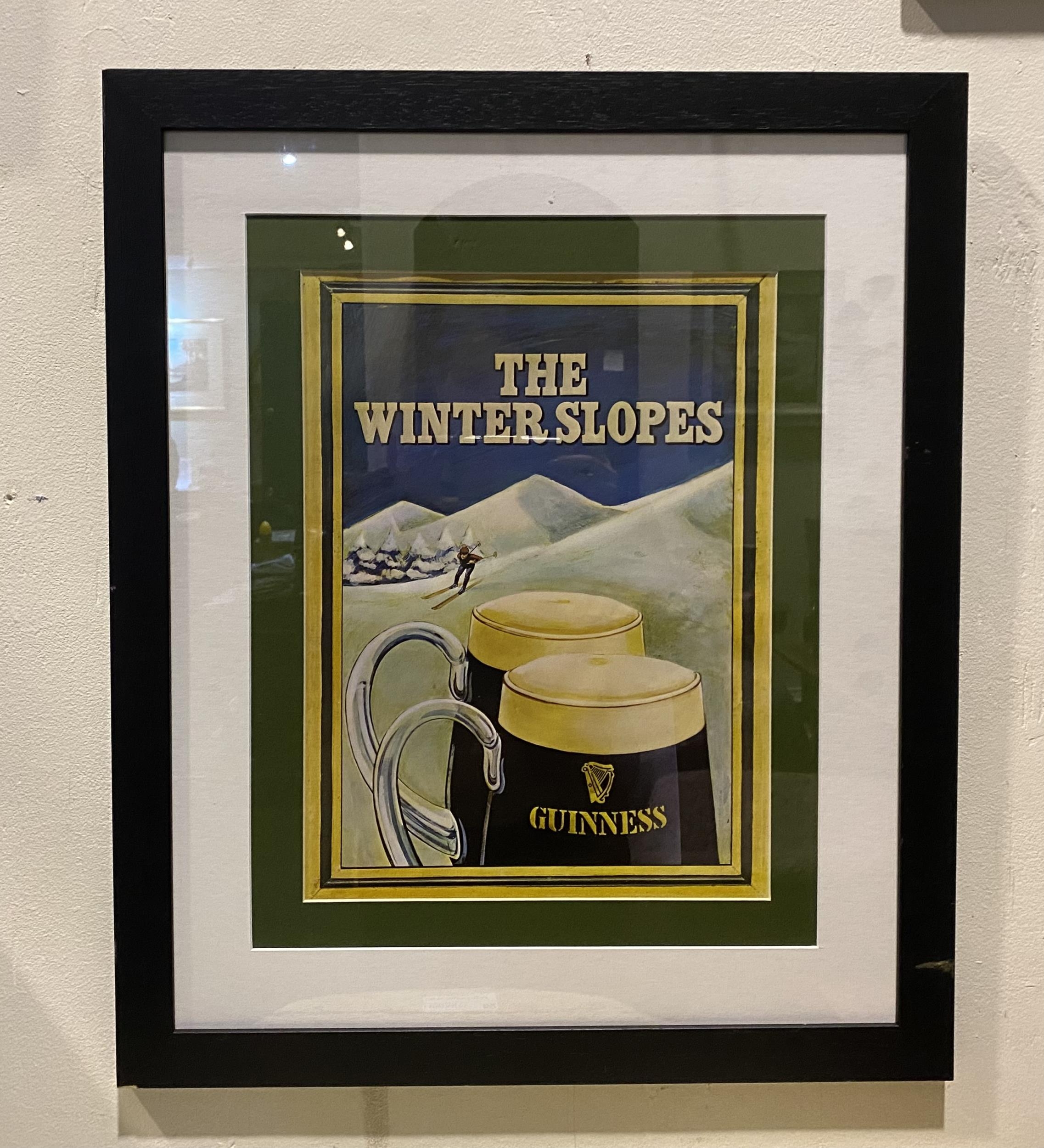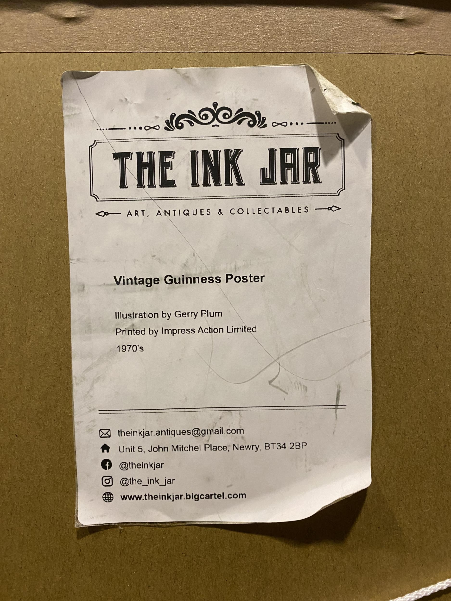 AN ORIGINAL 1970’S GUINNESS ADVERTISING PRINT, coloured print on paper from 1970 Guinness calendar printed by Impress Action Limited, illustration by Gerry Plum. Dimensions: 52cm x 62cm approx. frame