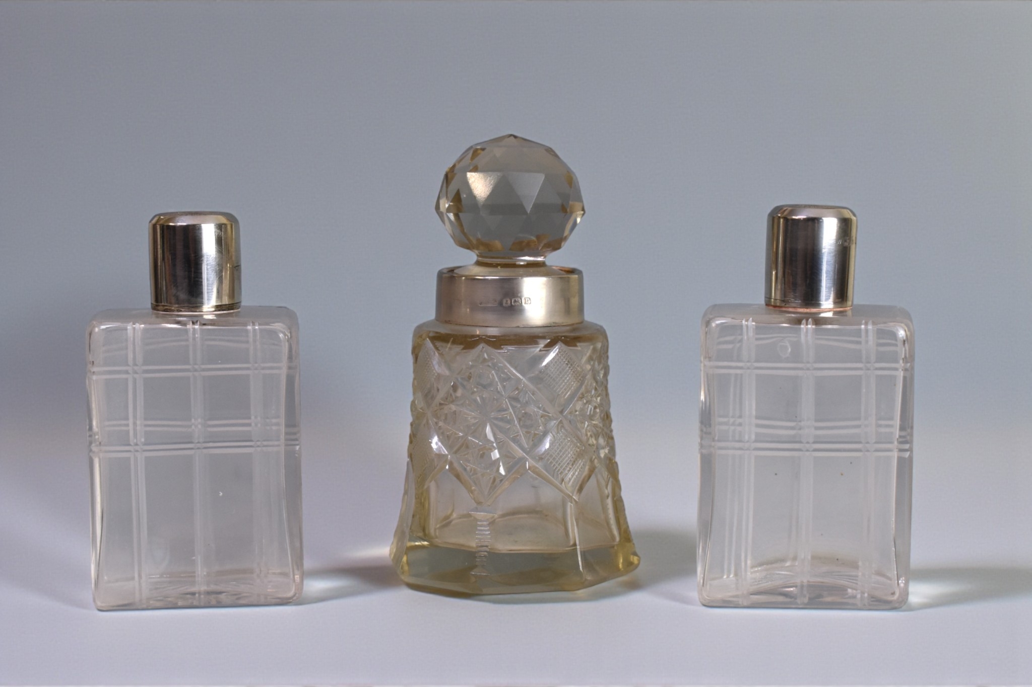 Together with a silver collared cut glass bottle.