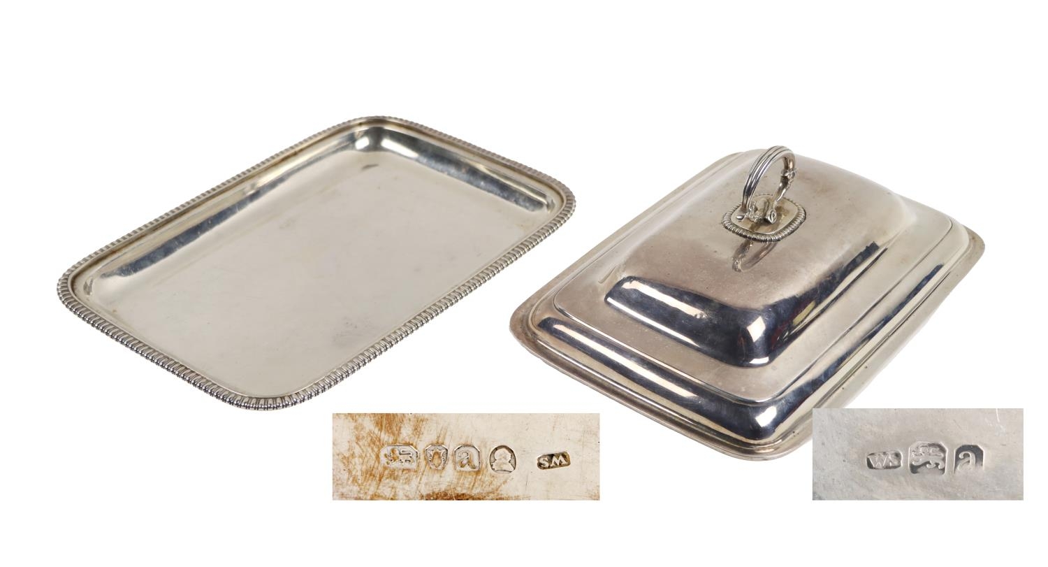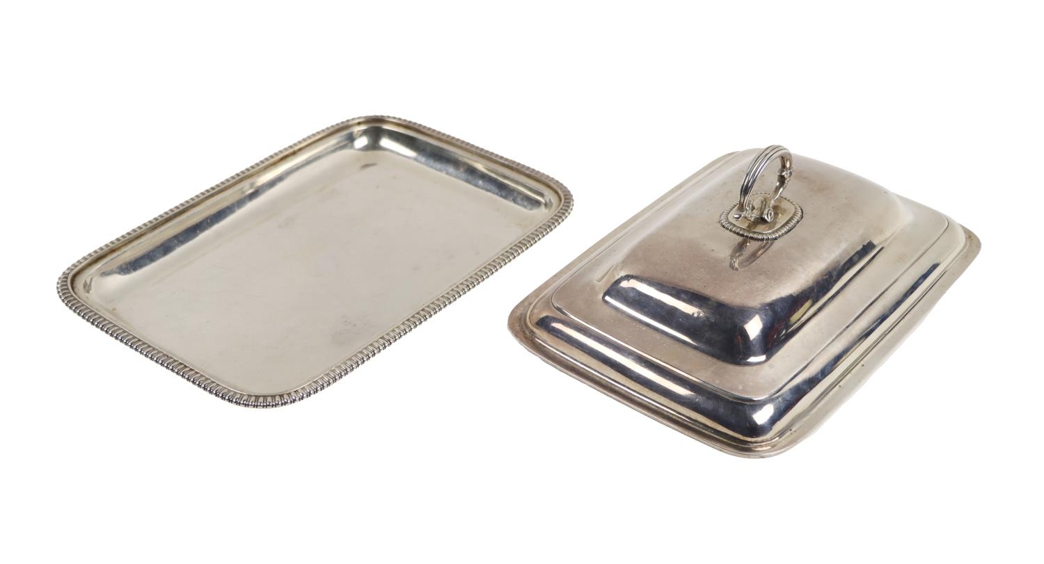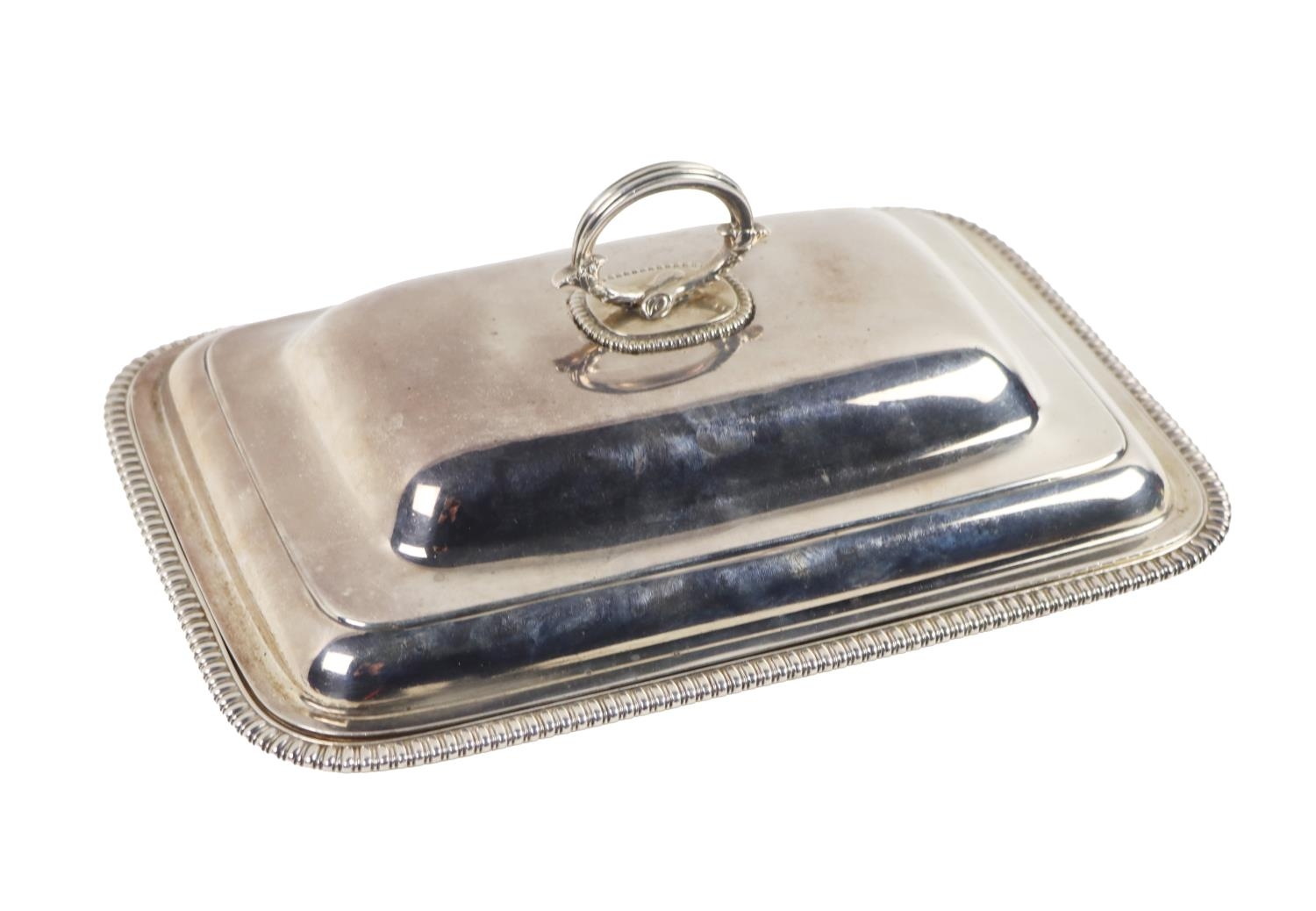 A fine quality Georgian period silver Entree Dish and Cover, with domed top and shaped ring handle, on a base with gadroon edge, approx. 28cms (11") long, hallmarked London, by William Skeen c. 1776, 48 ounces. (1)