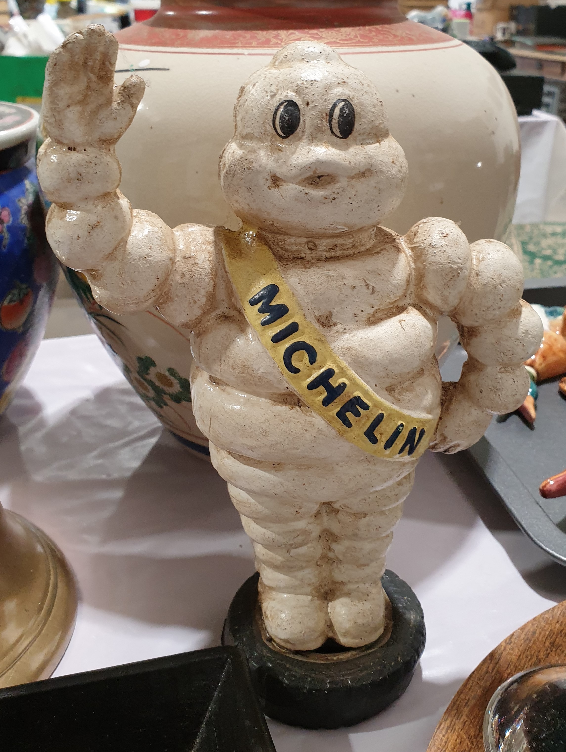 A cast iron Michelin Man money box, height 8.5"UK shipping only, £14.