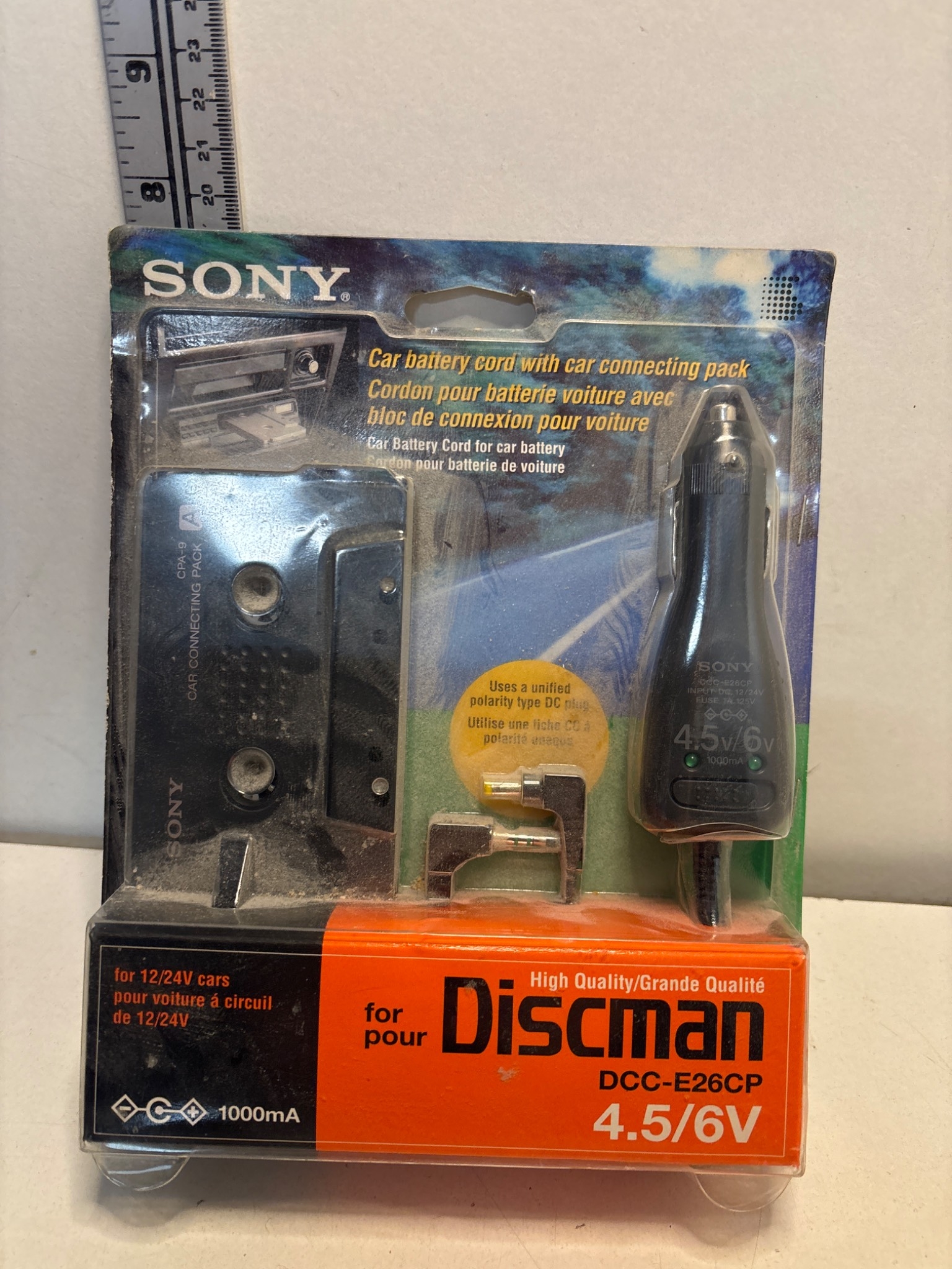 Sony DCC-E26CP car battery cord for Discman, 4.5/6V.