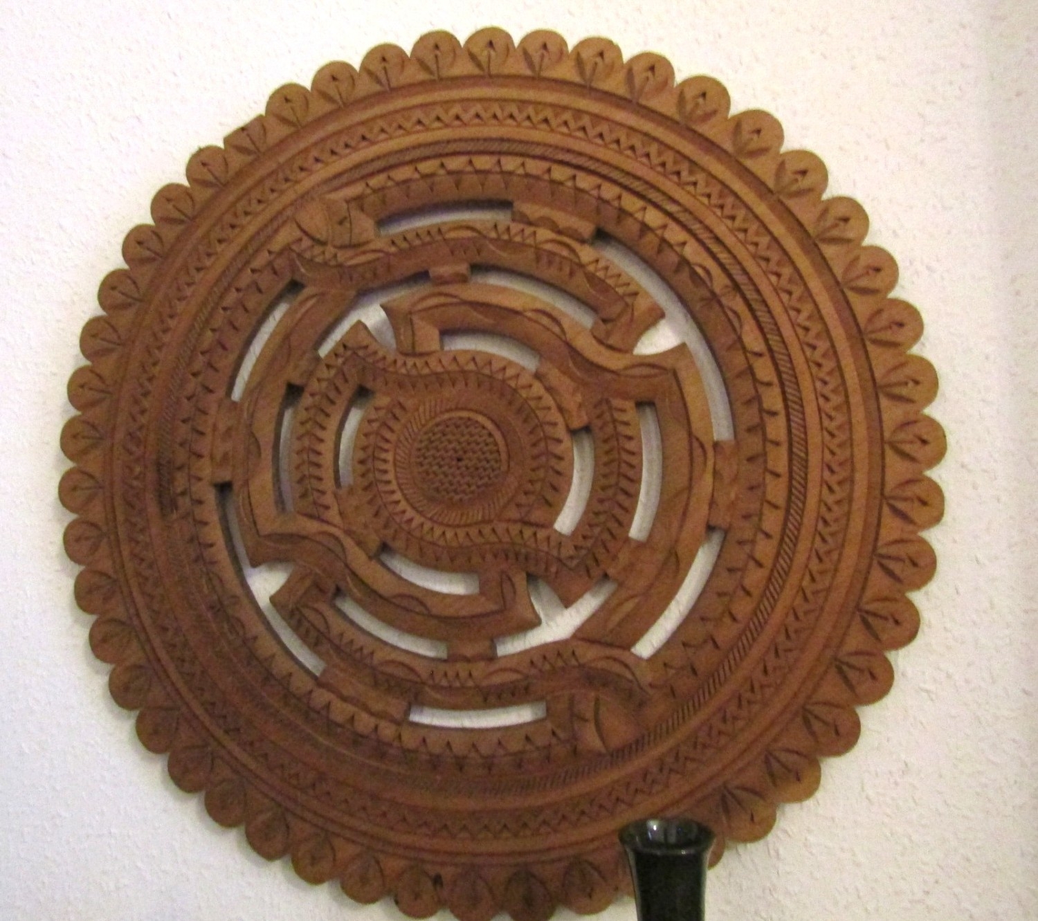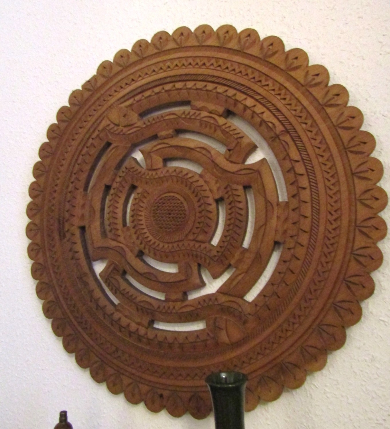 Eastern Carved Hardwood Wall Piece Circular Form Approximately 26 Inches Diameter