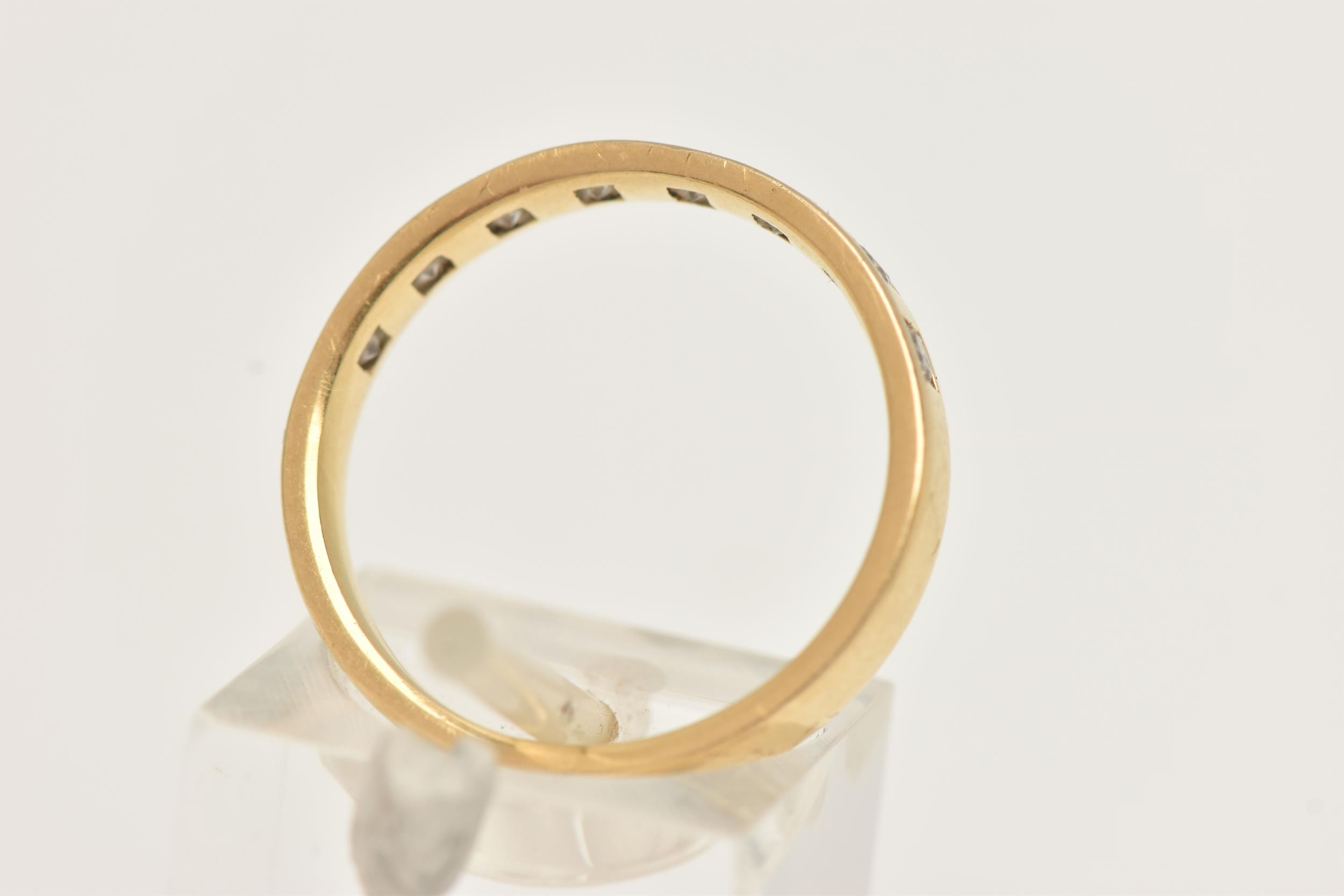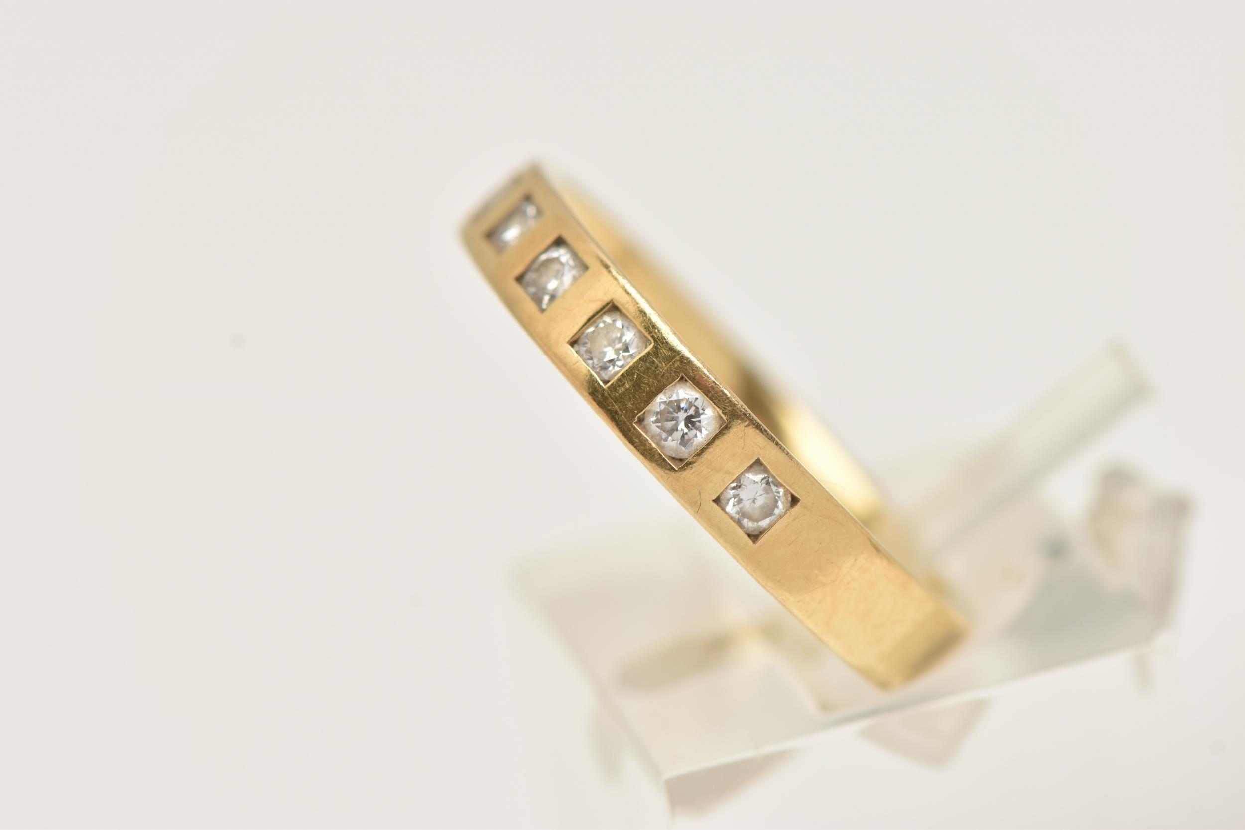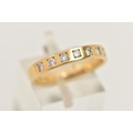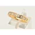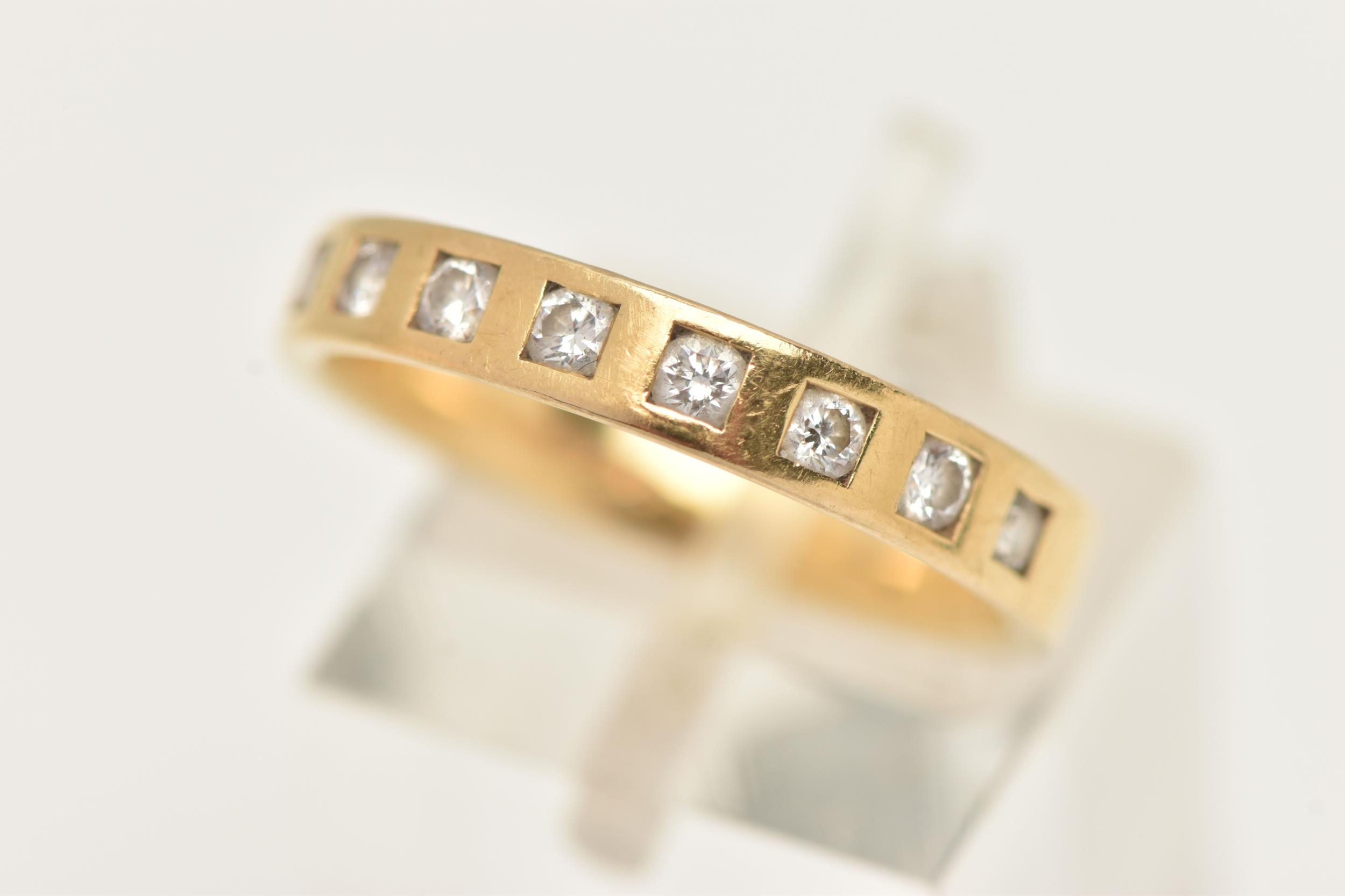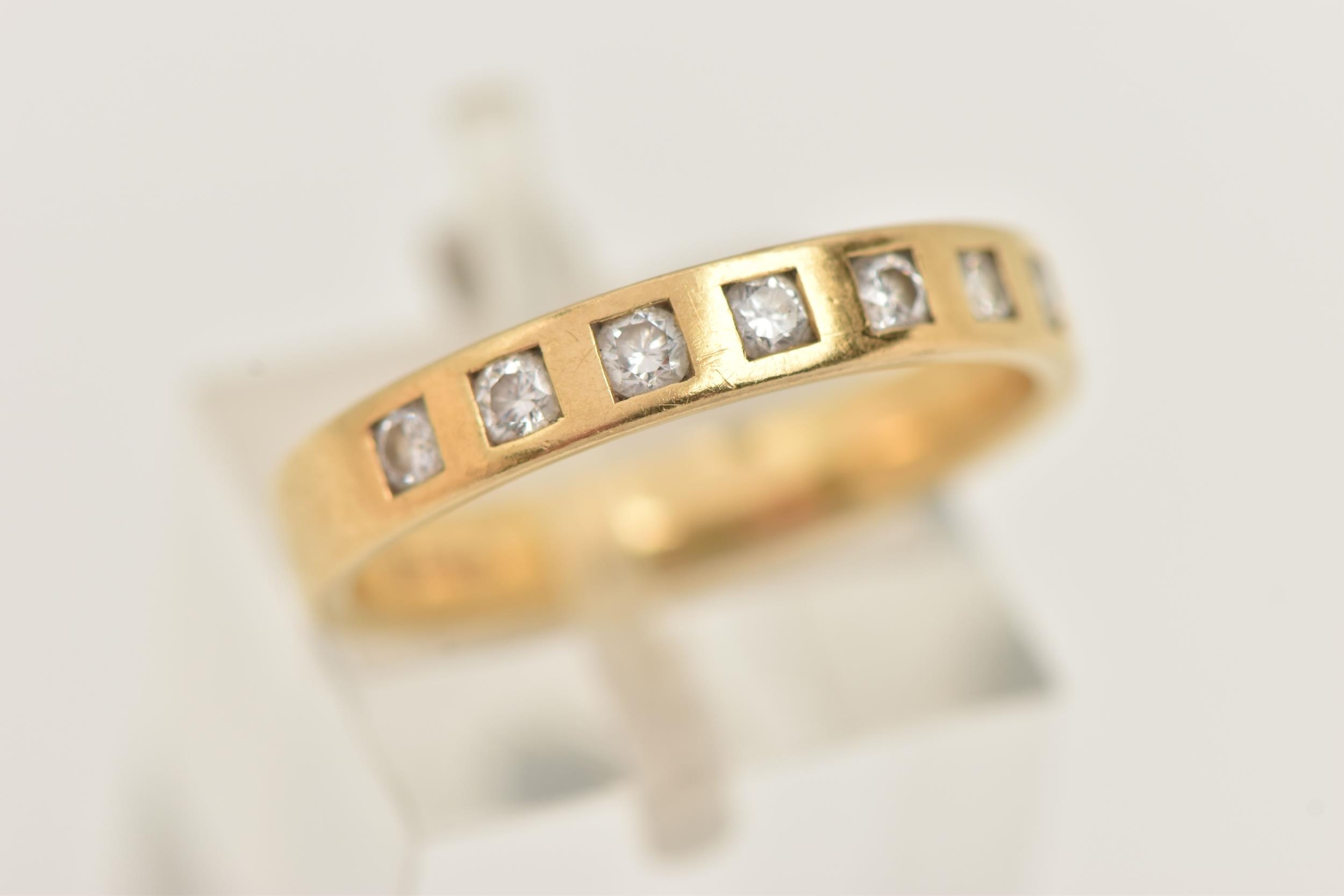 AN 18CT YELLOW GOLD DIAMOND BAND RING BY BROWN AND NEWIRTH, set with eight round brilliant cut diamonds, each inset within a square shape setting, to the plain polished band, estimated total diamond weight 0.40ct, assessed colour G-H, assessed clarity VS, hallmarked 18ct gold Birmingham, sponsor's mark B&N (Brown and Newirth), approximate ring size O (leading edge), approximate gross weight 3.78 grams (condition report: overall condition very good, diamond bright, lively and well matched)