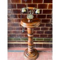 Vintage Steeplestone pedestal telephone. Rotary phone on solid wood base. 35" tall.