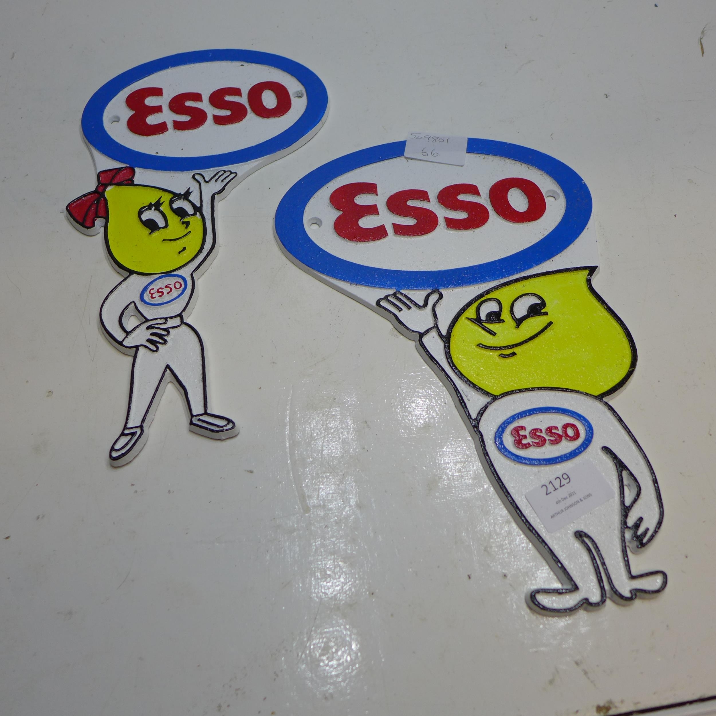 Pair of 9" cast metal Esso Boy and Girl plaques * This lot i...