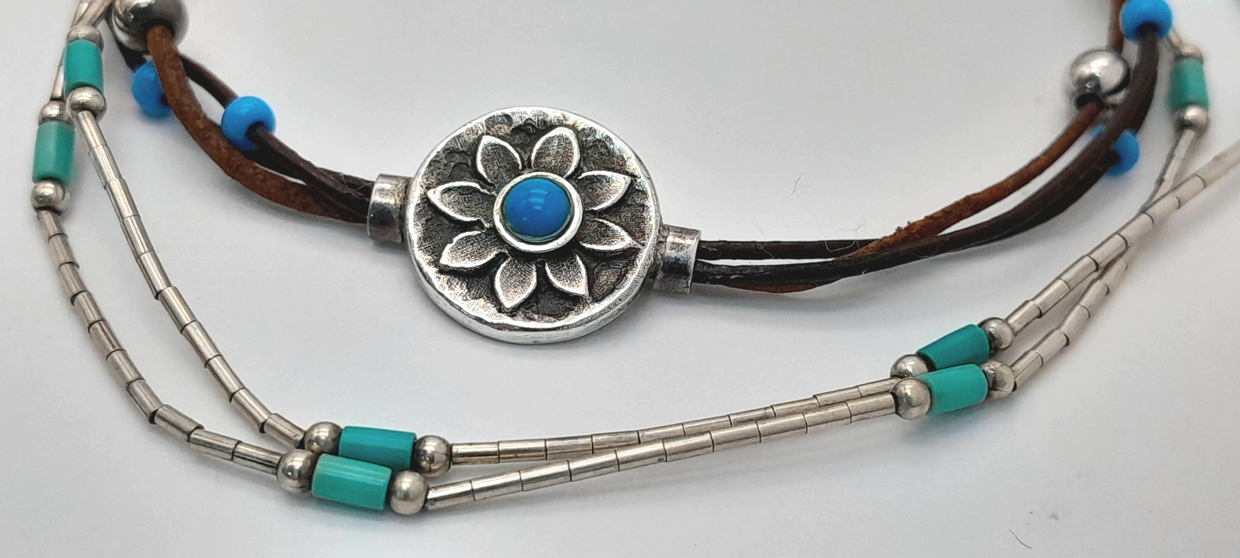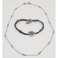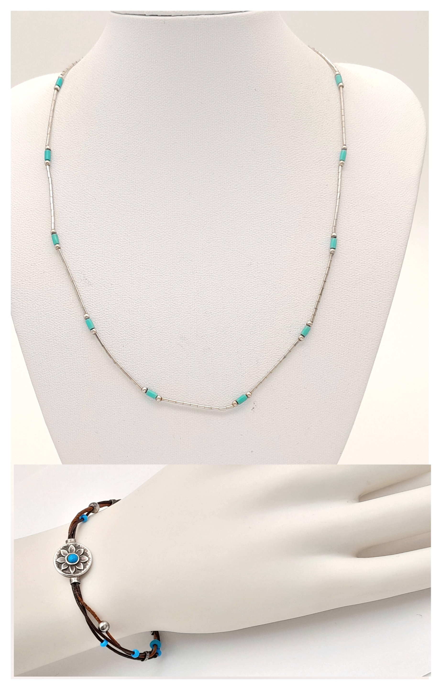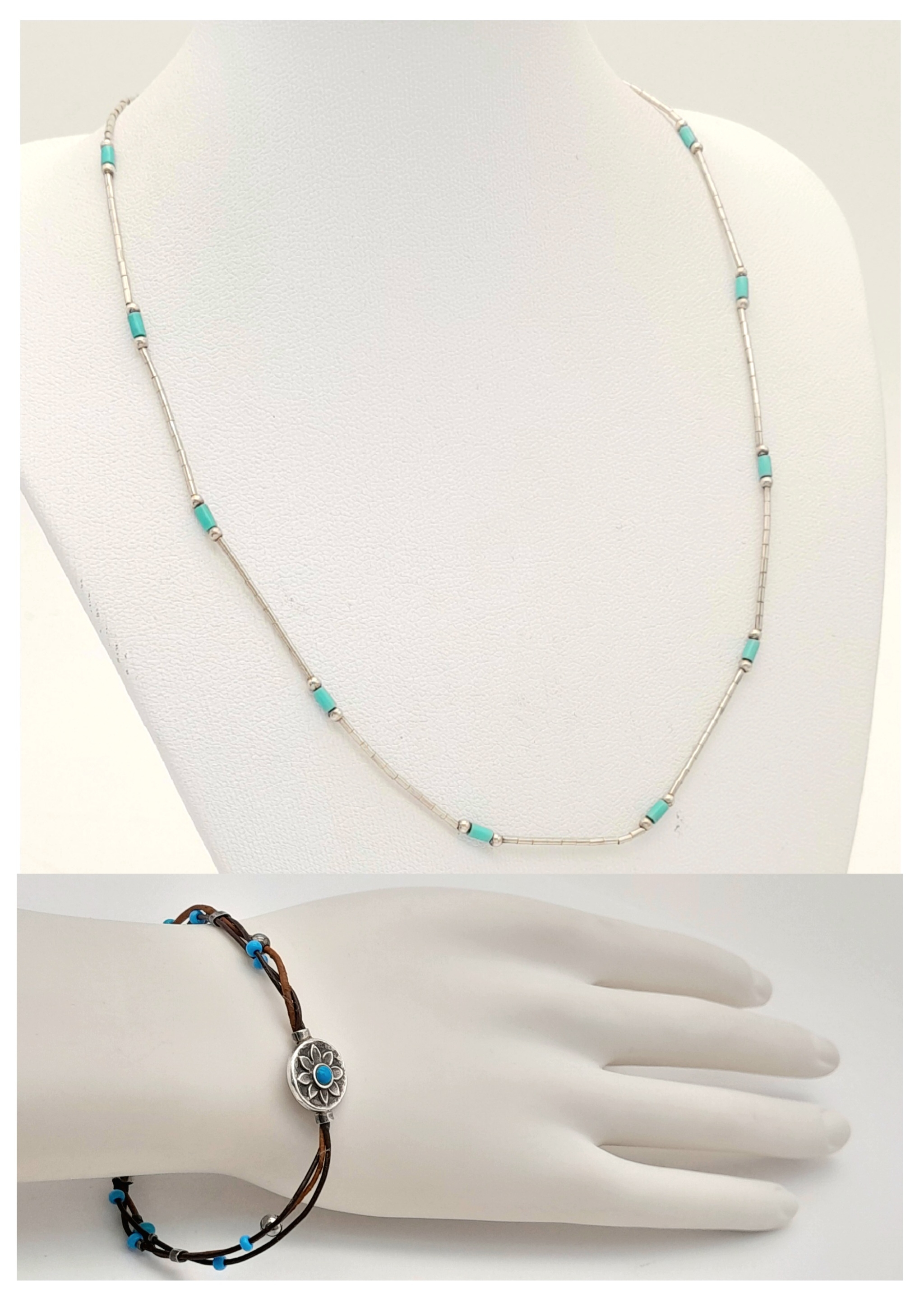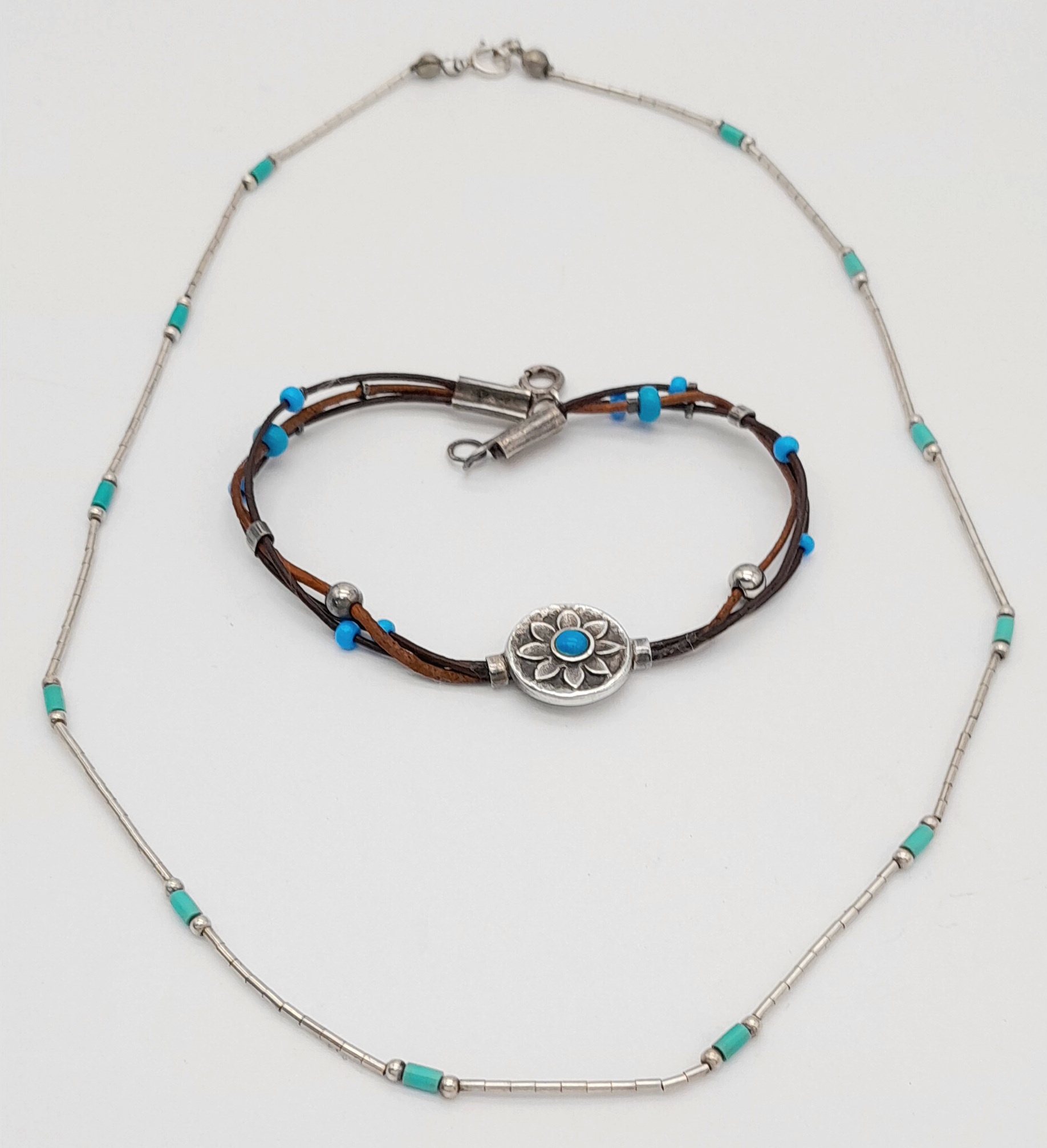 2X silver Turquoise bracelet and necklace. Total length 20 and 42 cm. Total weight 6.8G.