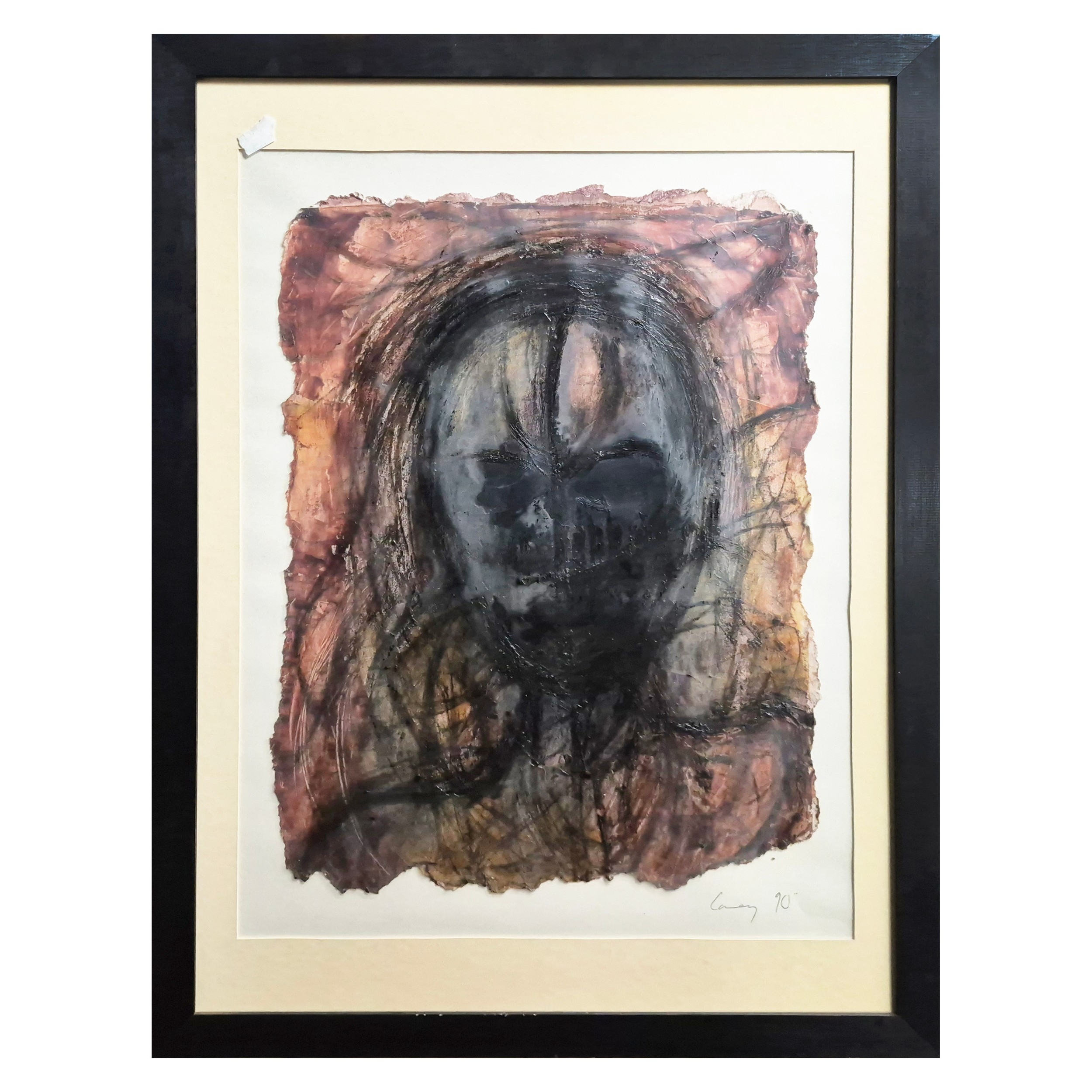 20TH CENTURY SCHOOL. HEAD STUDY. mixed media, indistinctly signed and dated 90, 83cm x 59cm, framed.