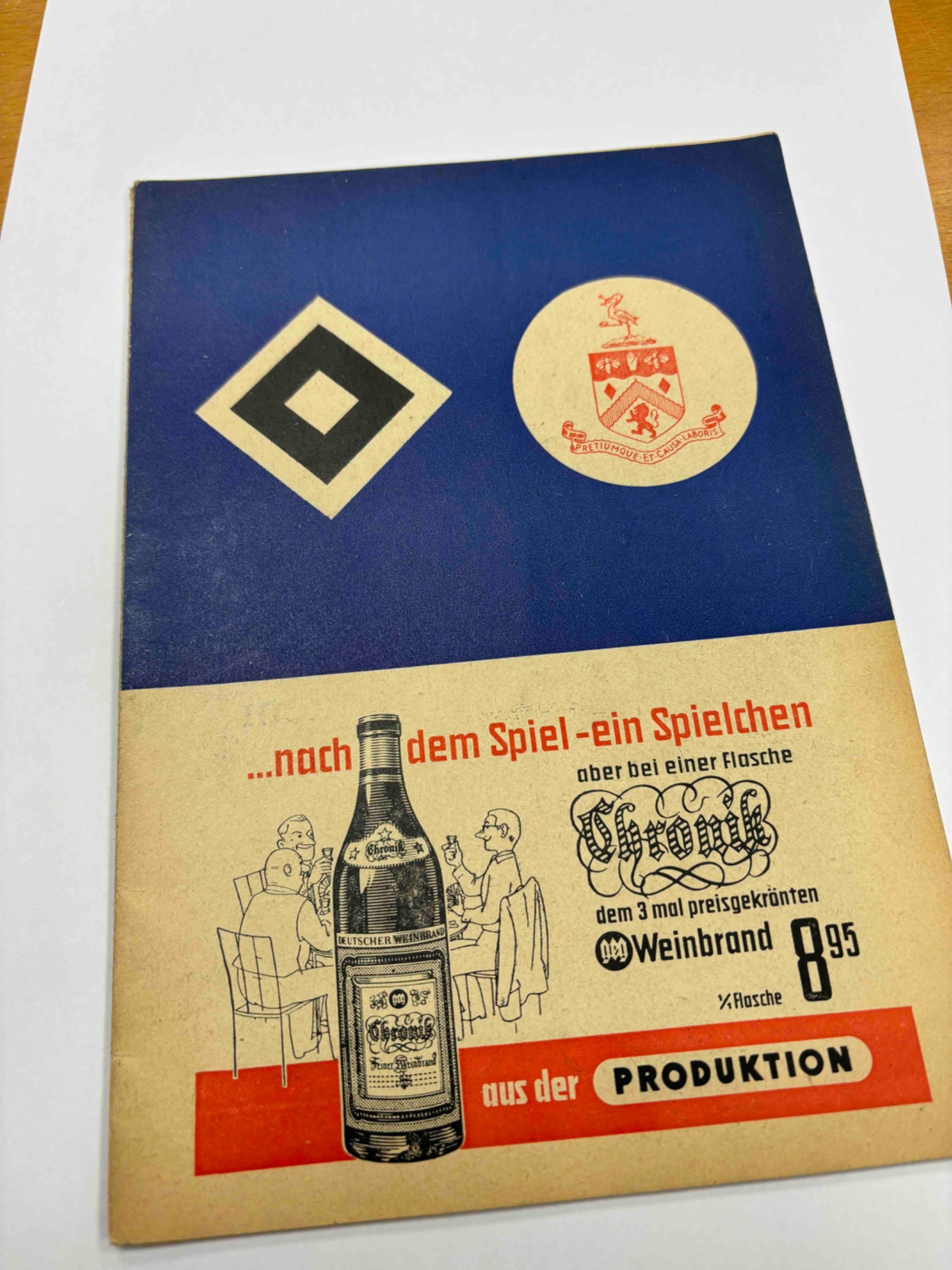 1960/61 Hamburger SV v Burnley, European Cup, no staples but no writing.