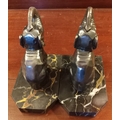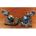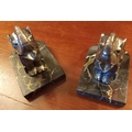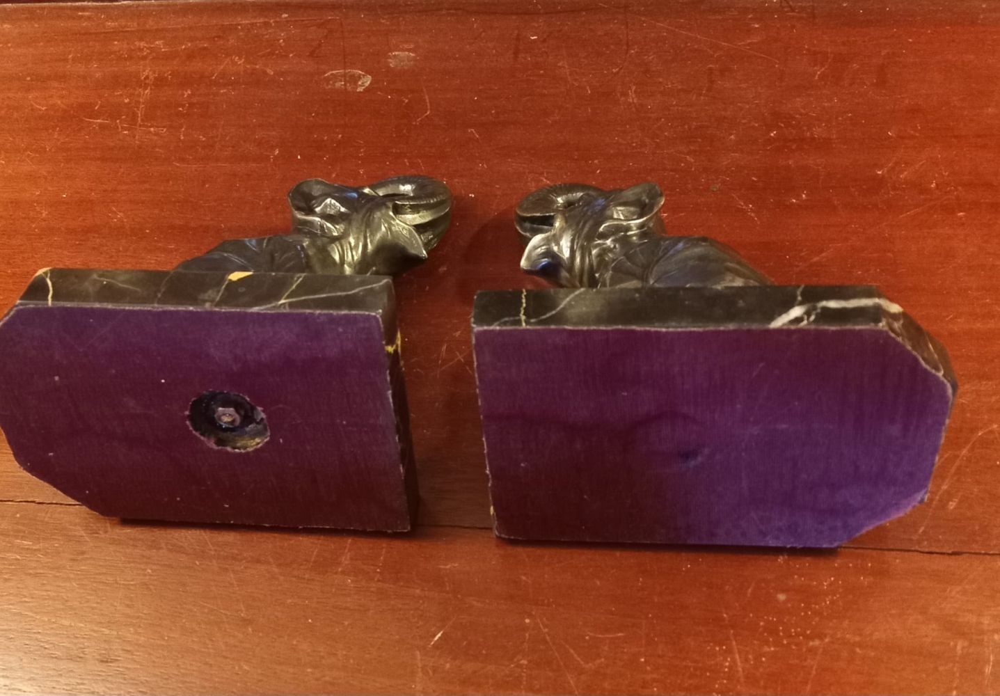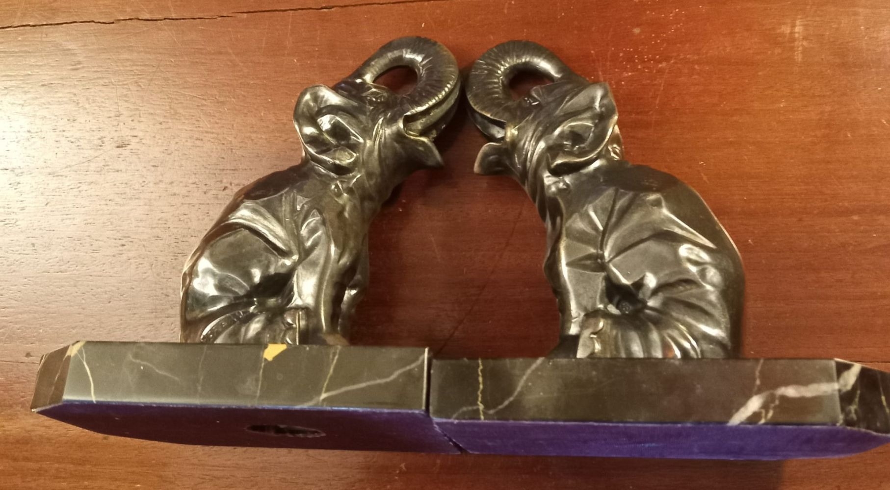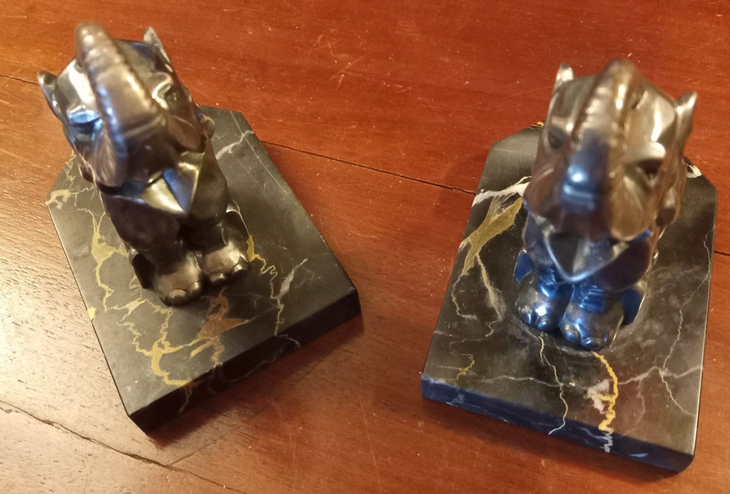 A PAIR OF ELEPHANT BOOKENDS, signed H. Moreau, on shaped marble bases. Dimensions: 14cm high x 12cm long x 8cm deep approx.