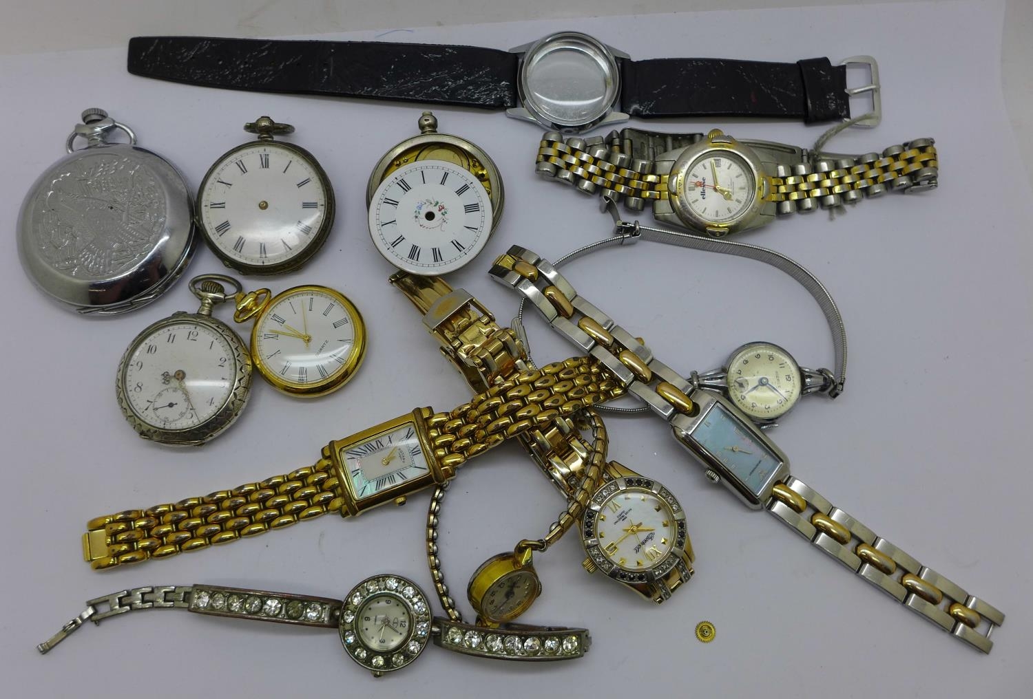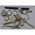 Three silver cased fob watches, a/f, a lady's Ingersoll wristwatch, other wristwatches and a wristwatch case