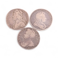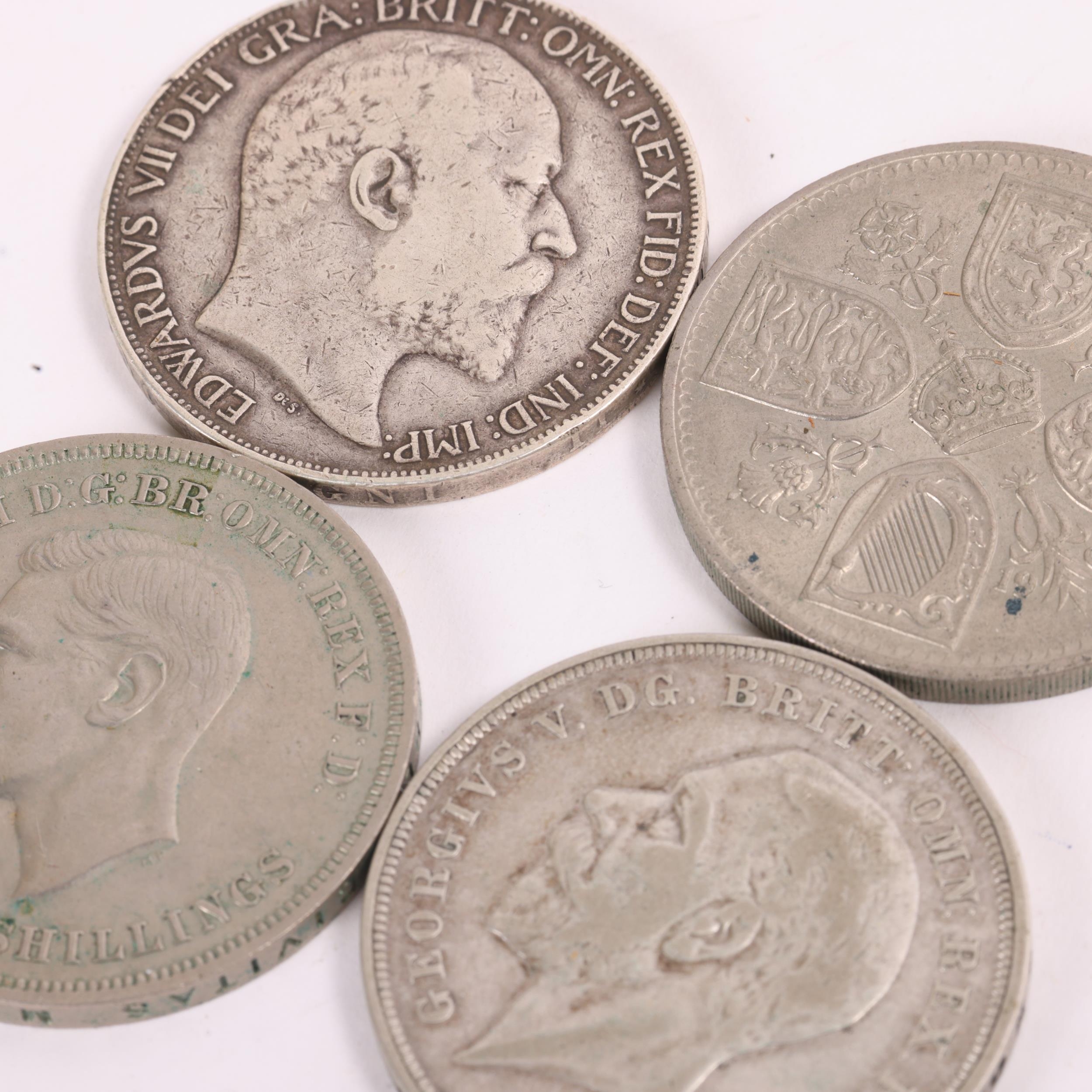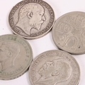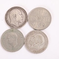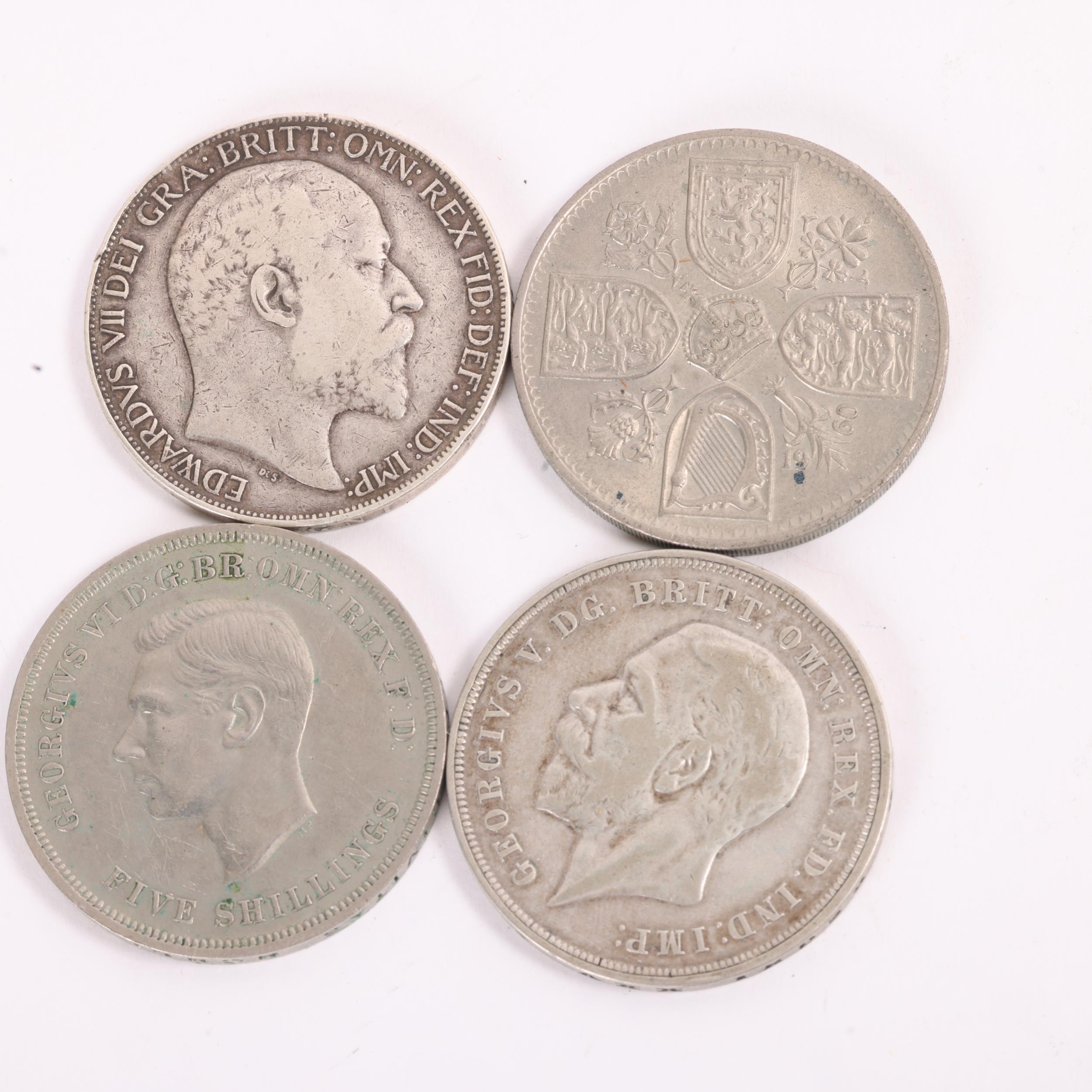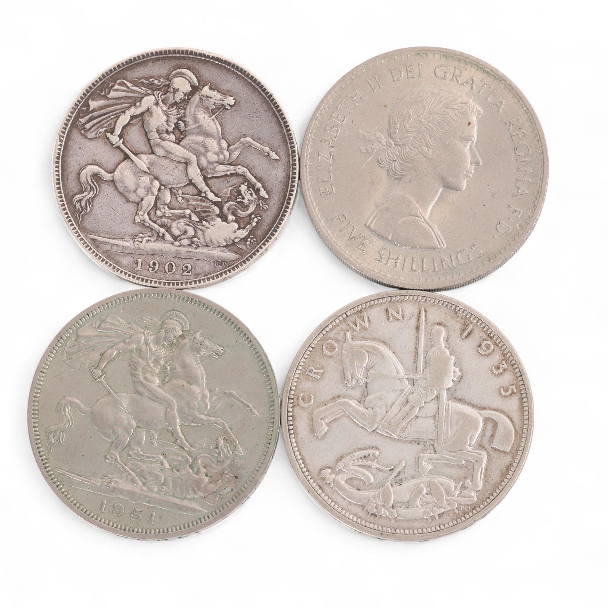 Four British Crown coins, Edward VII 1902, George V 1933, George VI 1951 and Elizabeth II 1960