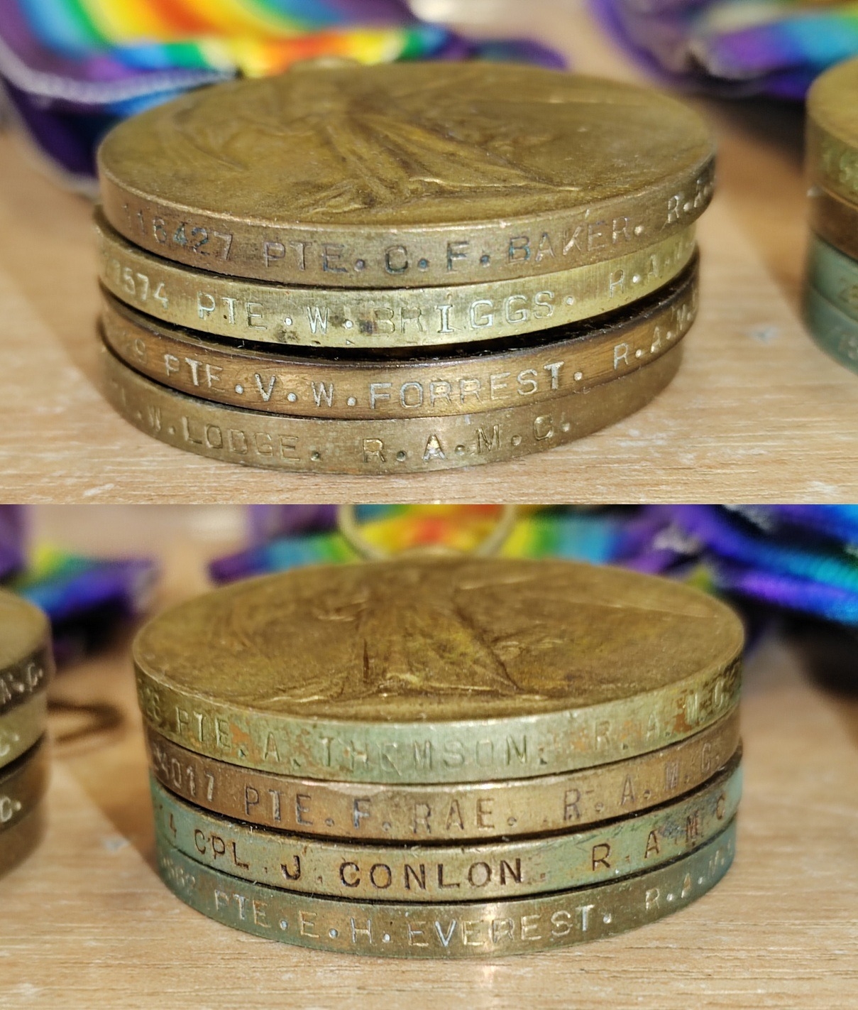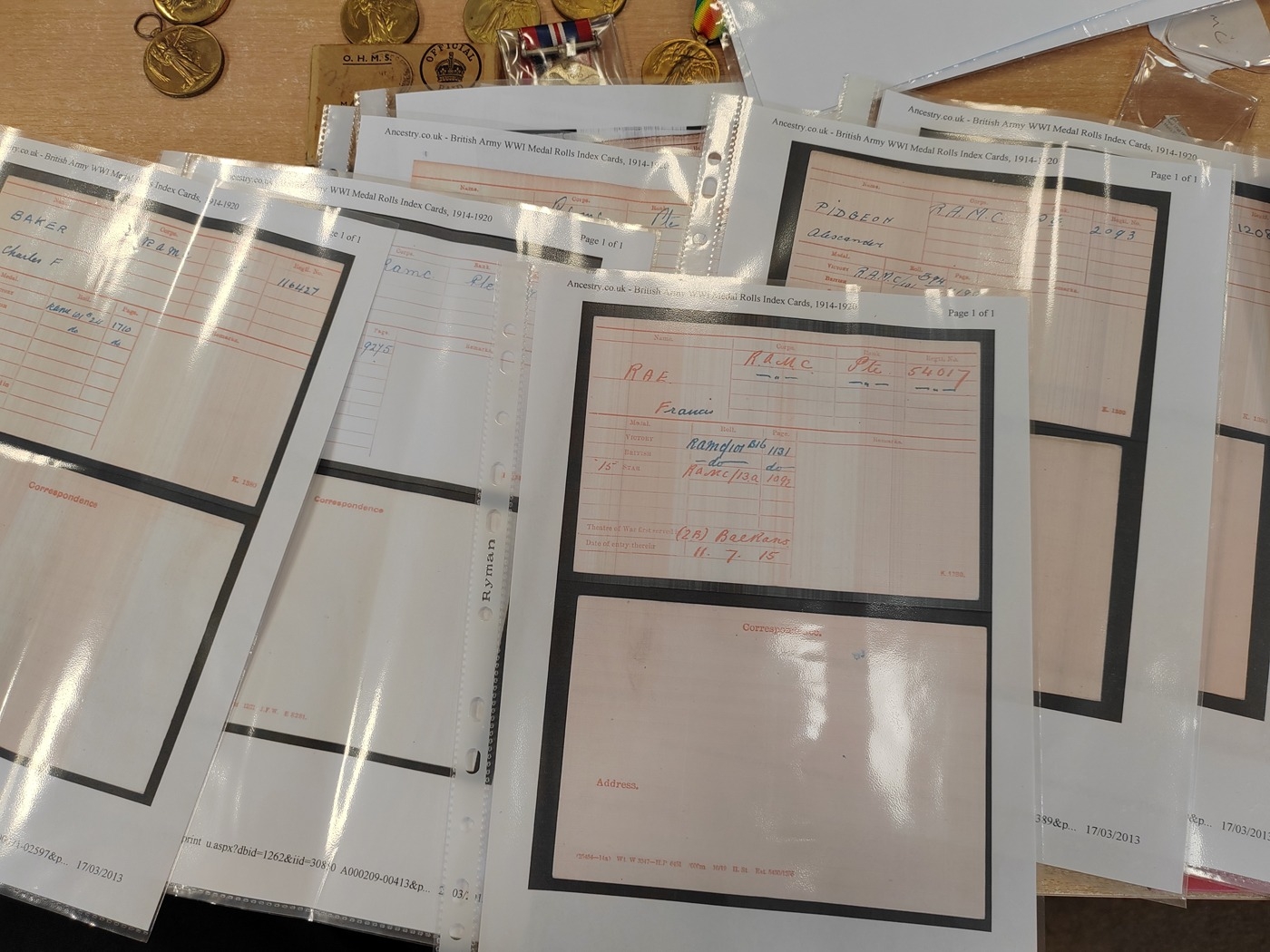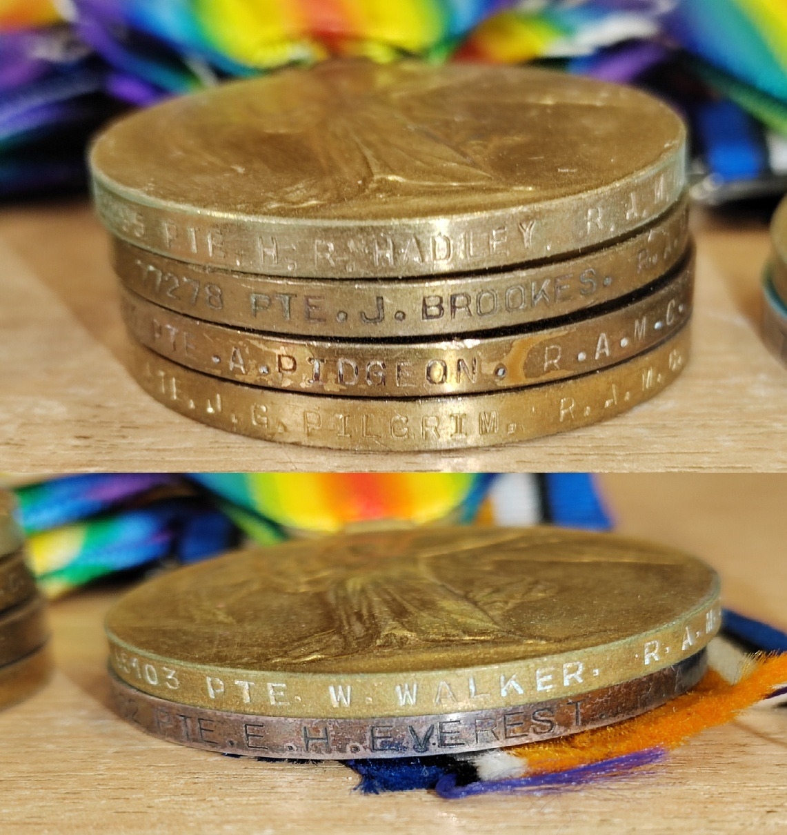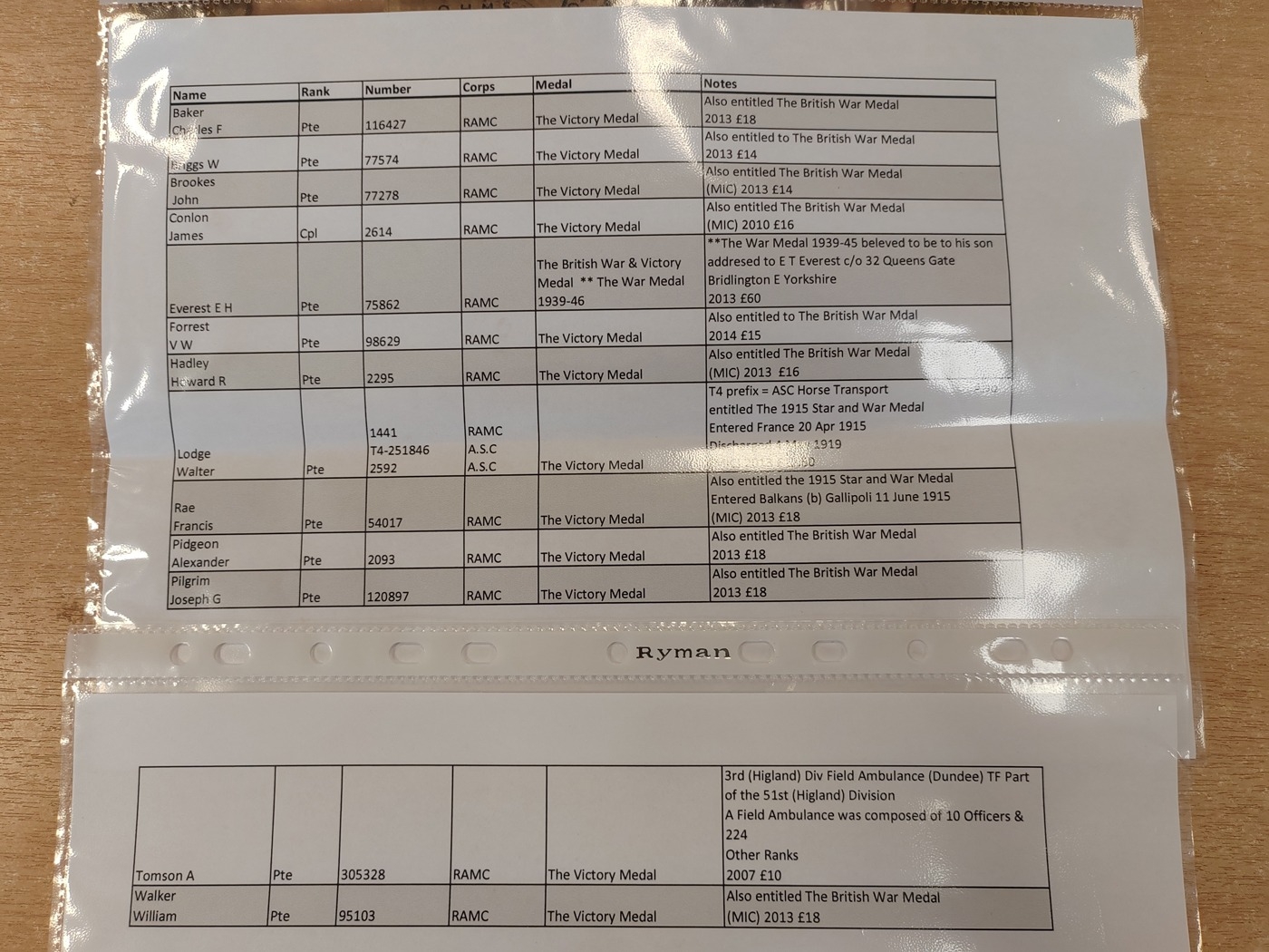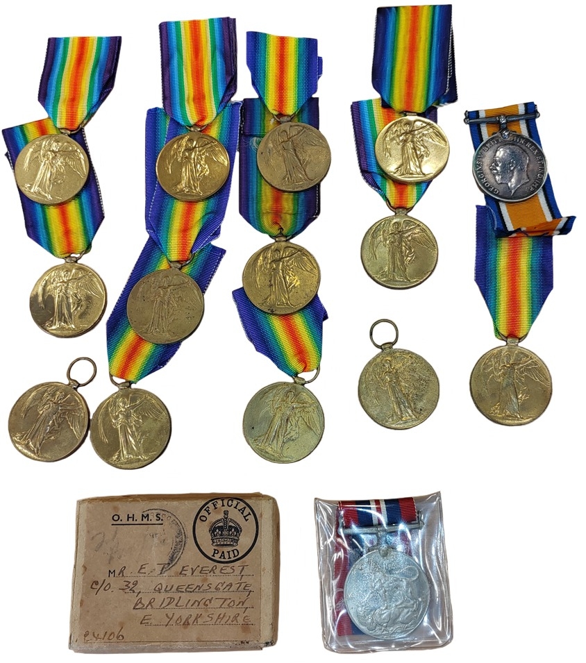 WWI RAMC range with BWM (1), Victory Medal (13) plus WW2 War Medal in transmittal box attributed to E T Everest C/O 32 Queens Gate Bridlington E Yorkshire, mixed condition, with copies of medal rolls. (R)