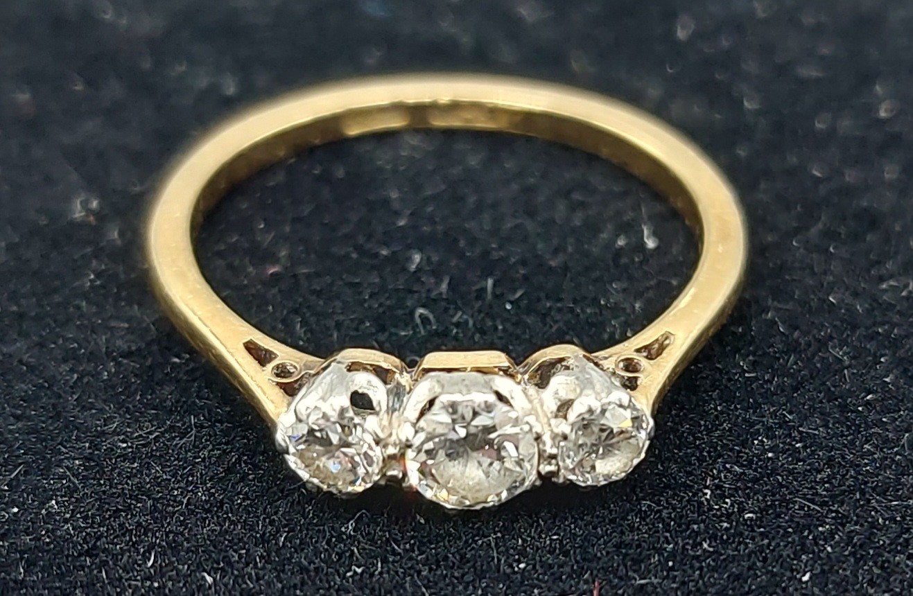 An 18ct gold and Platinum three stone Diamond ring, 2gms, ring size L