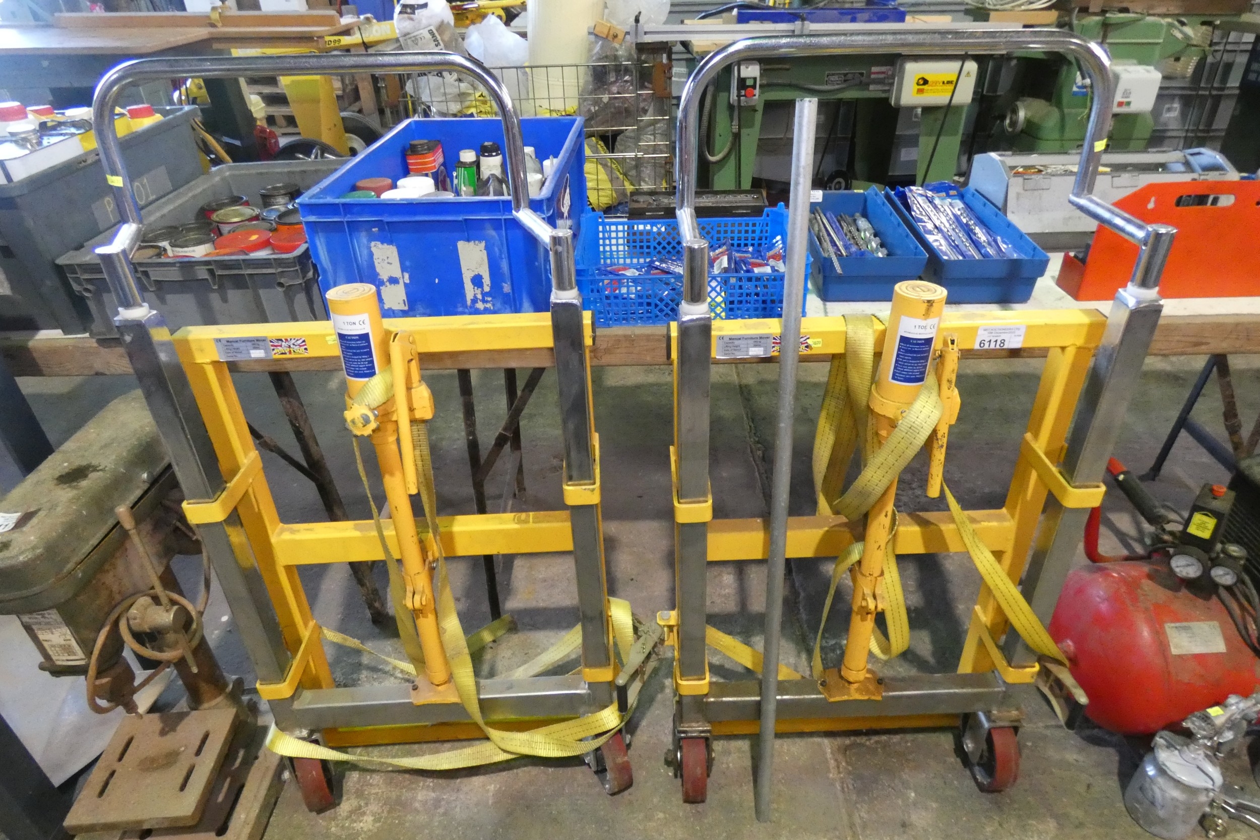 A pair of Raptor manual hydraulic furniture movers, capacity 1800kg, lift height 100mm, YOM 2014 Req. Att.