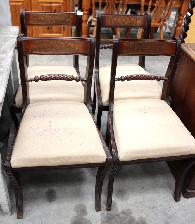 4 Inlaid Mahogany Sabre Leg Chairs