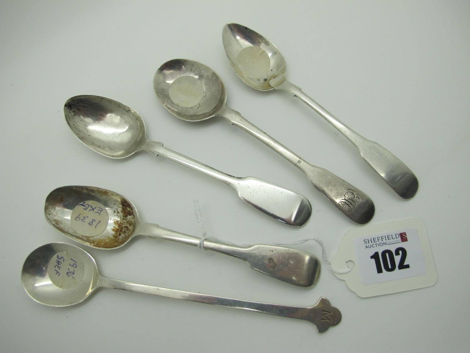 Newcastle, Exeter and Other Hallmarked Silver Spoons, and a 1930's hallmarked silver spoon. (5)