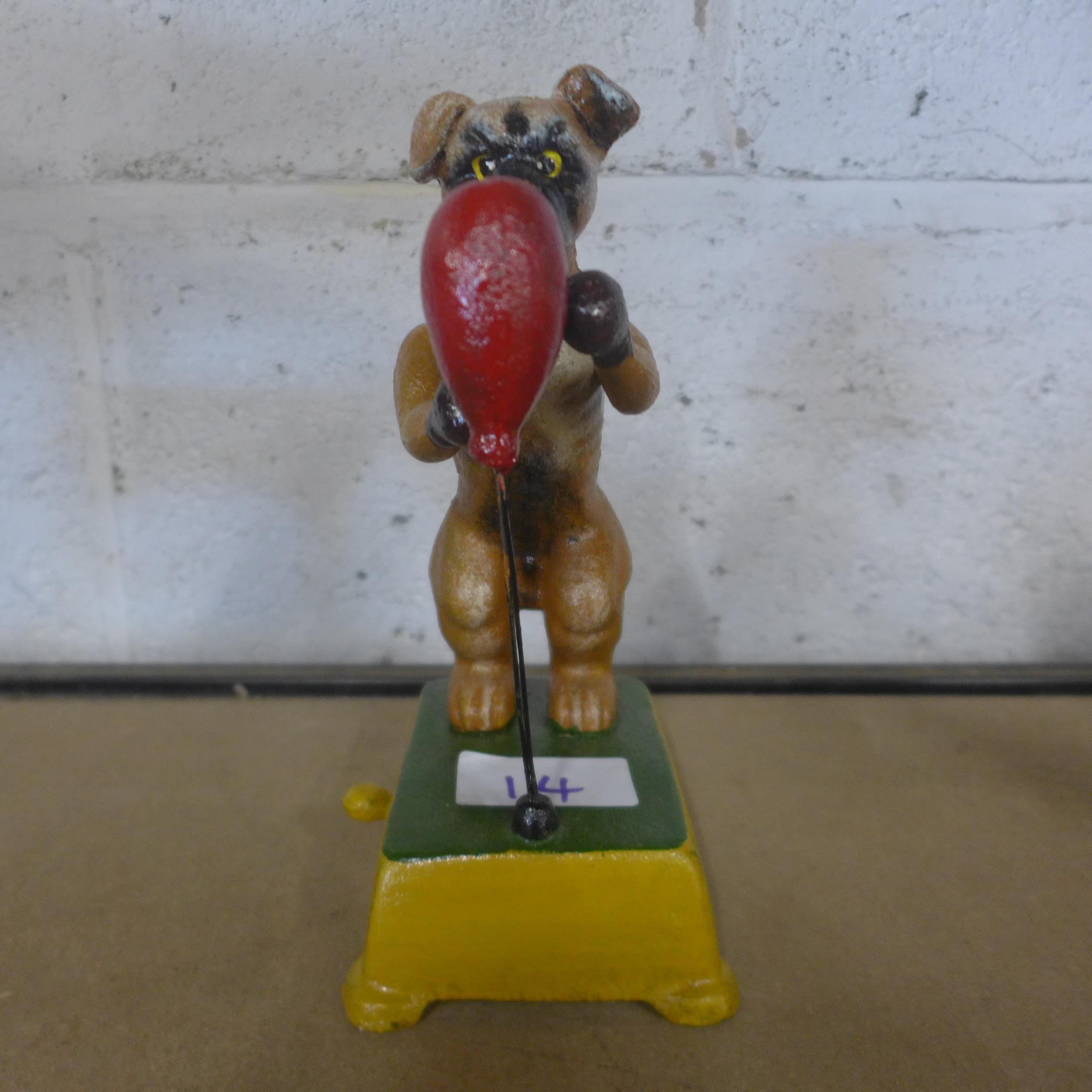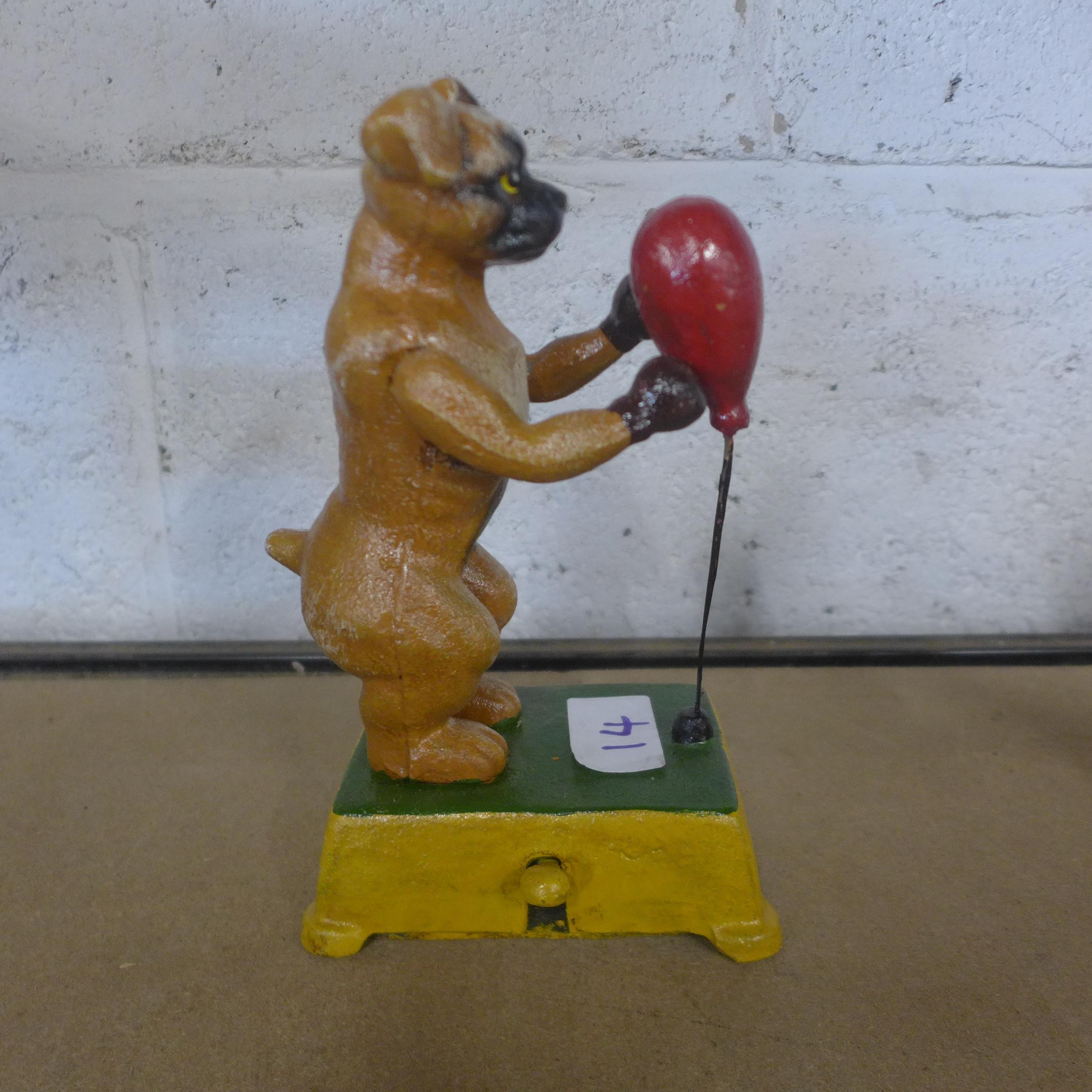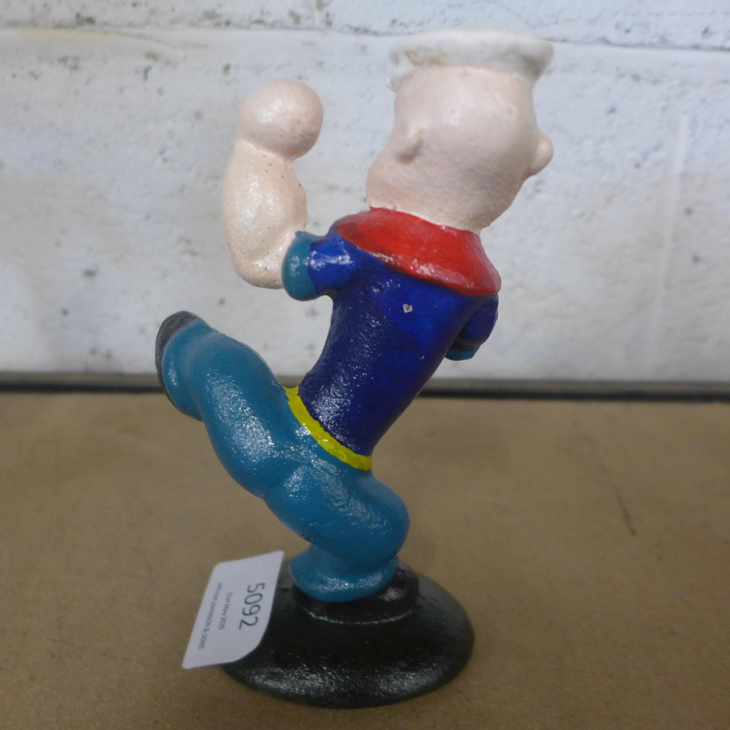 A cast metal Popeye figure and a cast metal dog with a punching bag figure *This lot is subject to VAT