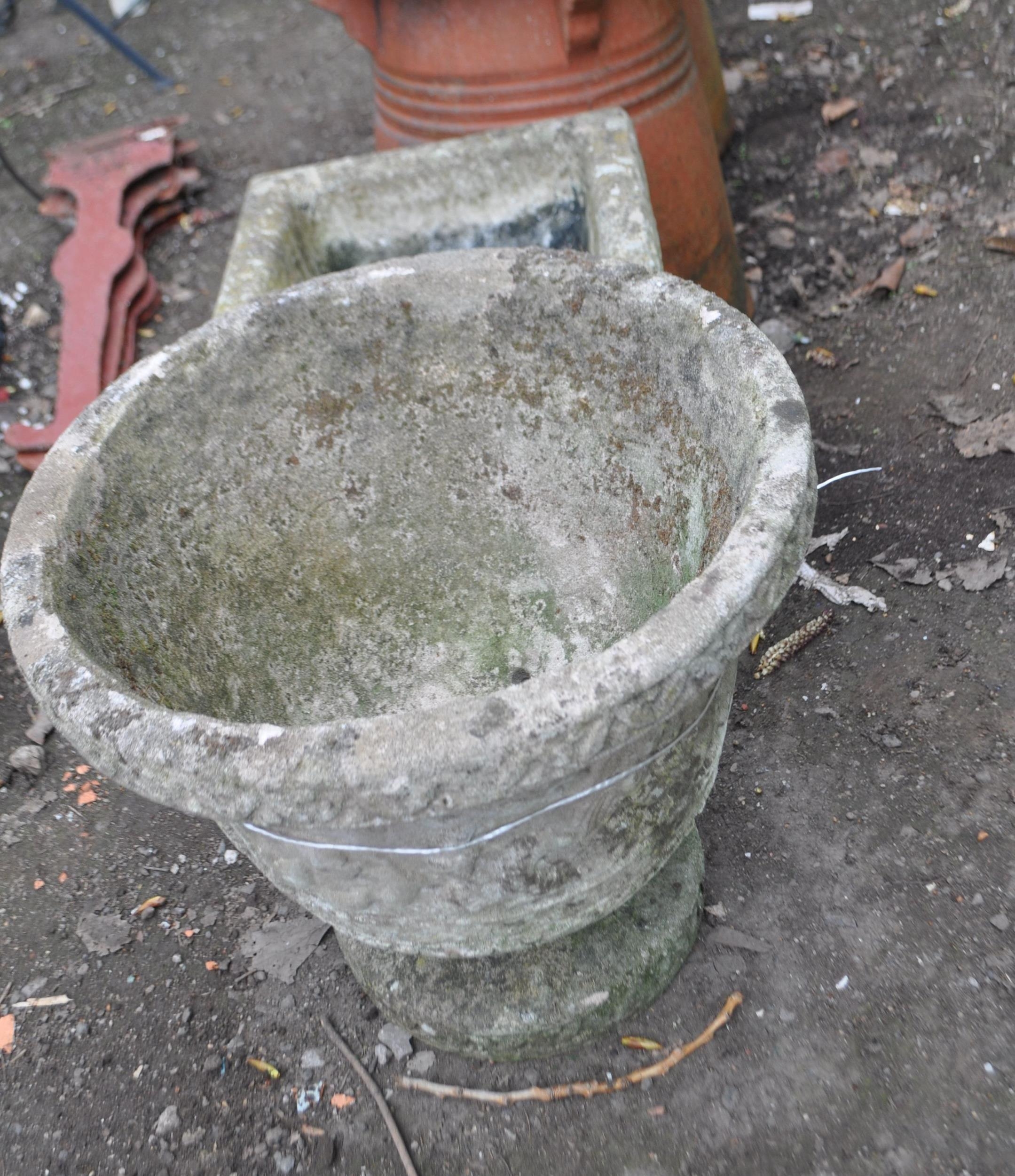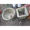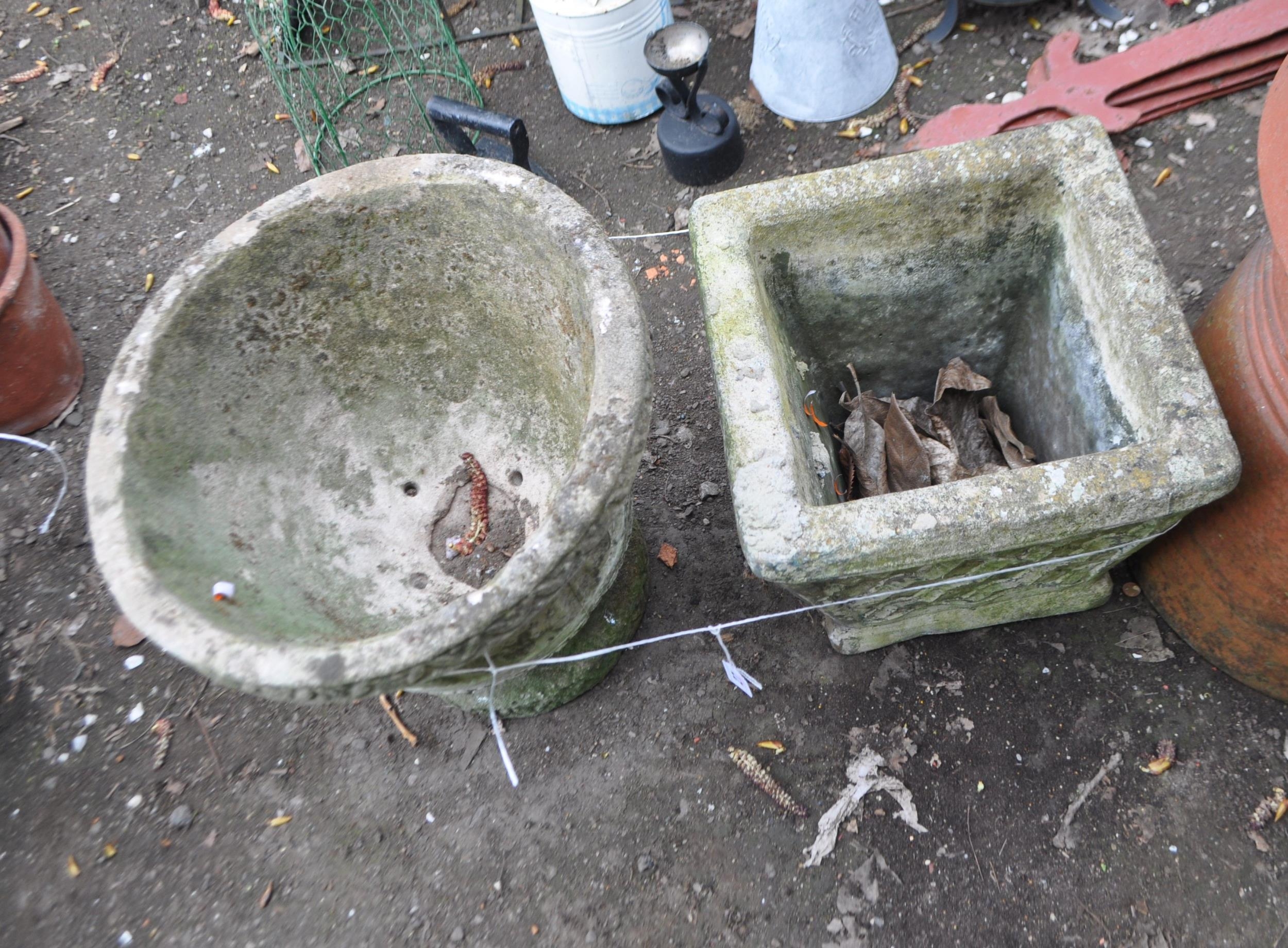 TWO GARDEN PLANTERS, including an early 20th Century reconstituted stone two piece urn, 36cm high, and a square concrete planter (2)