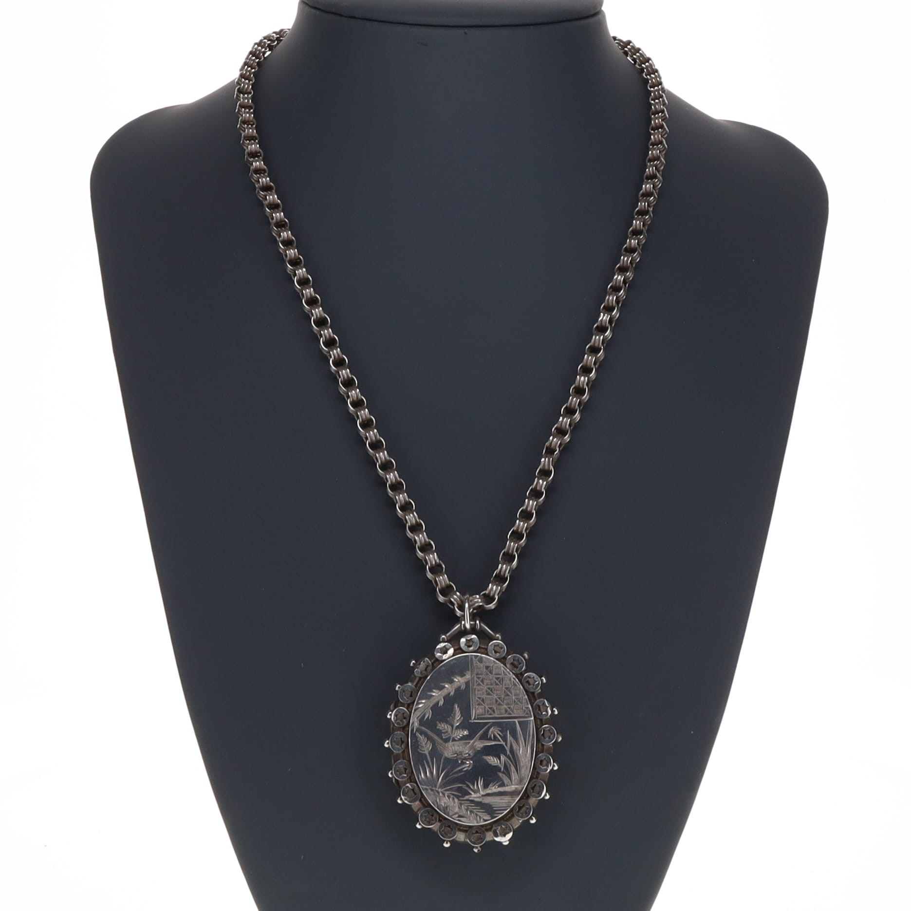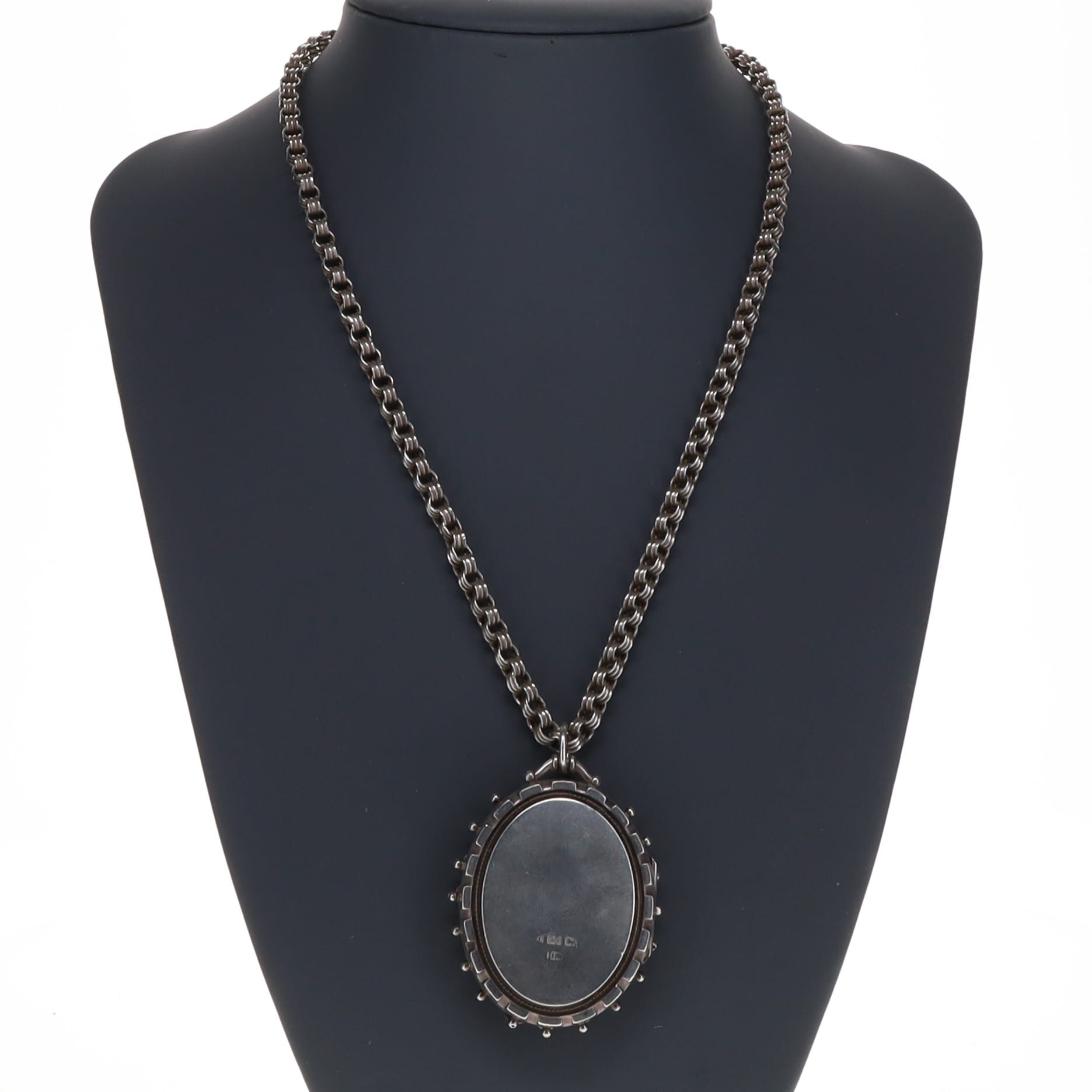 Antique Sterling Silver Locket Pendant Necklace, 20g