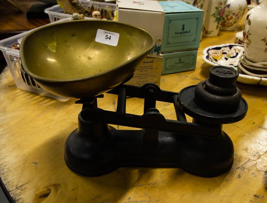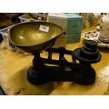 VICTORIAN WEIGHING SCALES + 3 WEIGHTS