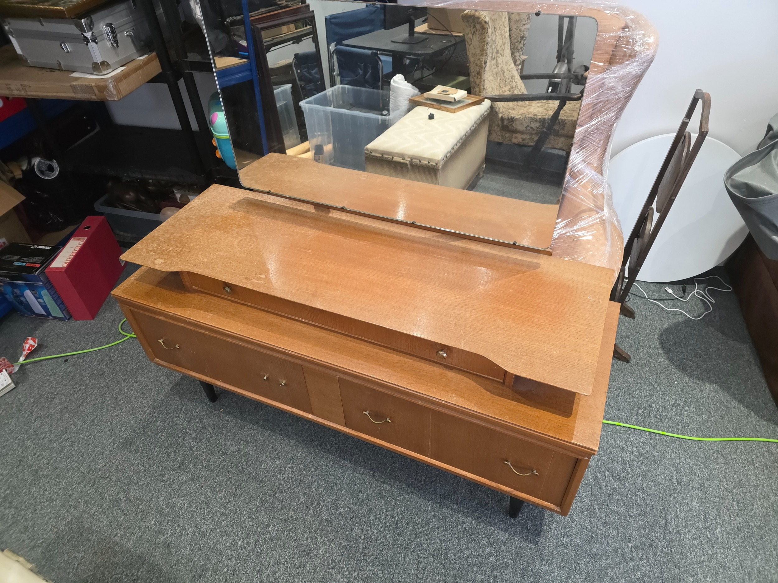 Mid-Century Modern Teak Veneer Dressing Table with Attached Mirror