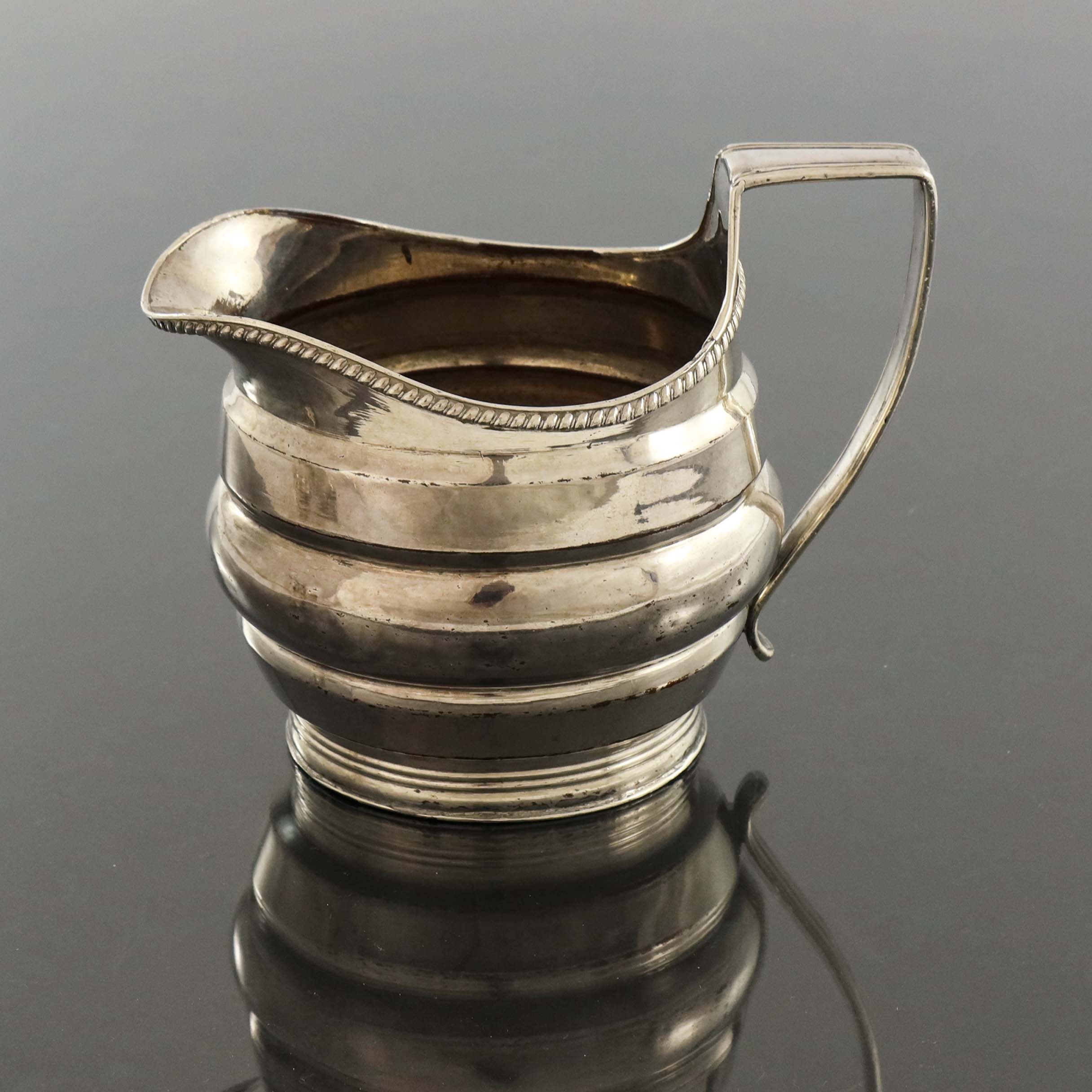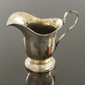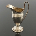 Three George III Old Sheffield Plate cream jugs, circa 1780 to 1810, two of footed helmet form, one lobed, with angled handle, 15.5cm high (3)