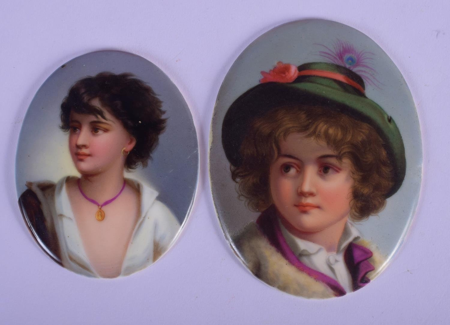 19th c. fine quality Continental plaque of an Italian girl and a larger plaque of a Italian Boy, both wear local dress. 11cm x 8cm (2)