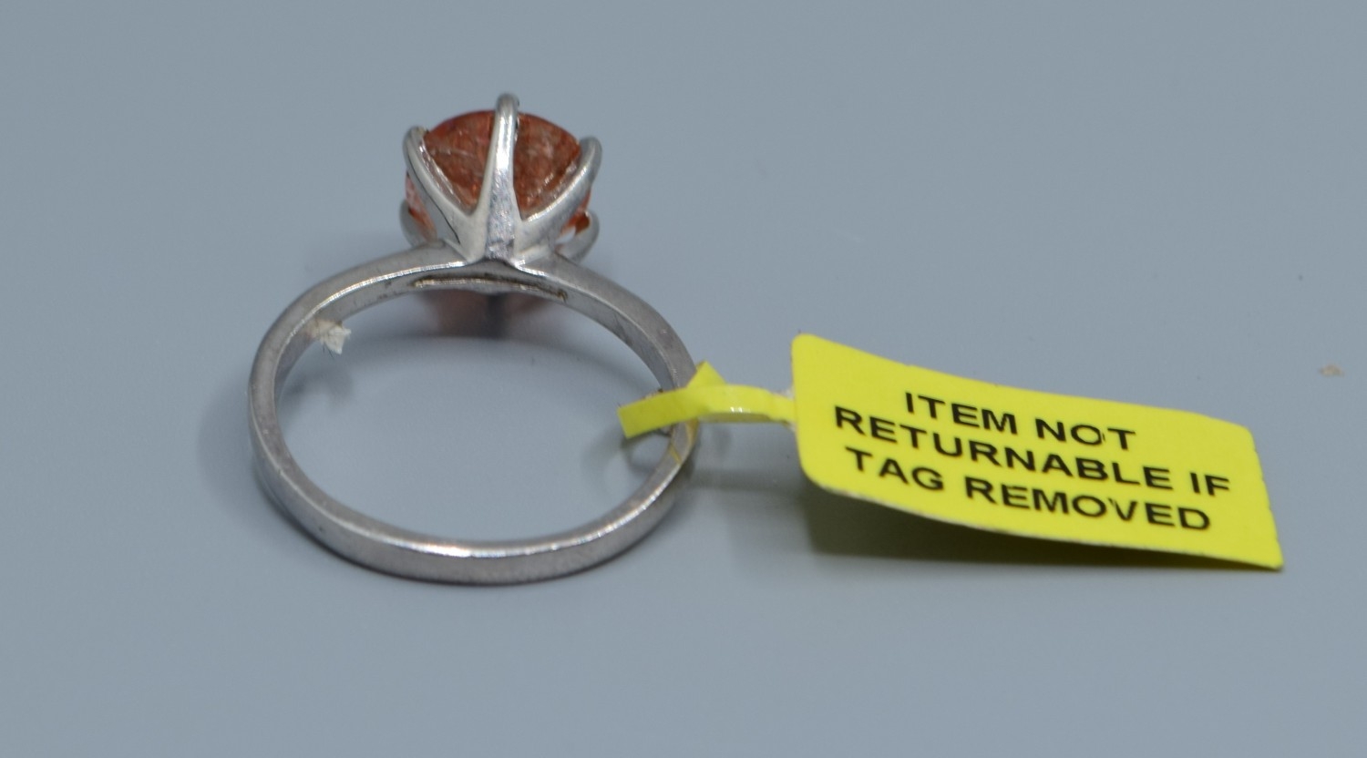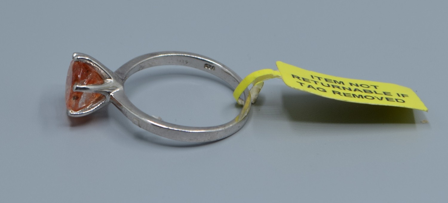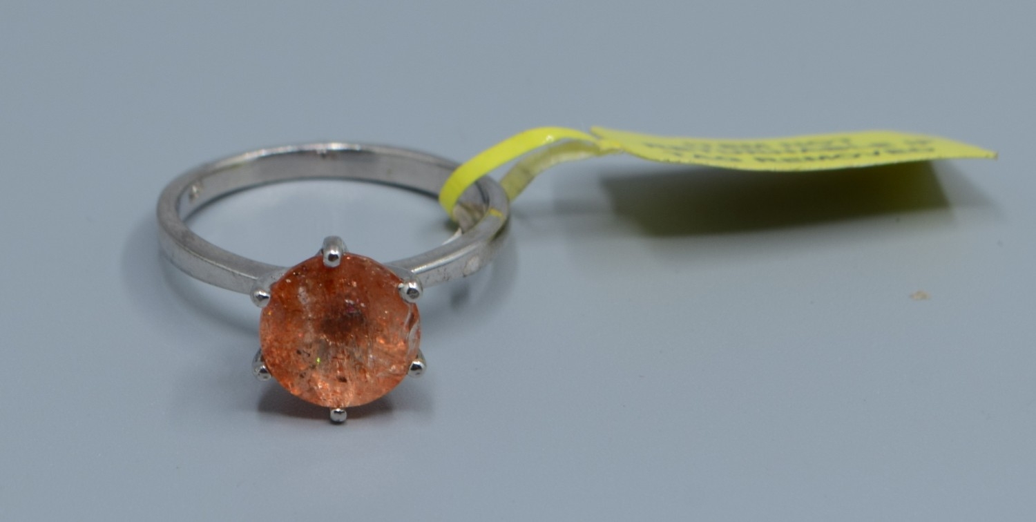 New with Tag 925 silver ladies solitaire Amber quarts large dress ring size P