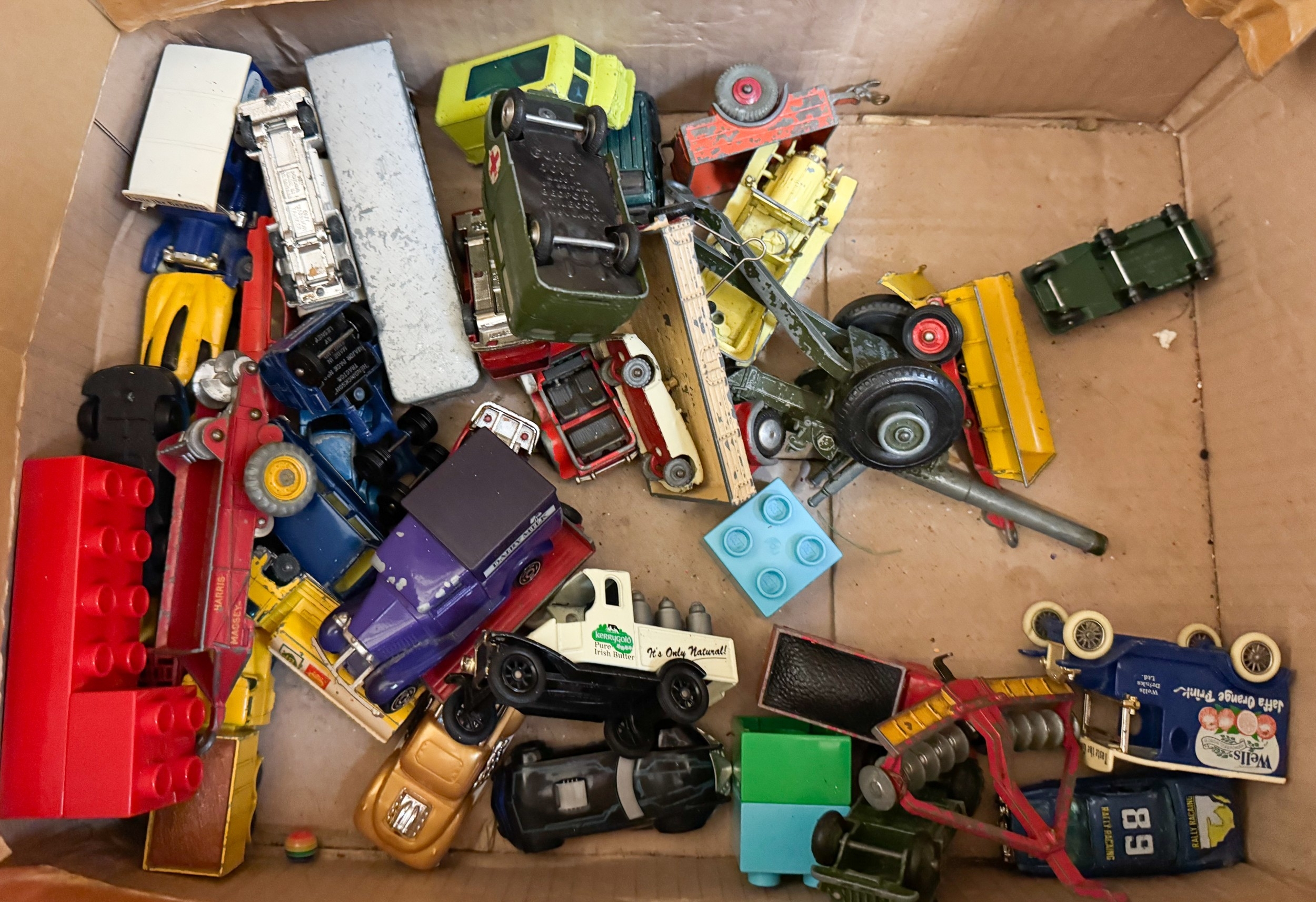 A large quantity of vintage played with die cast toys to include Spot-on Triang toys and Corgi etc