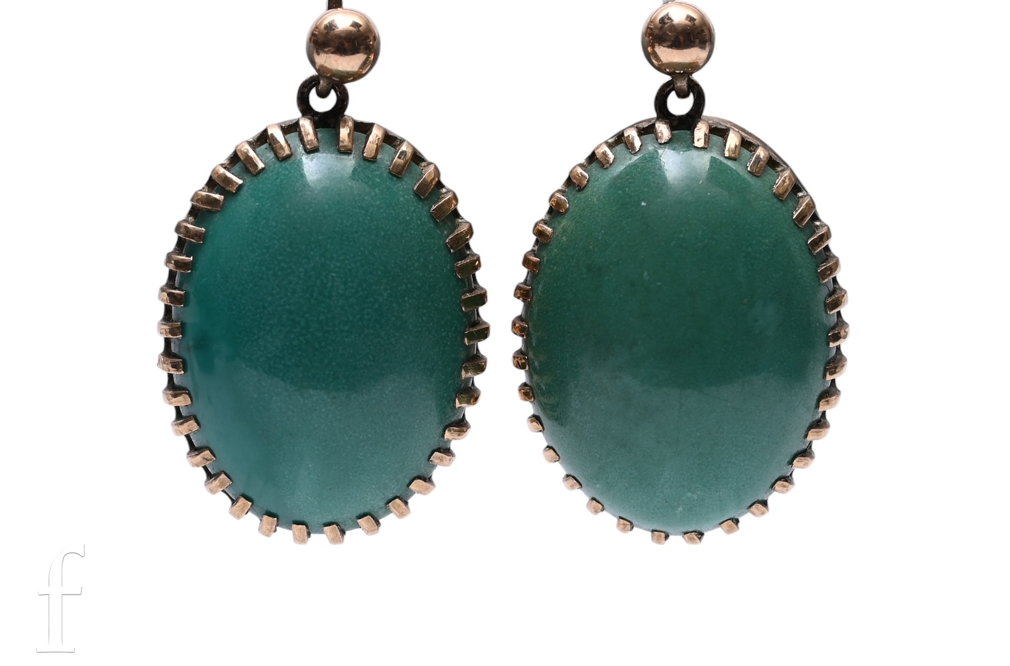 A pair of turquoise drop earrings, the cabochon stones with yellow metal unmarked pierced mounts, and loop fittings, total weight 5.2g, unmarked, 2cm. (2)