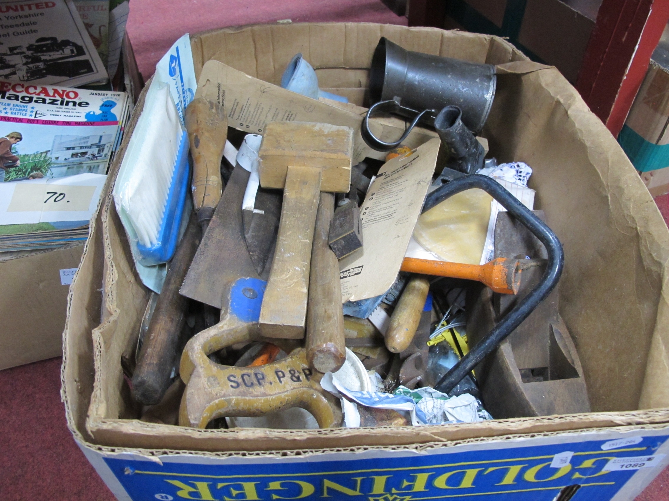 Hammers screwdriver, Tenonsaw, other tools etc. 1 Box.