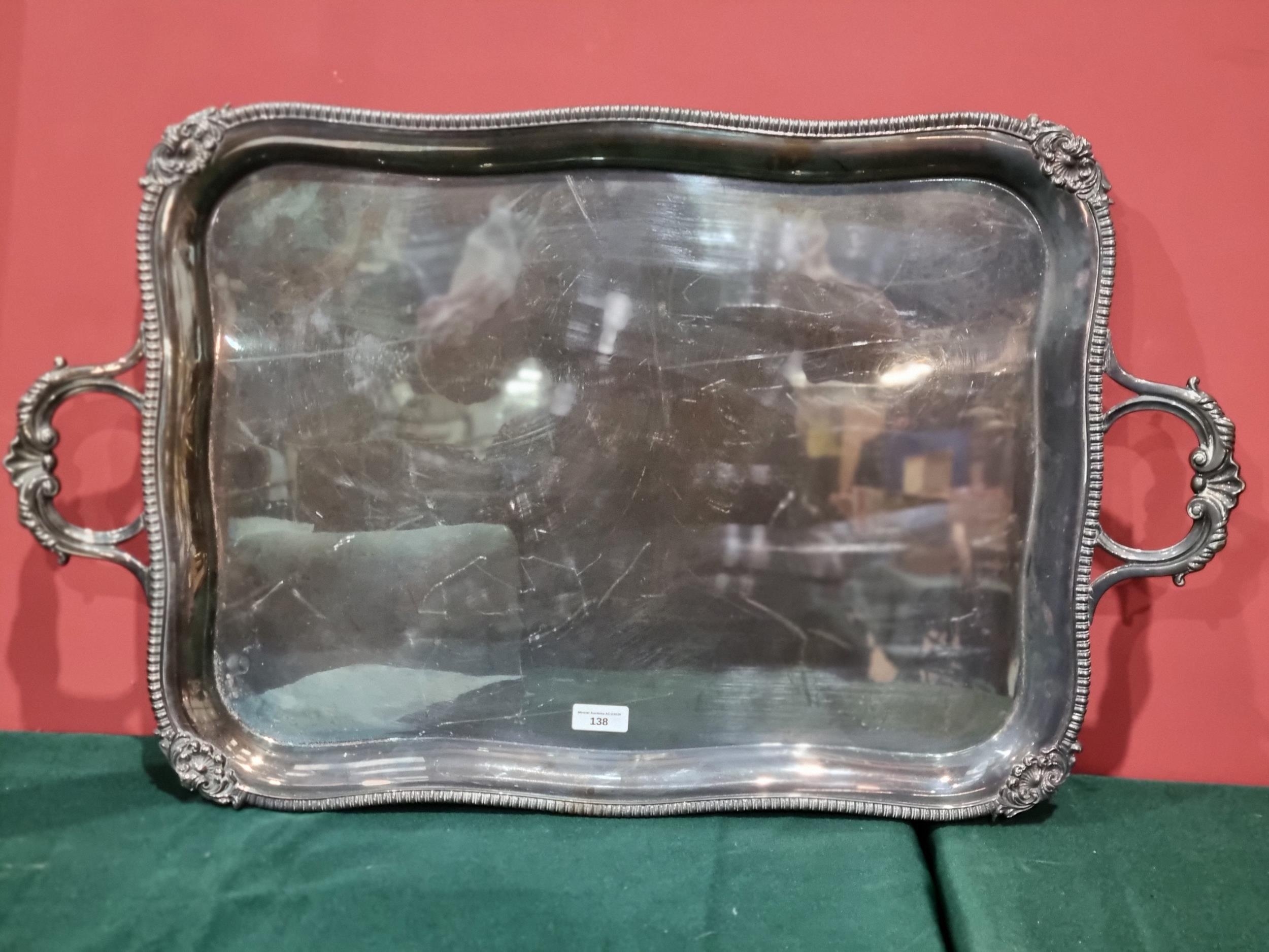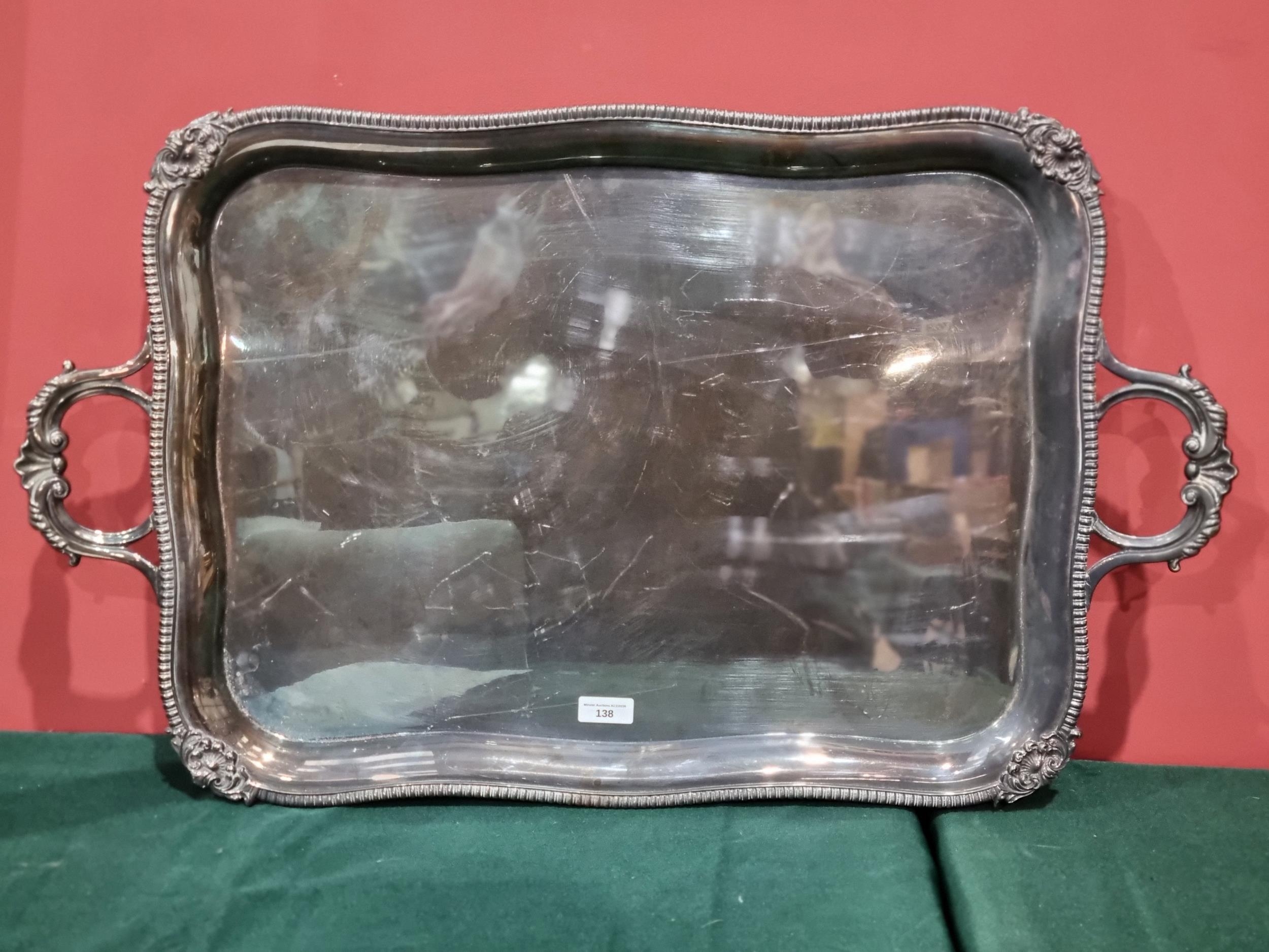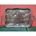 A large silver plated two handled oblong Tea Tray with gadroon rim having scallop corners, 30 x 17in