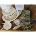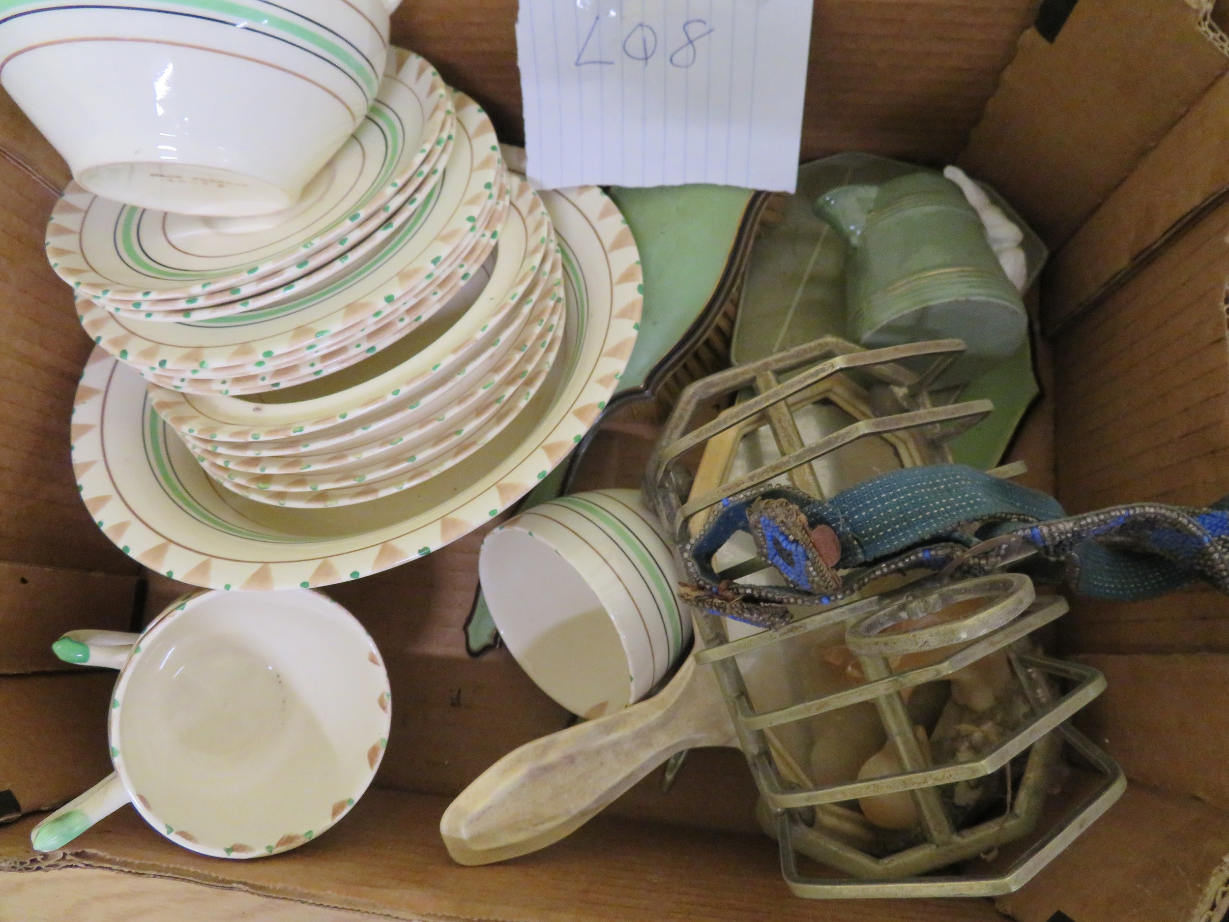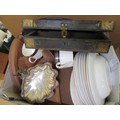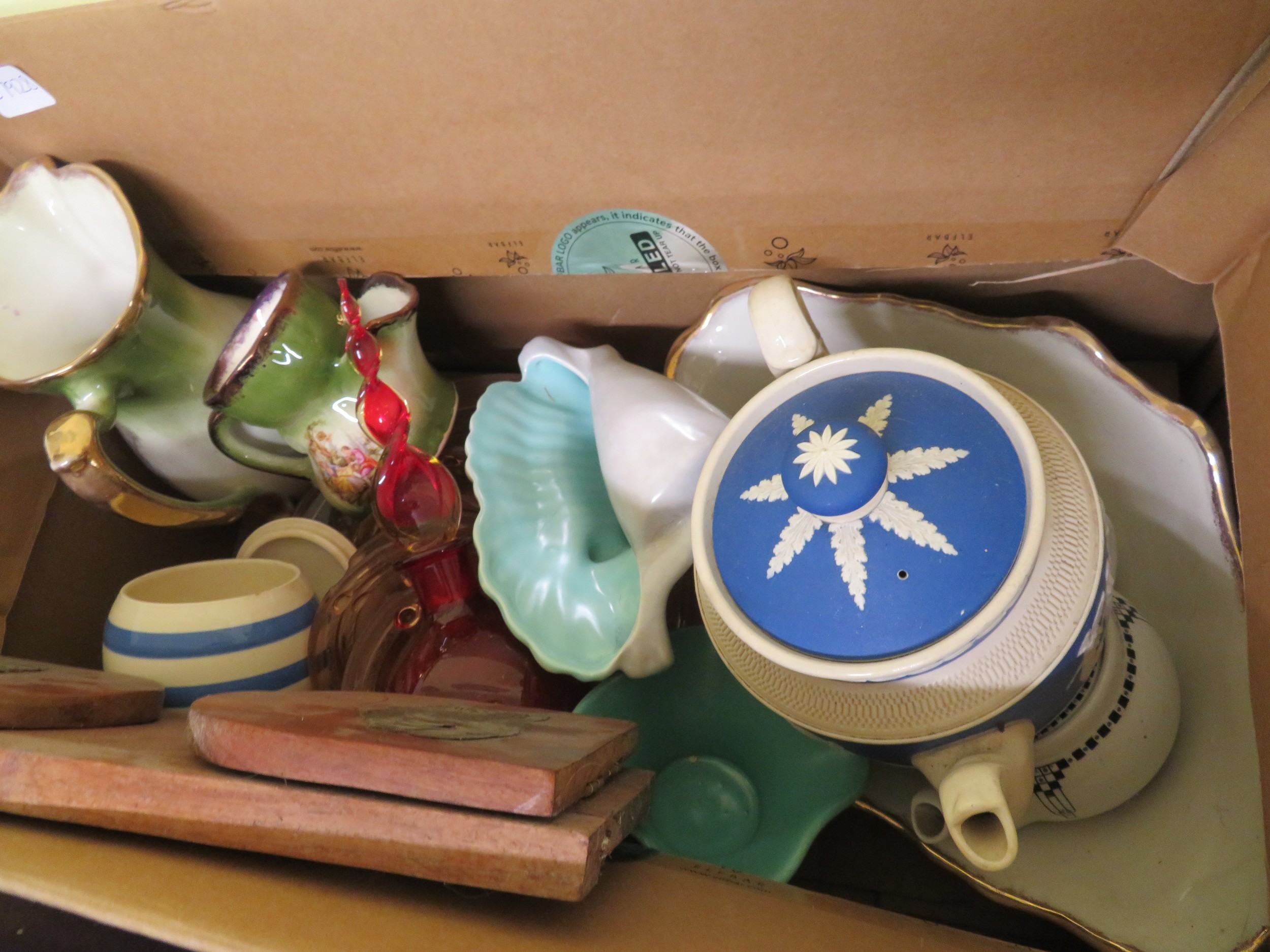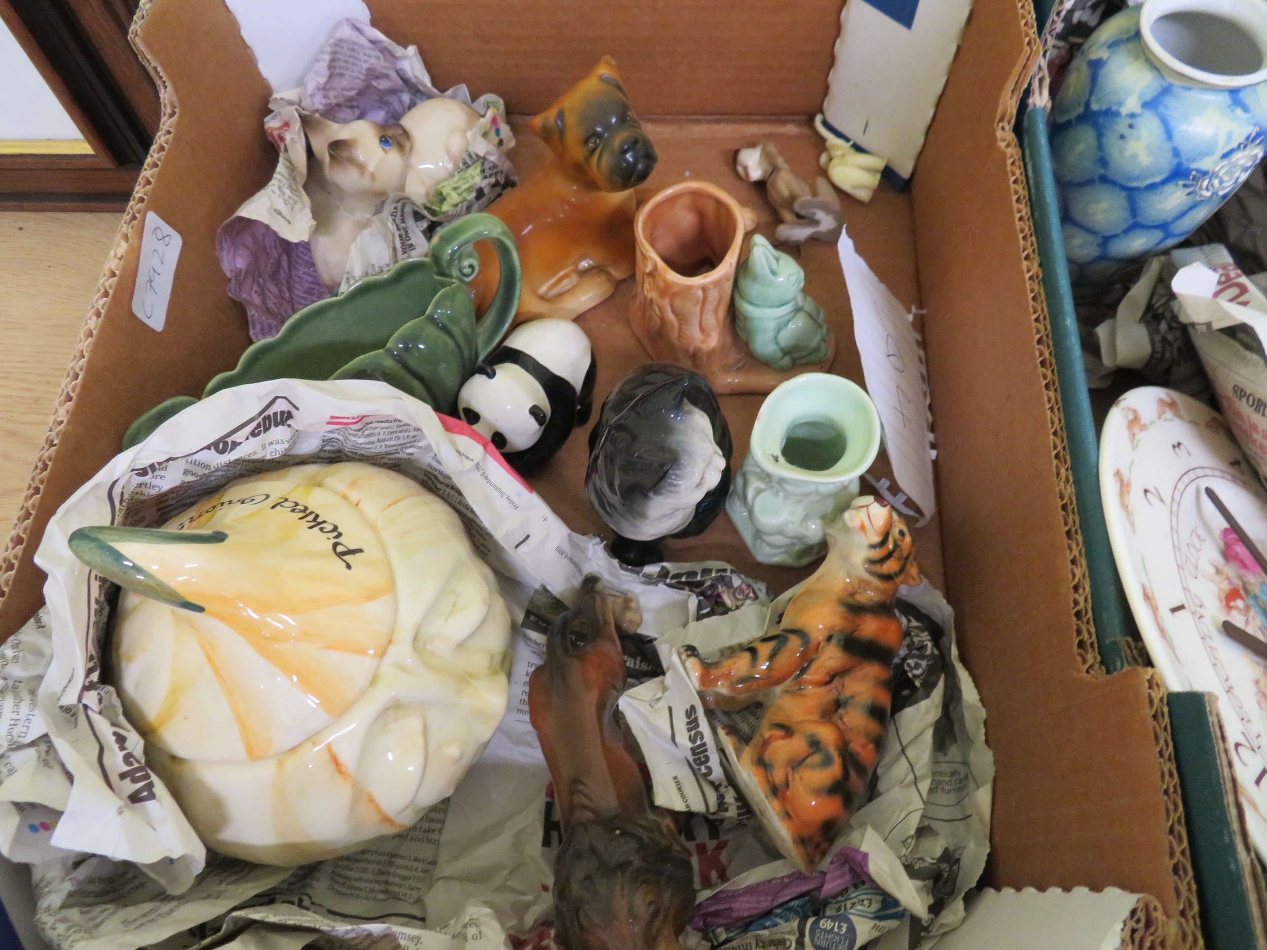 Five boxes of crockery, ornaments, knick knacks, trinket boxes plus a mantel clock