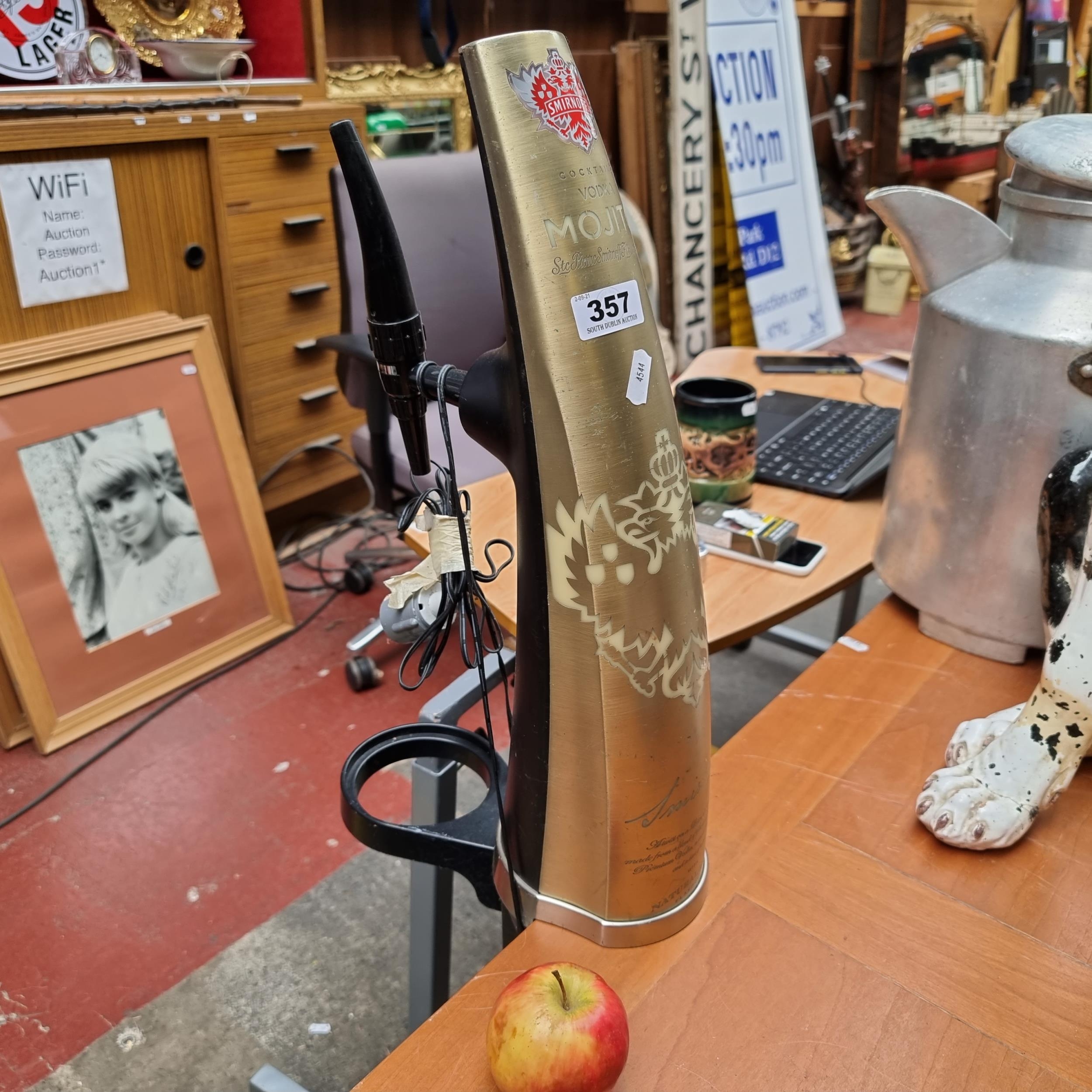 A Smirnoff Vodka Mohito Large light up tap with a vice grip style attachment for mounting.