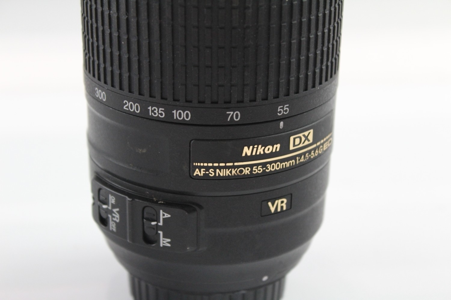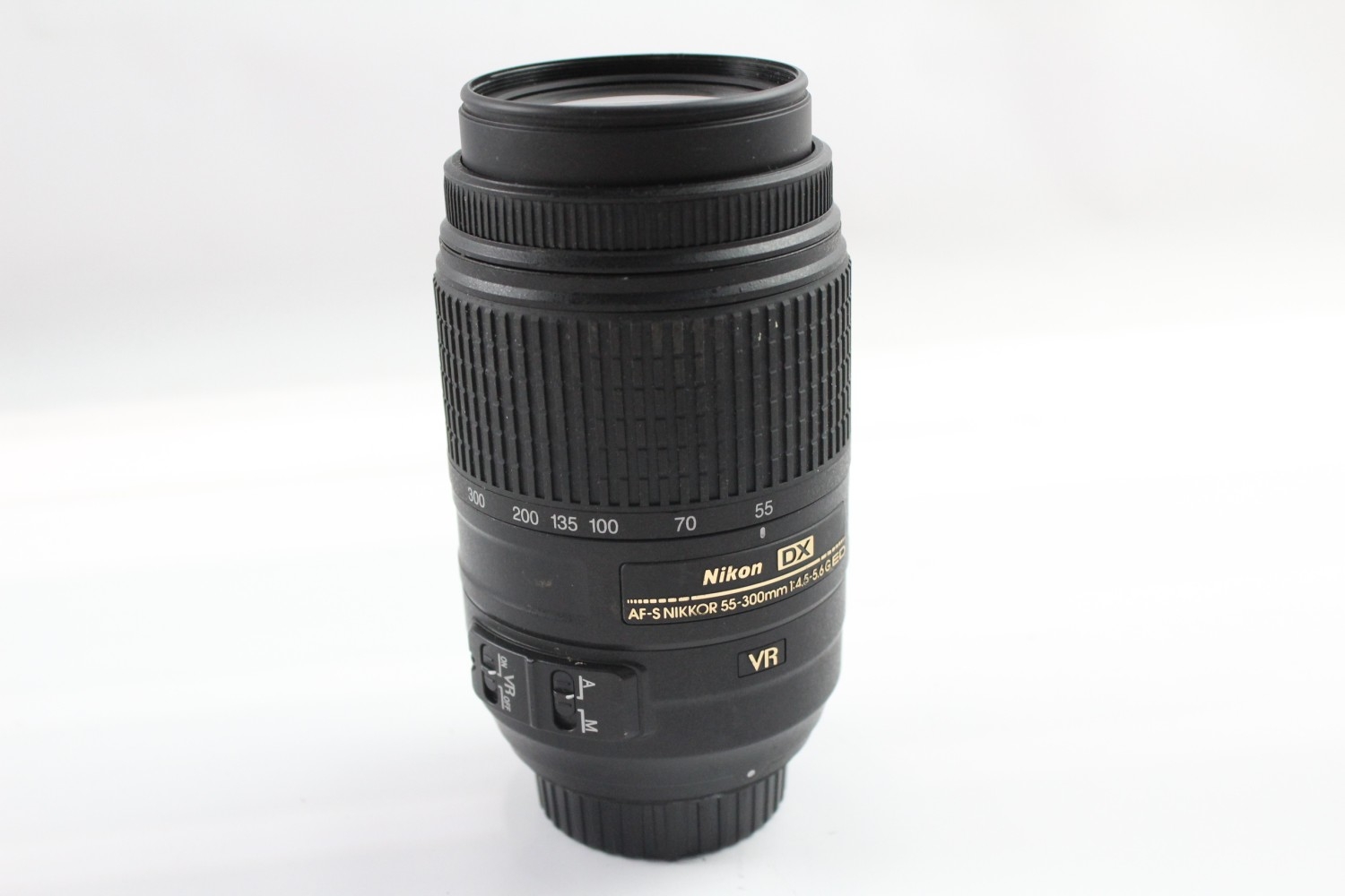 A Nikon Nikkor DX AF-S 1:4.5-5.6 G ED 55-300mm autofocus camera lens for Nikon