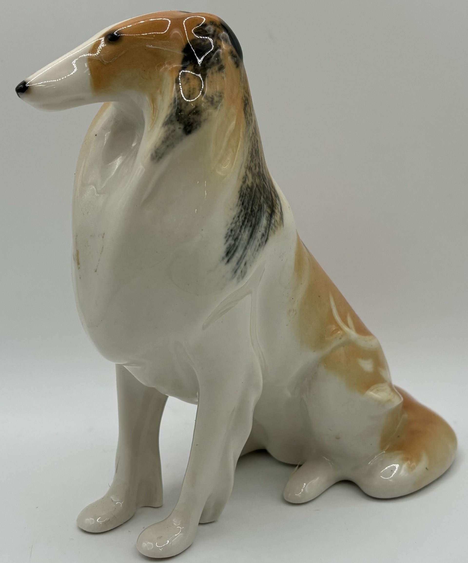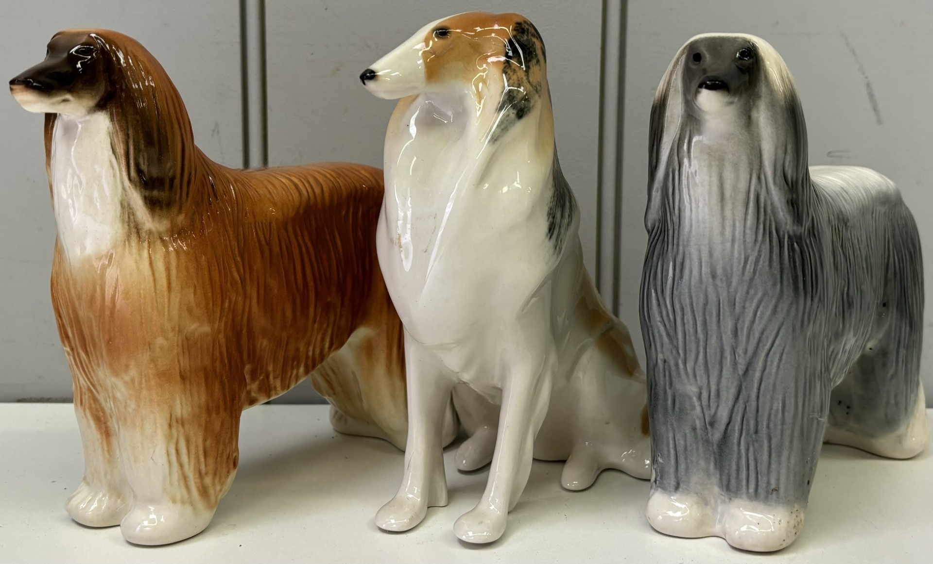 Collection of 3 Lomonosov (Russian) dog figures. Tallest 16cm.