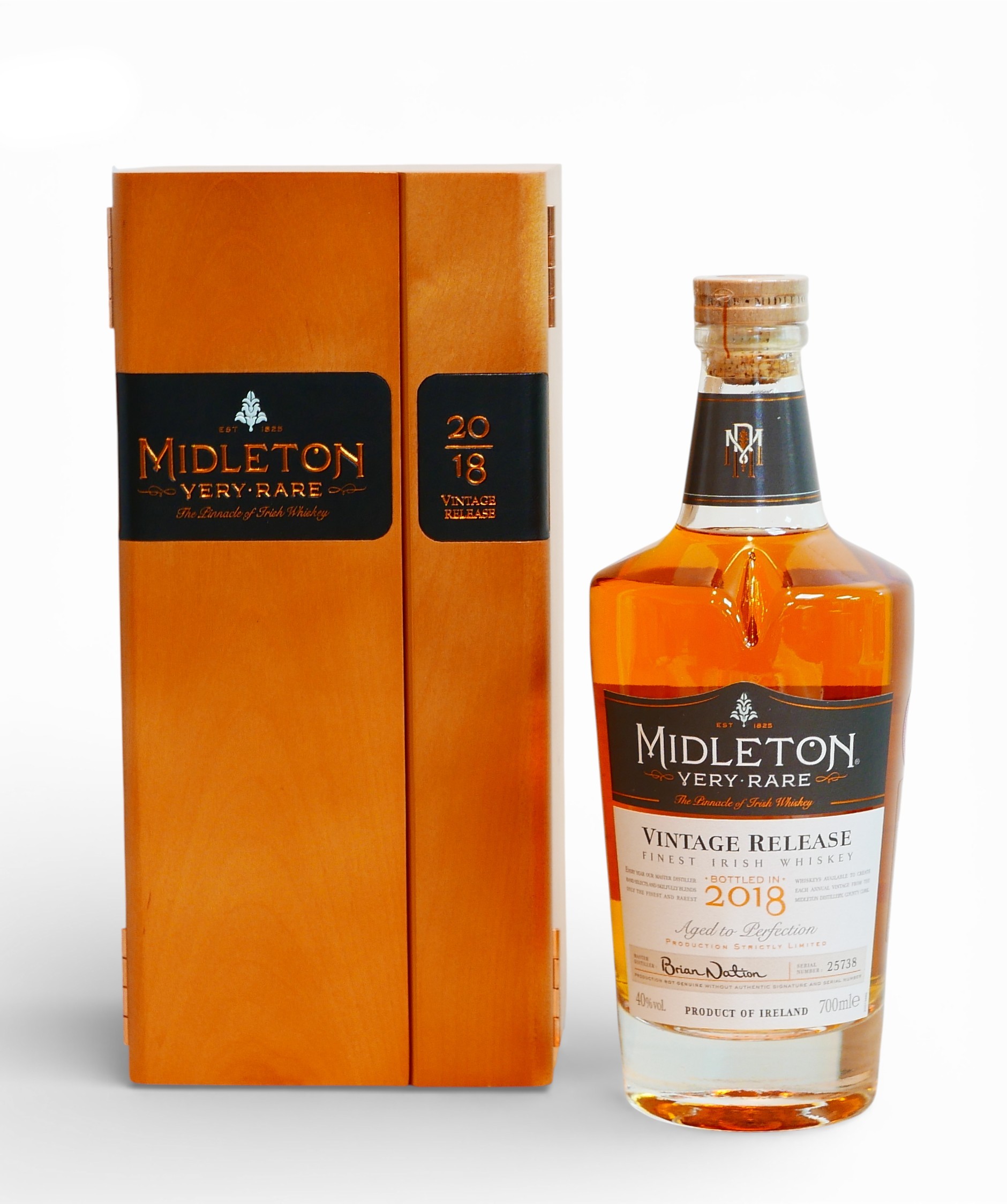 A bottle of Midleton 2018 Irish whiskey, 70cl bottle with OWC and original packaging.