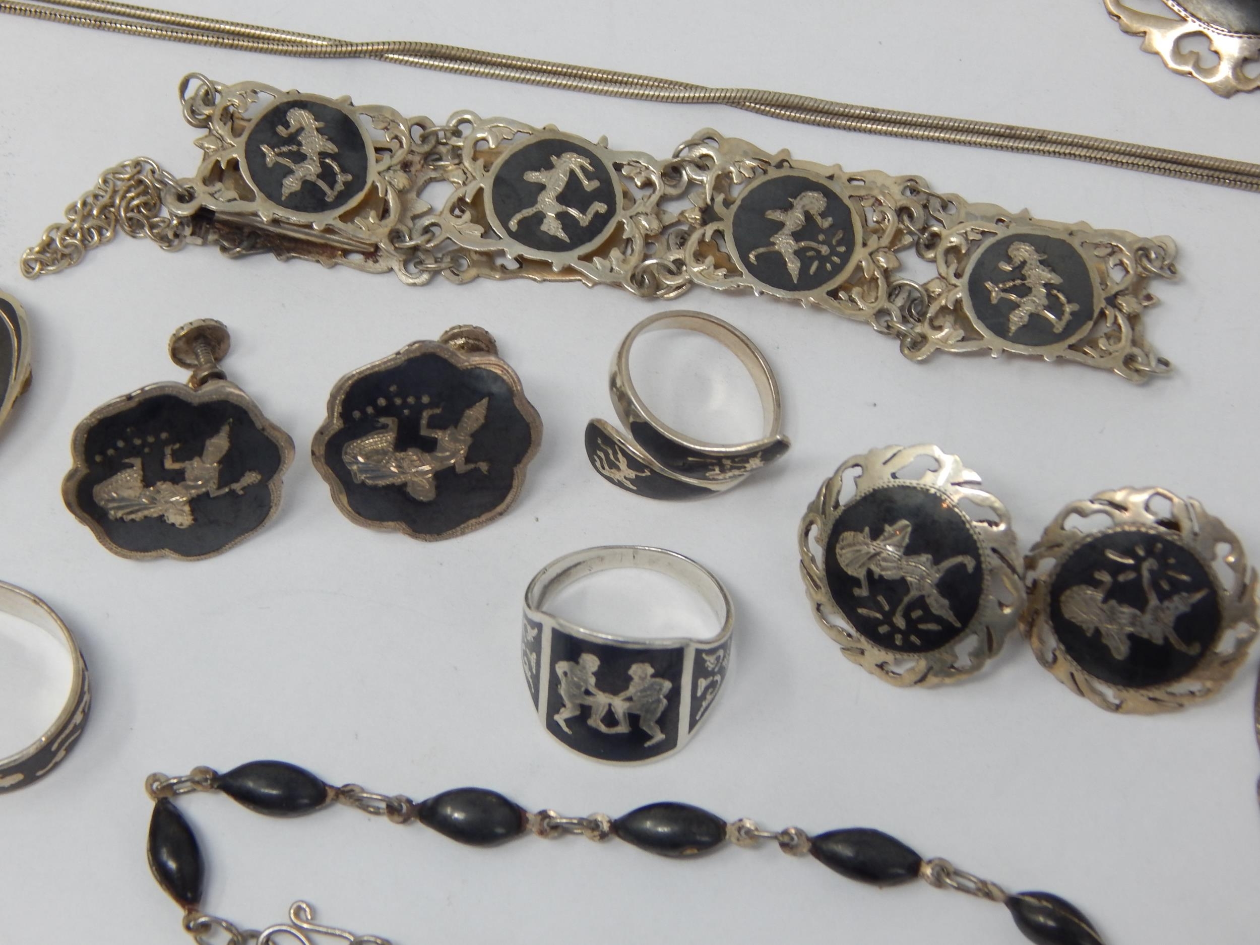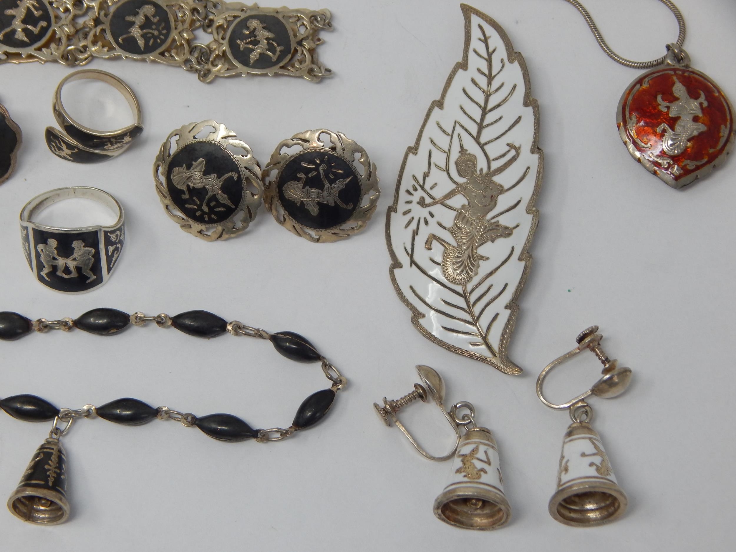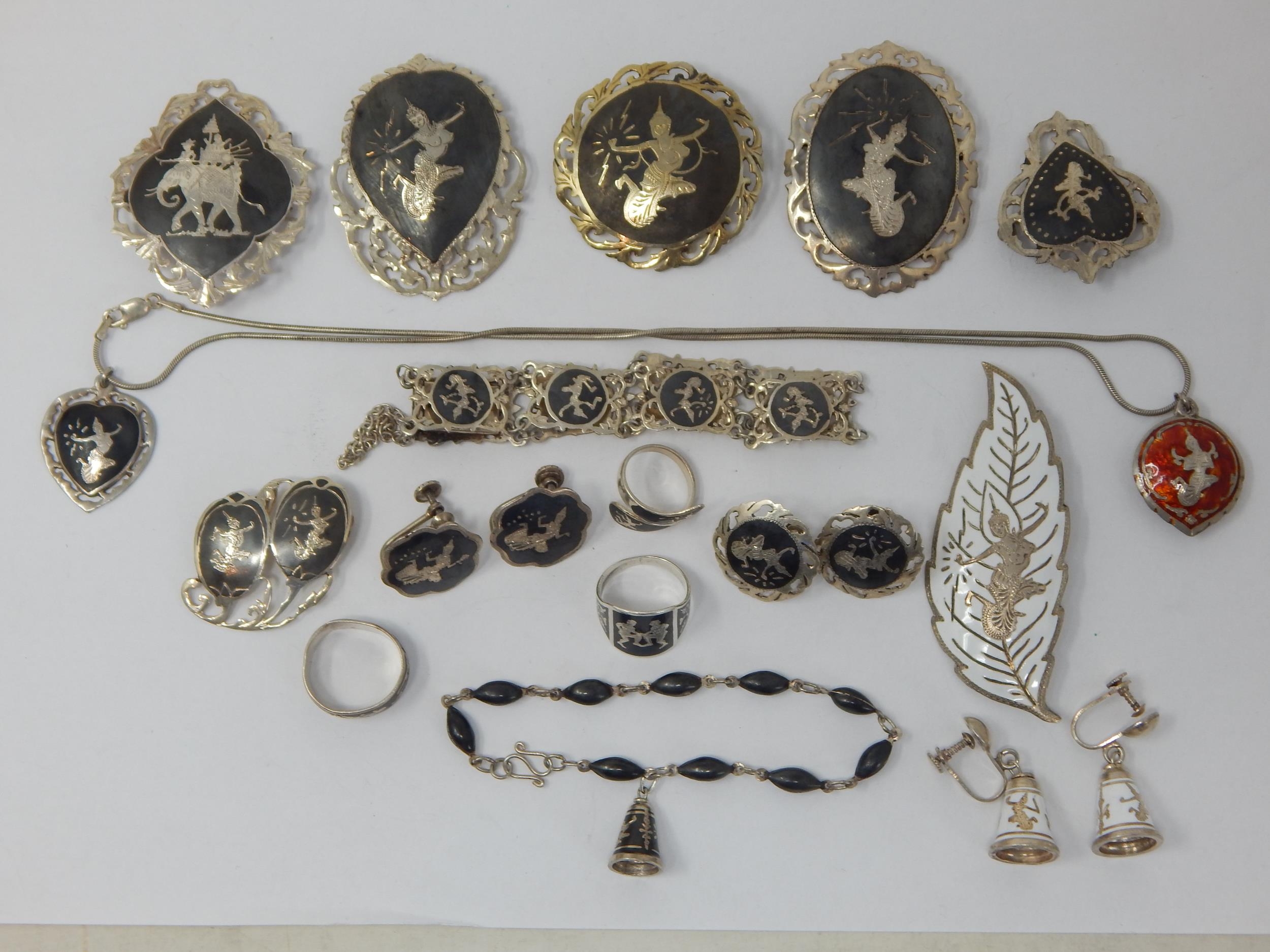 A Large Collection of Thai Sterling Silver Jewellery Including Brooches, Earrings, Necklaces, Bracelets etc together with a Hallmarked Silver Bangle in Original Fitted Case.