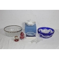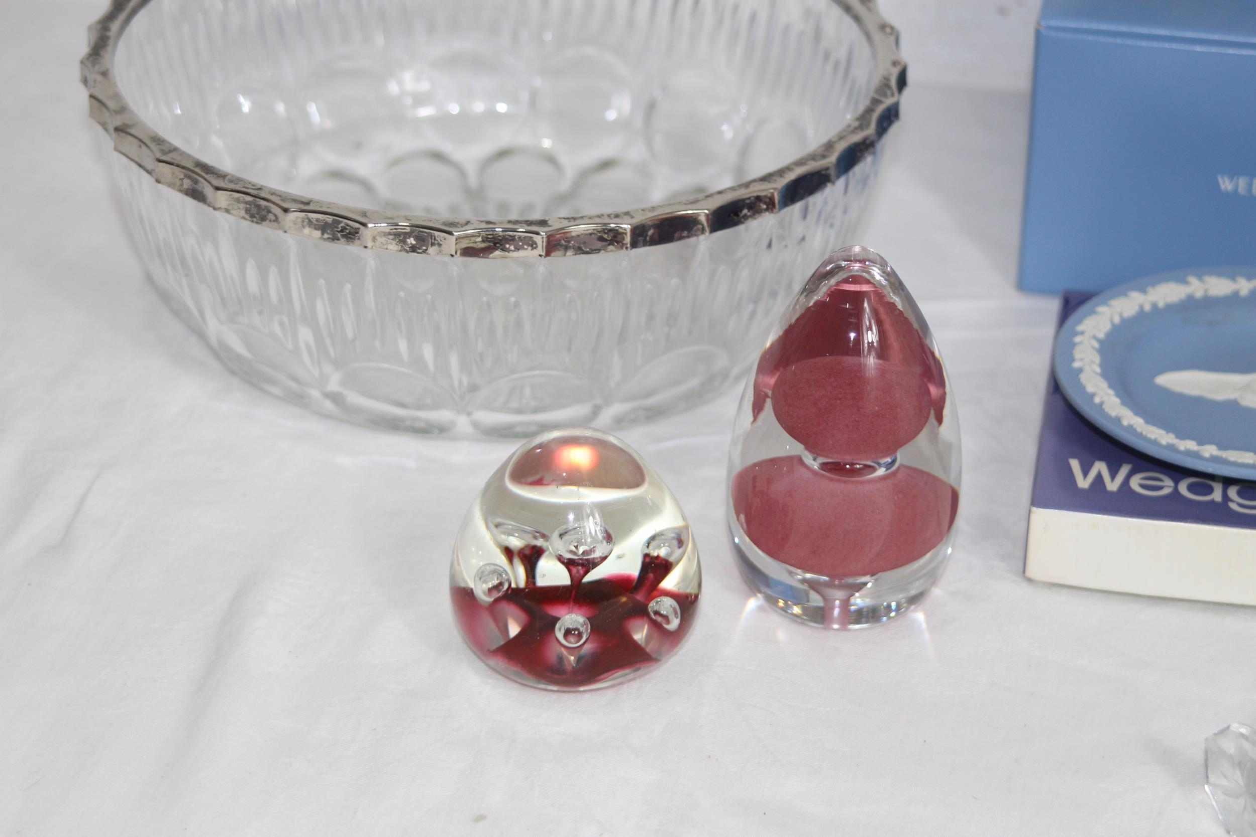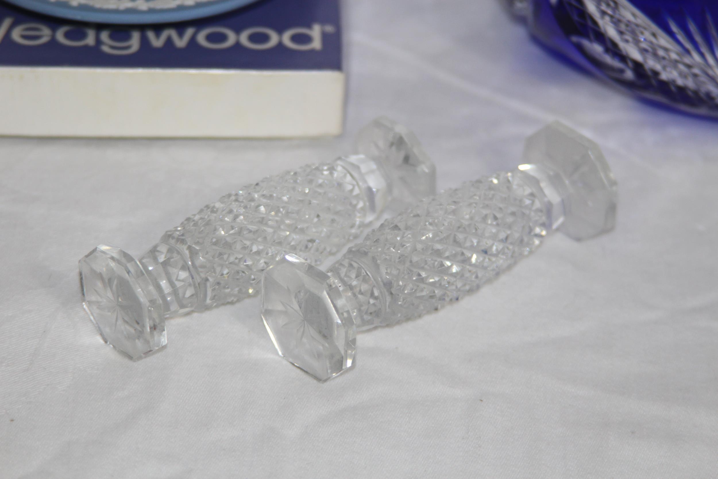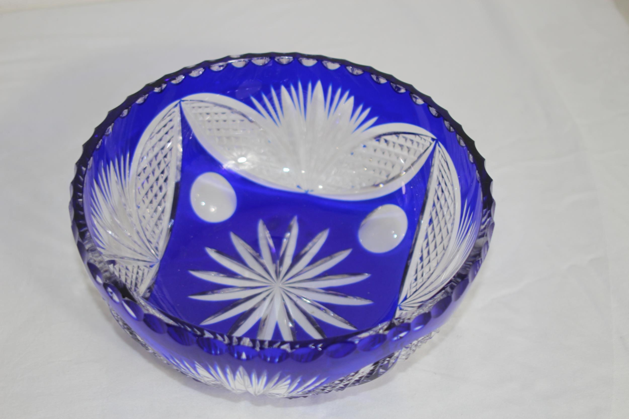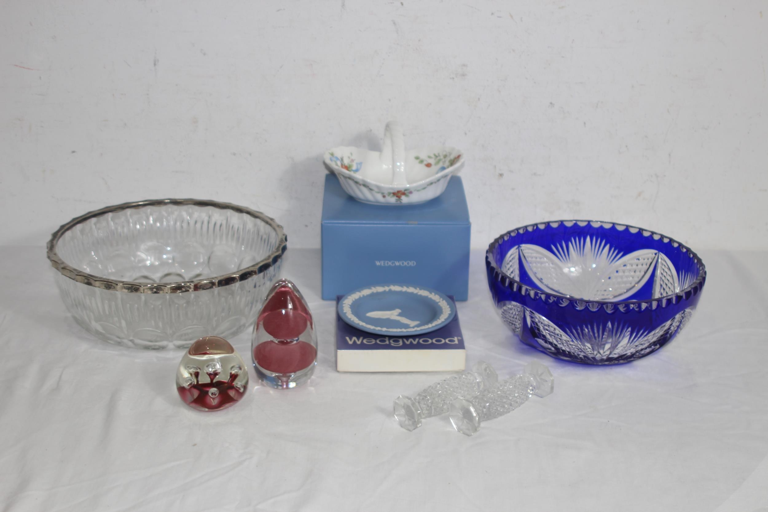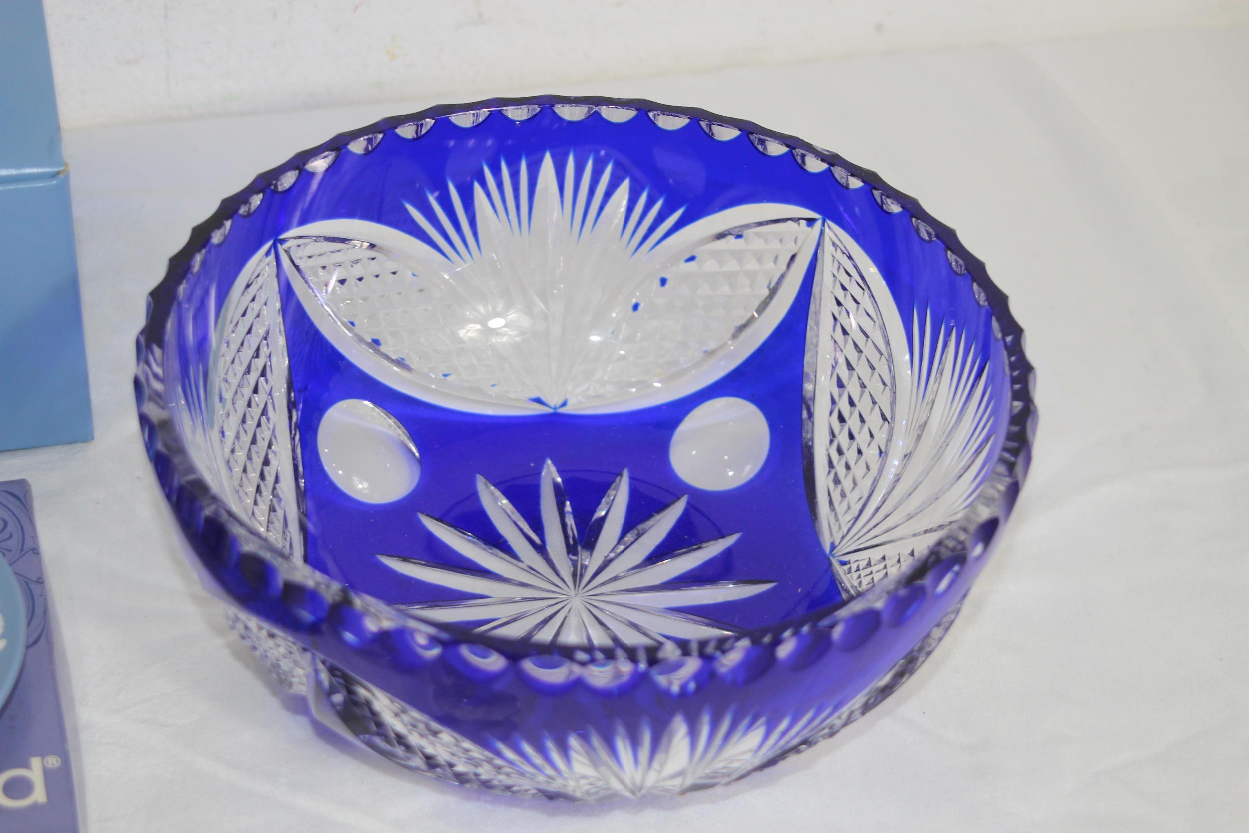 BOHEMIAM BLUE CRYSTAL BOWL, WEDGWOOD AND OTHER CRYSTAL AND GLASS ITEMS