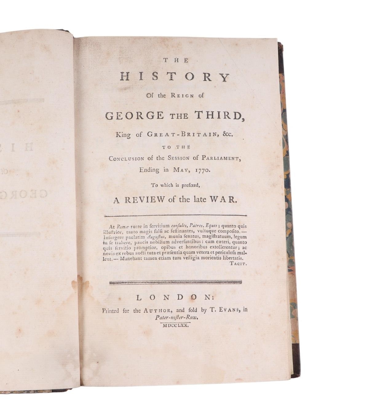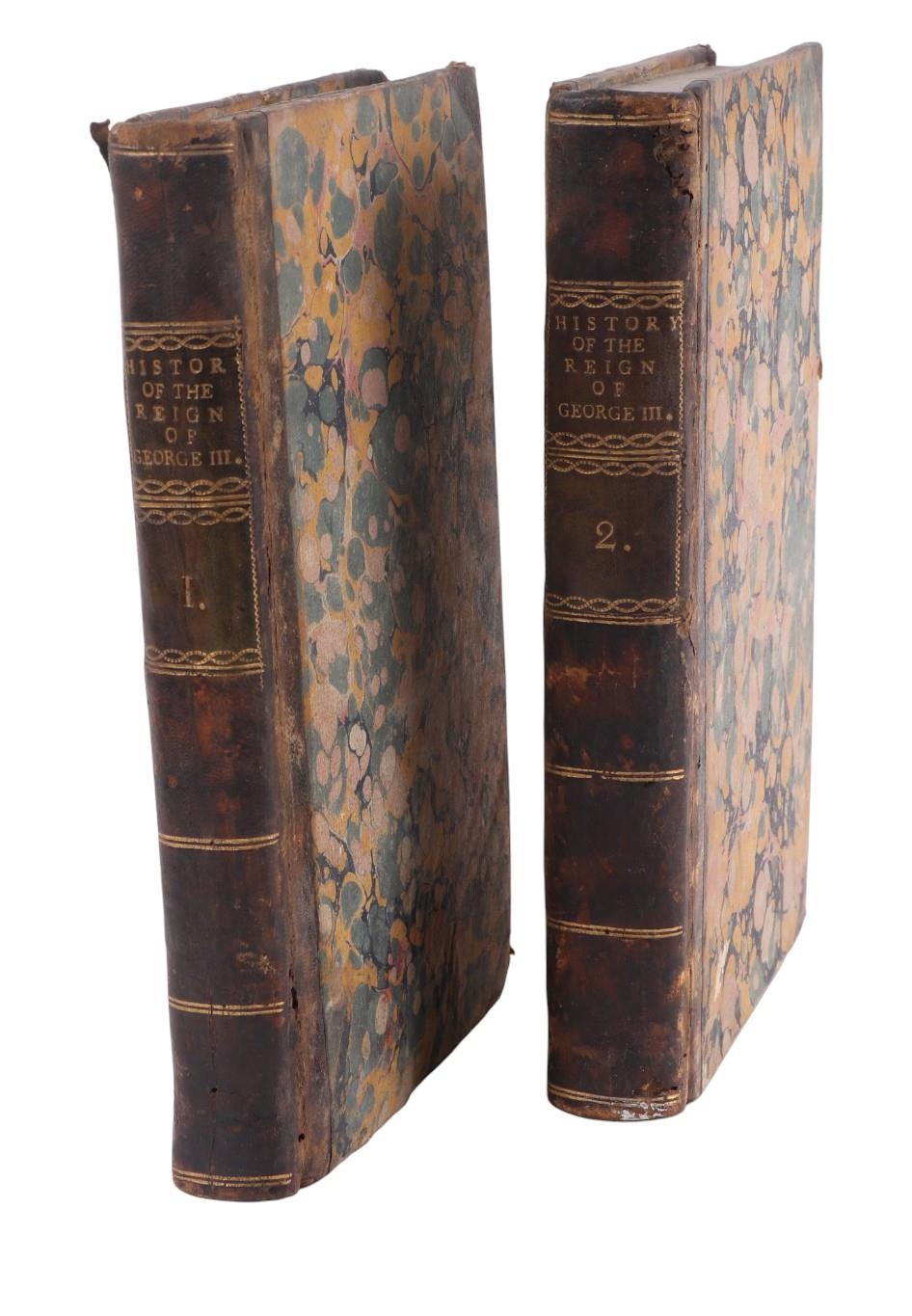 The History of the Reign of George III vols 1 & 2, first editions, 1760 and 1782, printed by T Evans, half calf with marble end boards (2).
