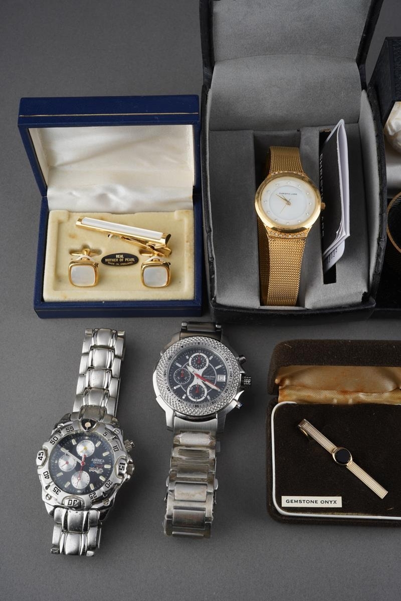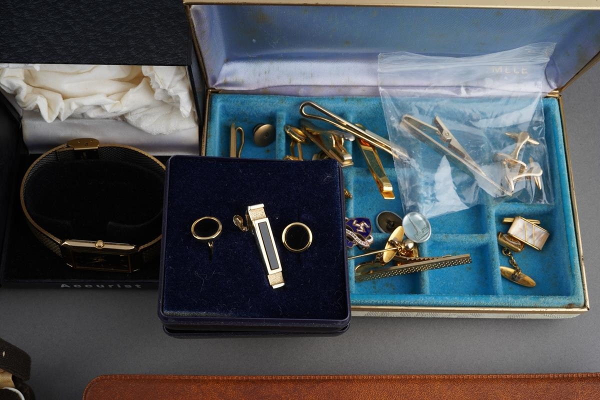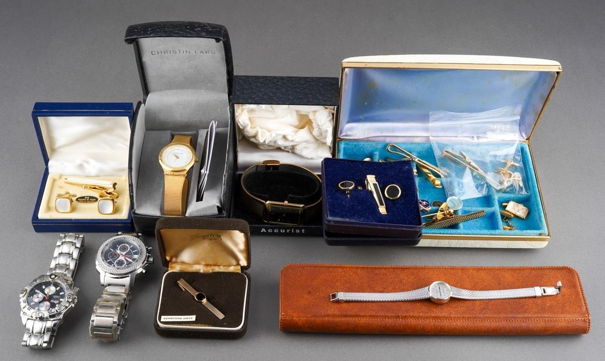 Collection of watches to include boxed Christin Lars with a certificate, boxed Accurist, Ultimate Chrono together with cufflinks, tie pins etc.