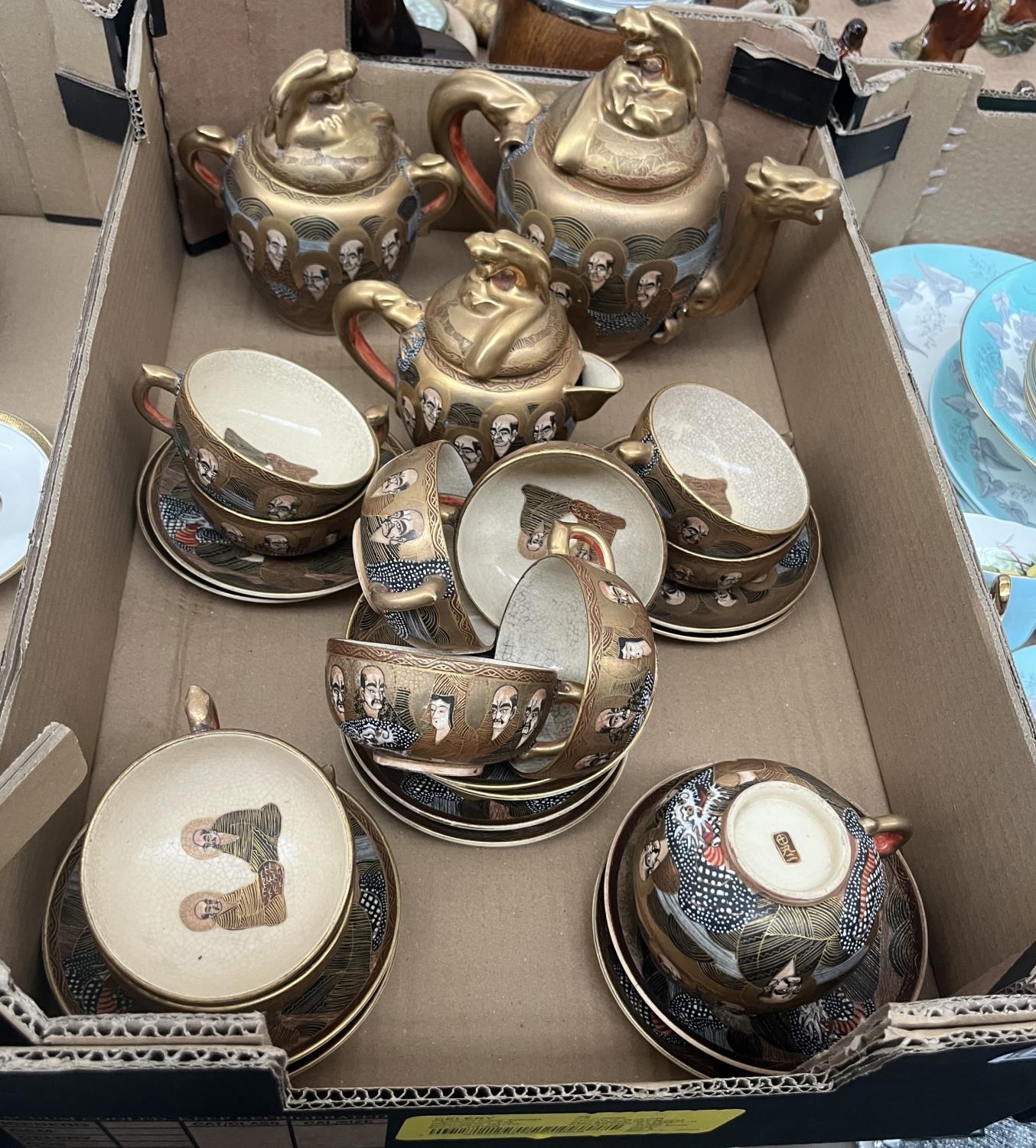 Box containing an antique Japanese Satsuma Dragon tea set signed Shimazu