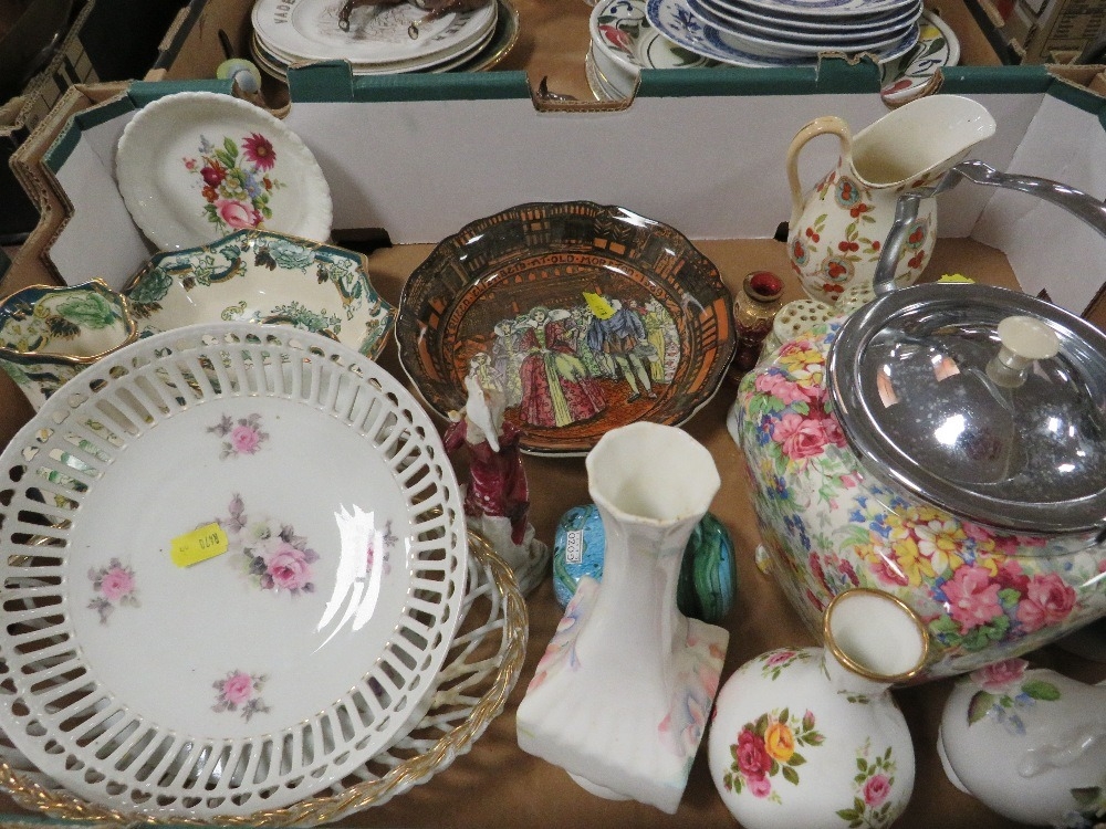Two trays of assorted ceramics etc to include Royal Doulton and Masons