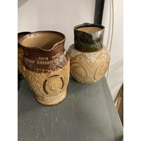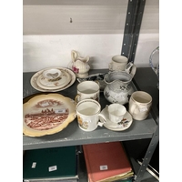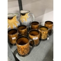 Ceramics: Poole pottery jugs decorated with sunflowers, a pair (½ins) and Arthur Wood mugs decorated in the Ye Olde Coaching and Hunting Days pattern.