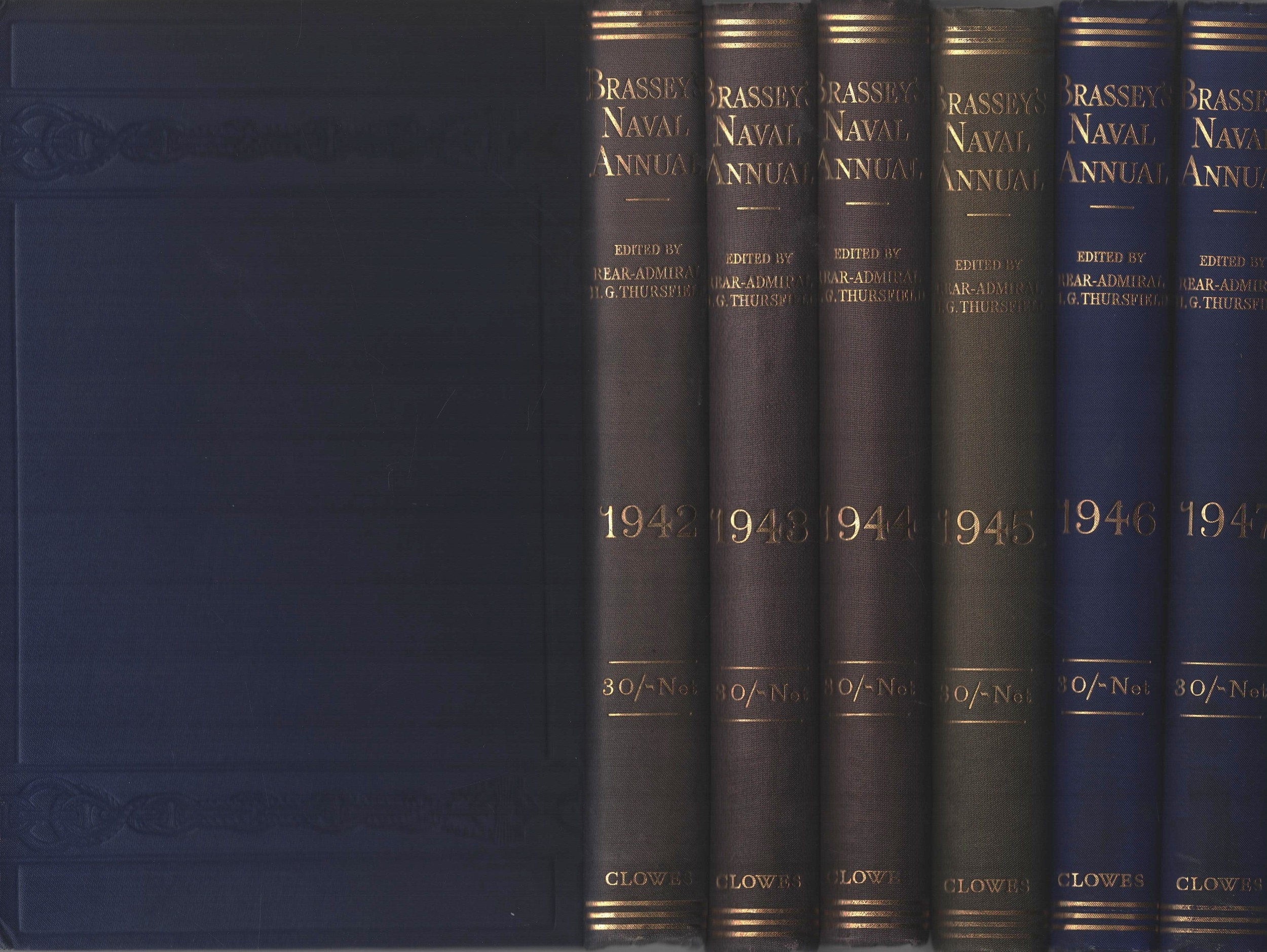 Brassey's Naval Annual Hardback Books Collection 6, 1942,1943,1944,1945,1946,1947. Edited by Rear-Admiral H.G. Thursfield. Publisher: Clowes.