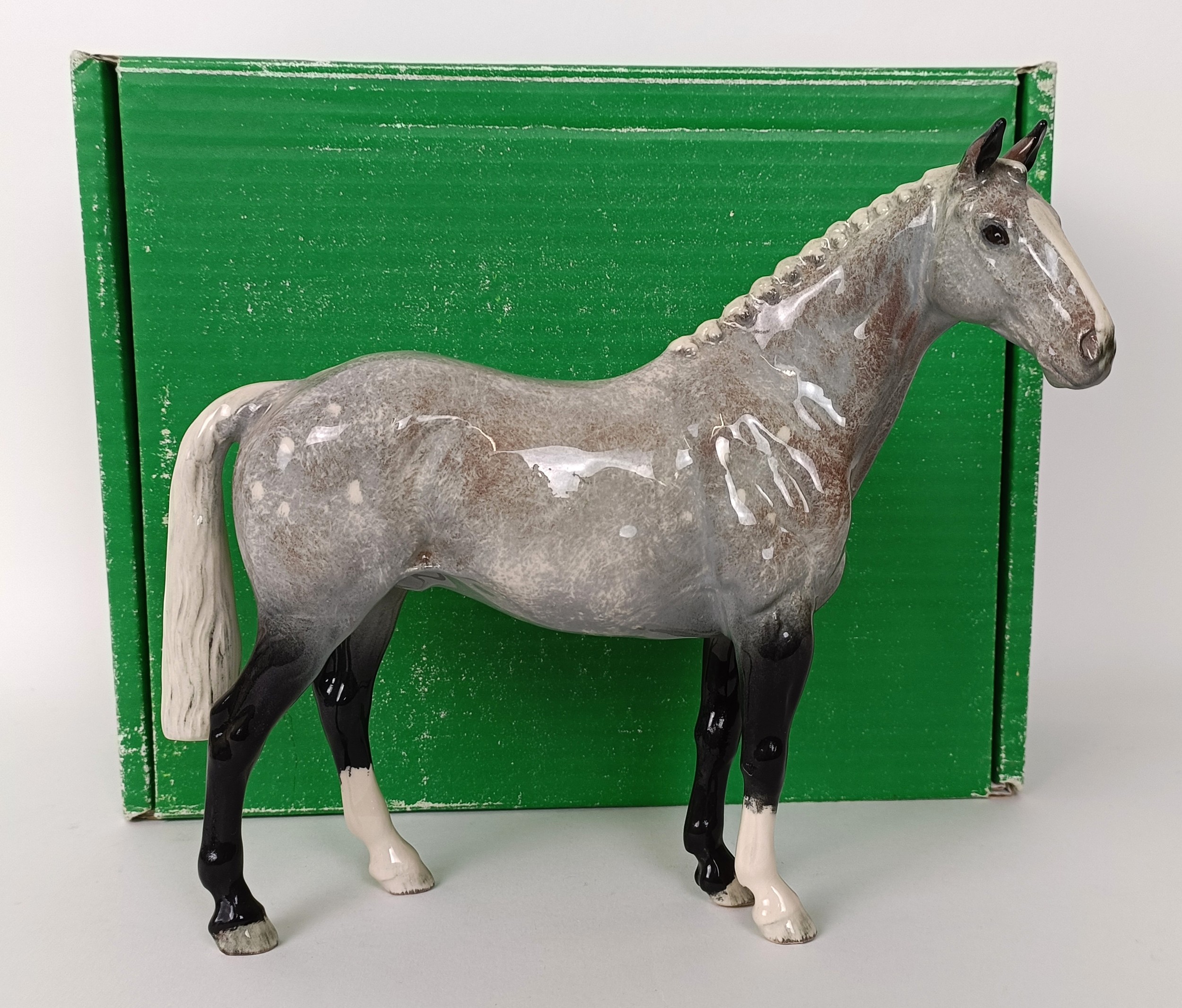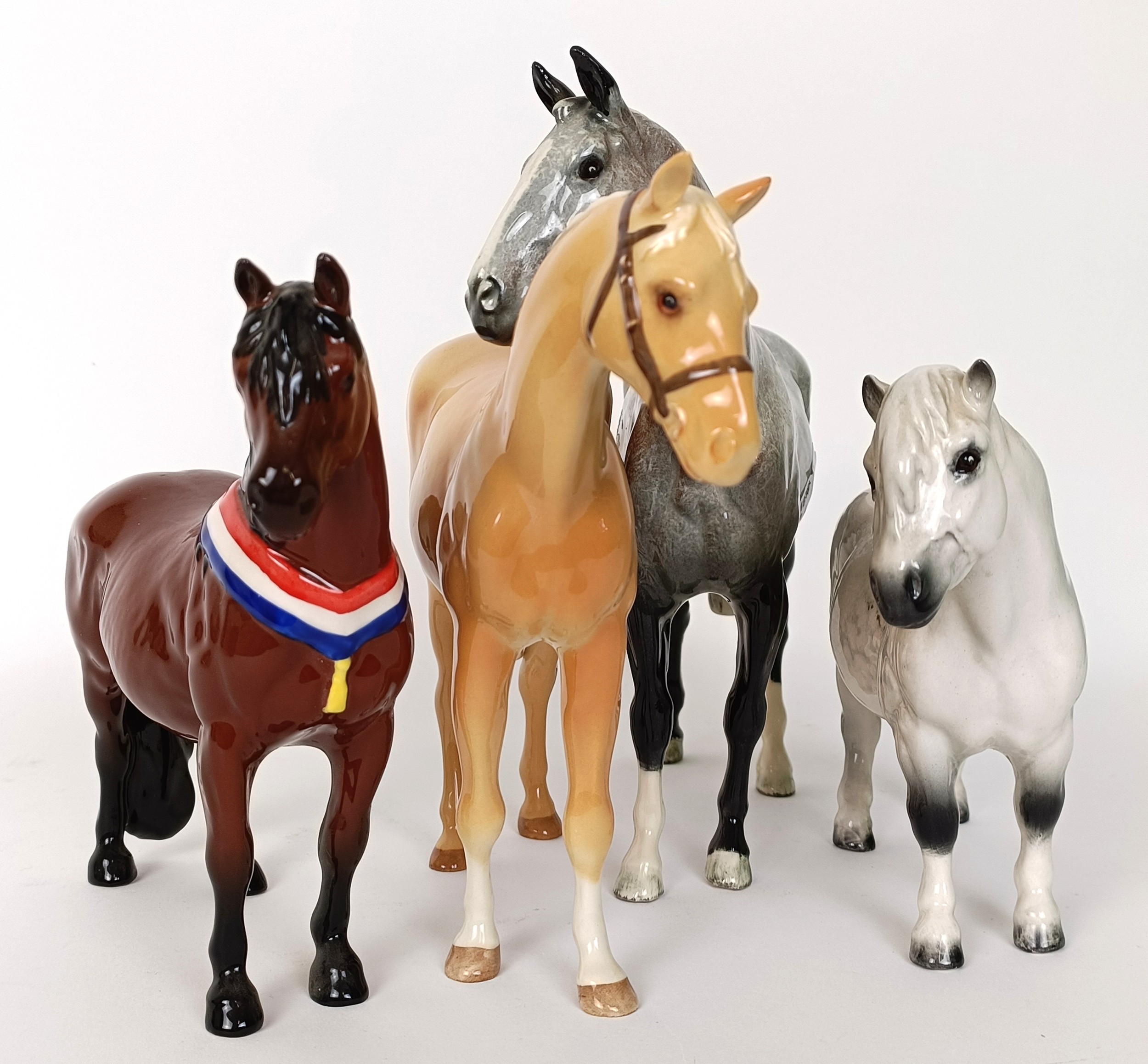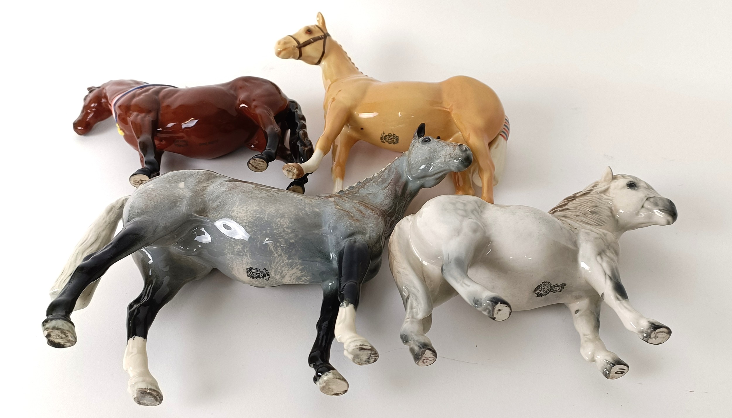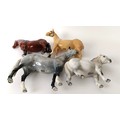 A Beswick Hunter, grey, H260, (boxed) a Palomino, H259, Another Bunch, (boxed) and a Royal Doulton Shetland Pony, DA185 (4)