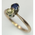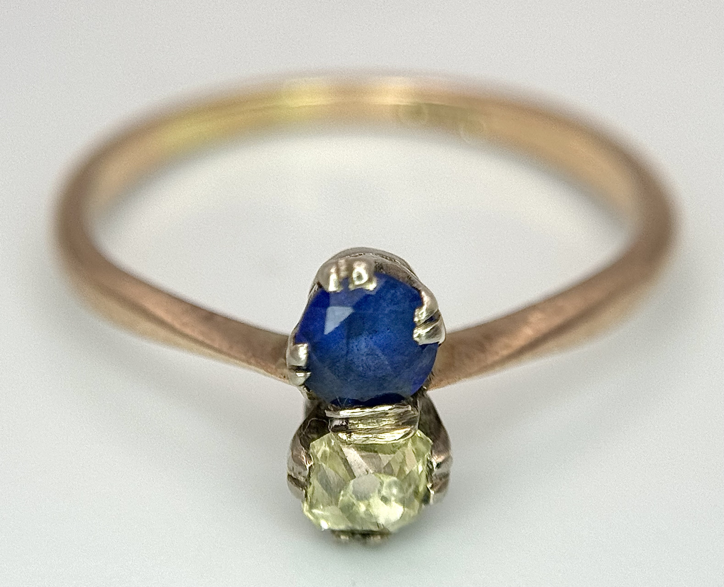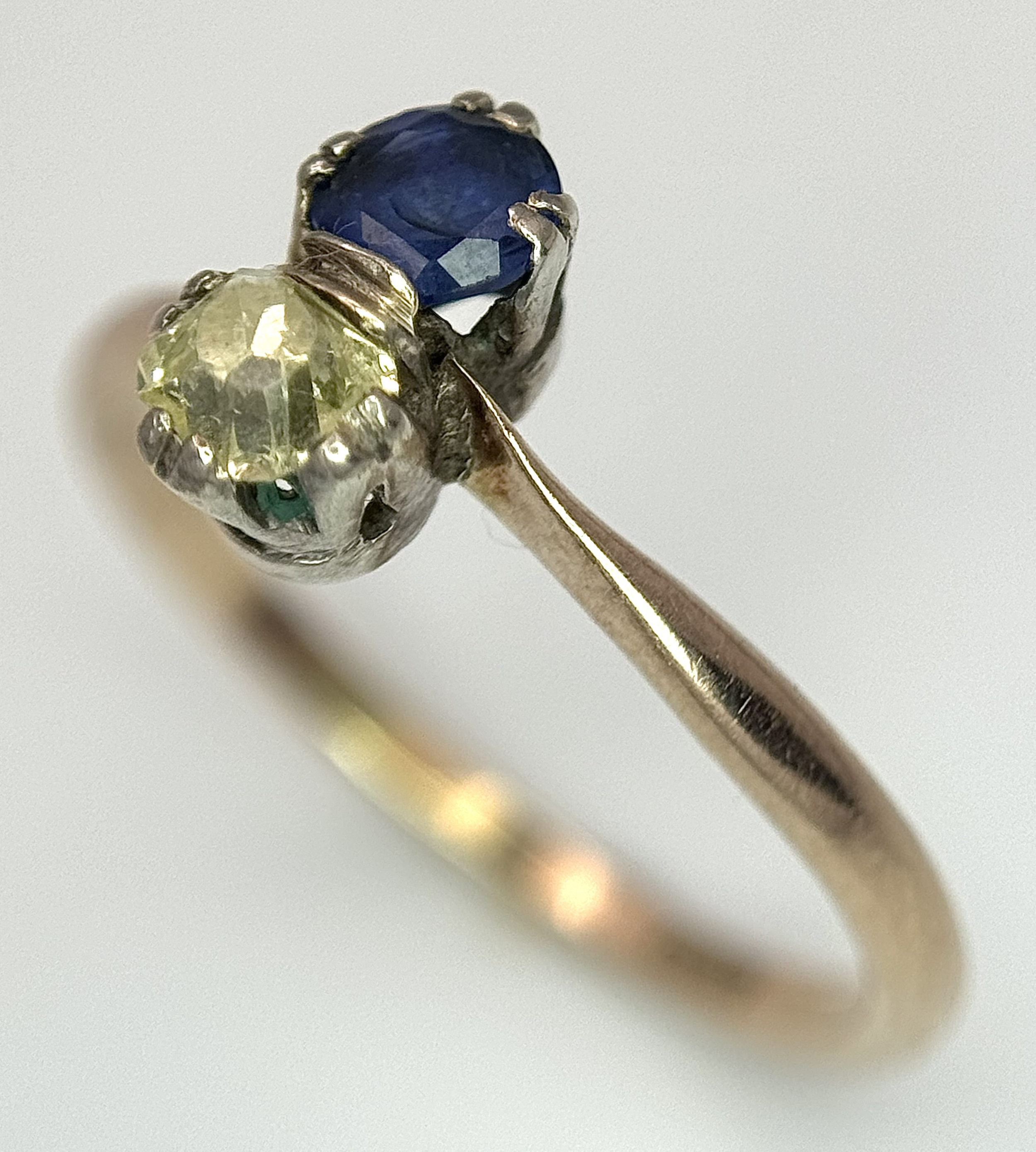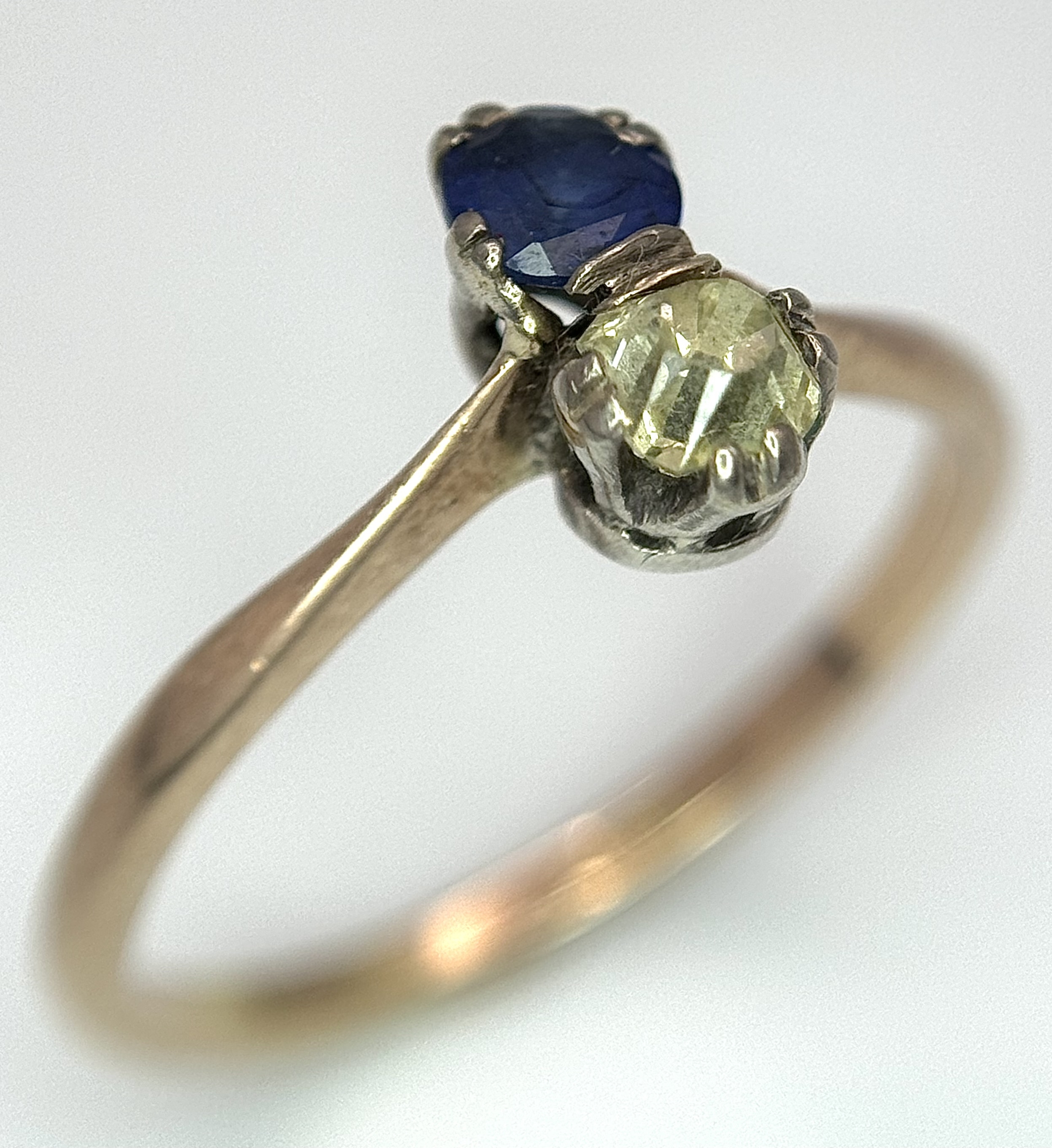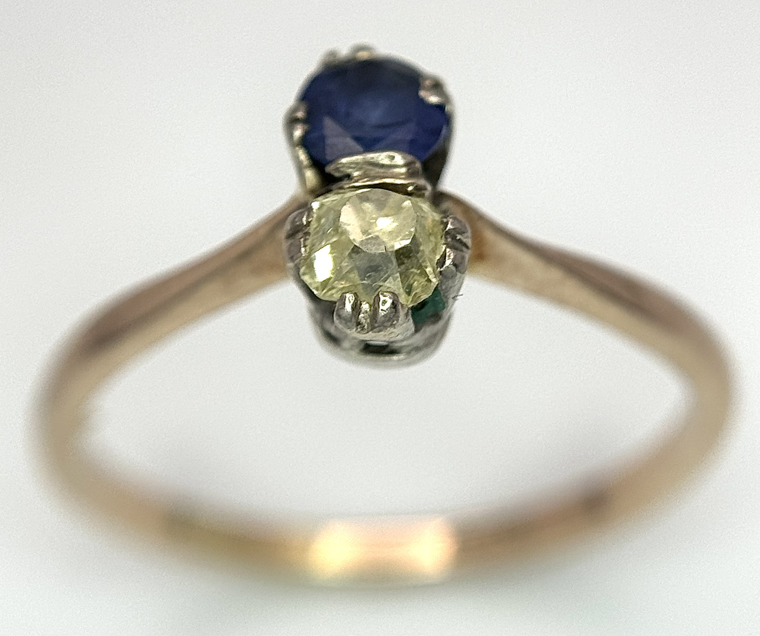 A 18K yellow gold diamond and sapphire ring, 0.25ct diamond weight, 0.24ct sapphire weight, 1.8g total weight, ring size O. Ref: 1896I